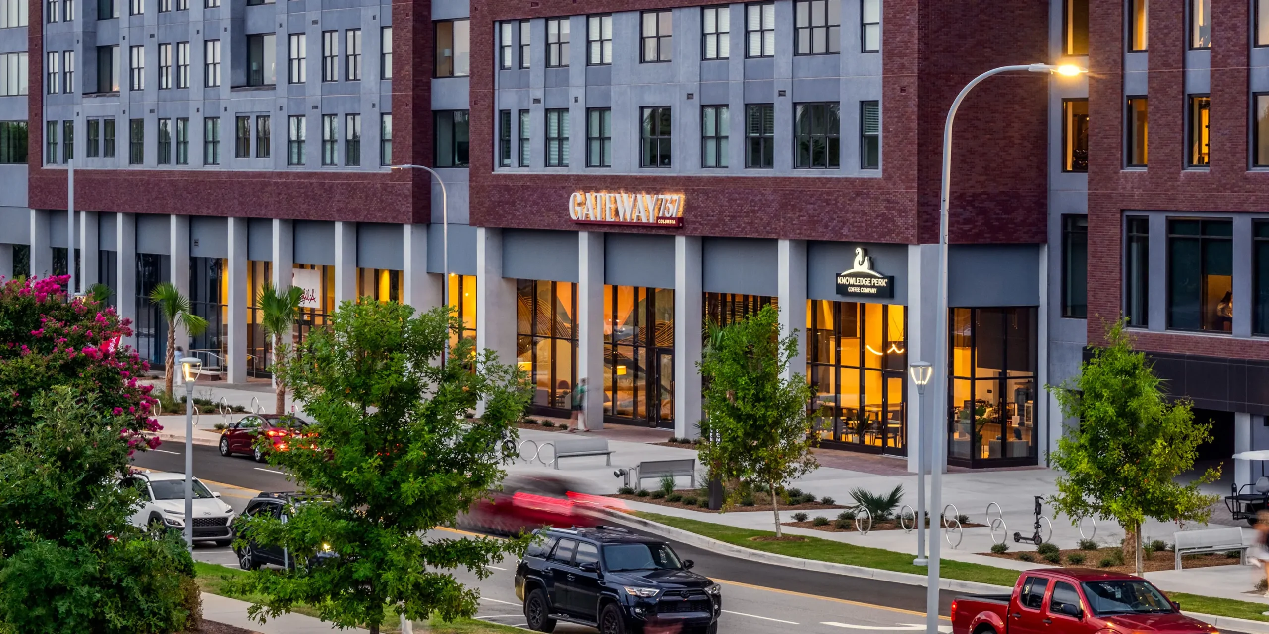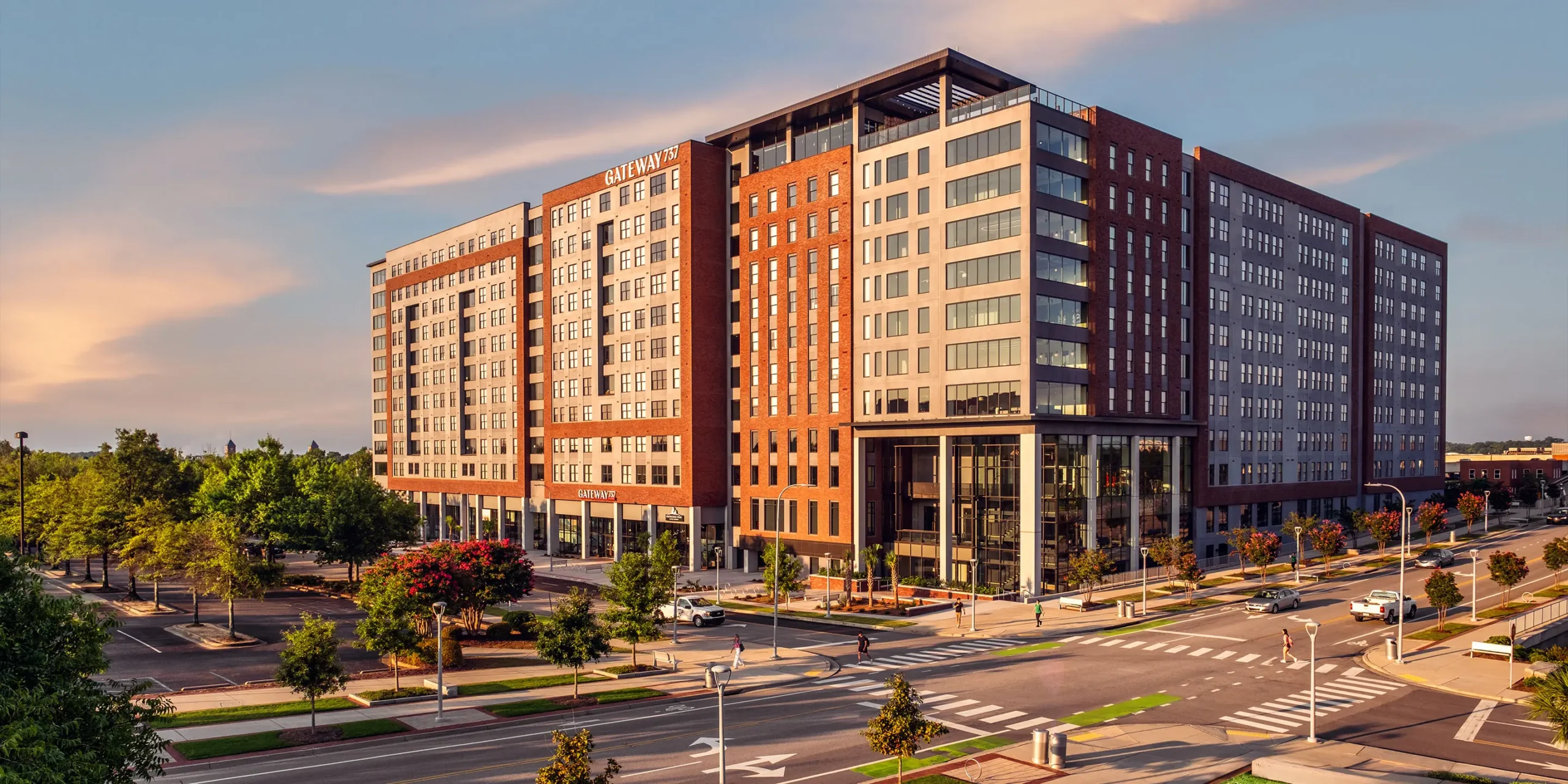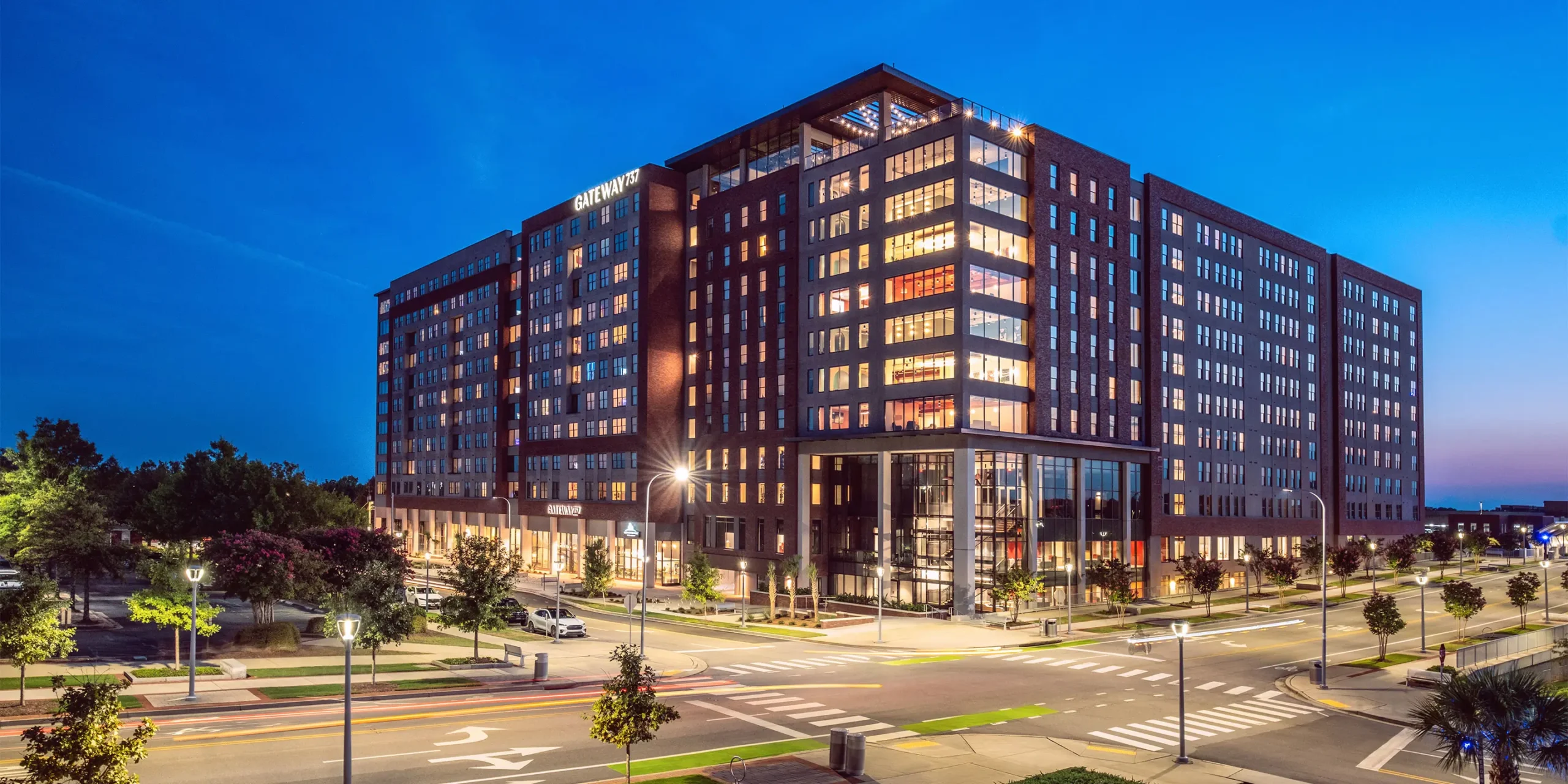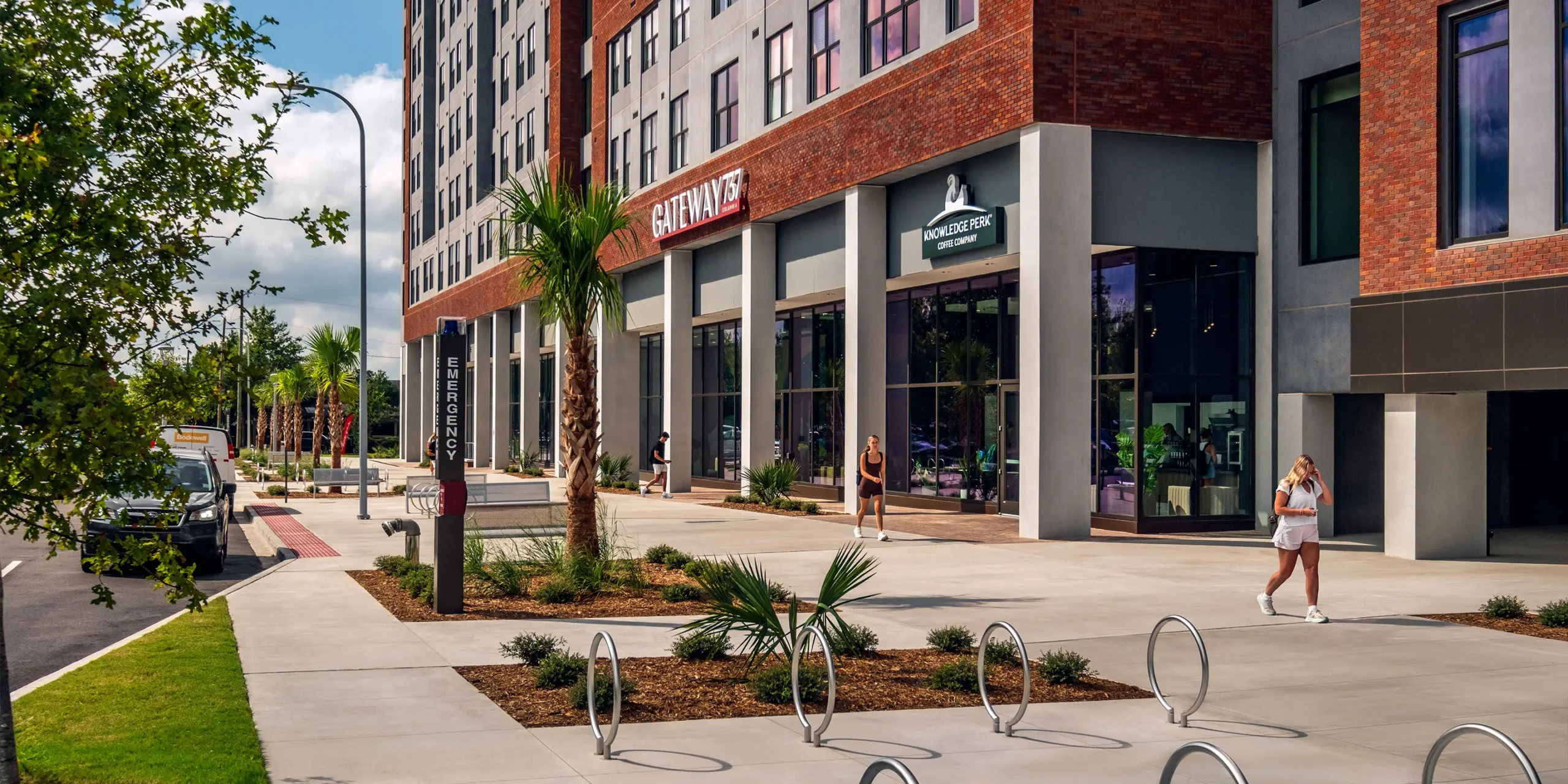Cooper Carry worked with Holder Properties and the University of South Carolina (USC) Development Foundation to deliver planning and design services for Gateway 737, a mixed-use, off-campus, private student housing project. Located at the edge of the University of South Carolina campus, next to the university's sports arena, the building provides much-needed housing for USC students while activating the street experience along a major thoroughfare.