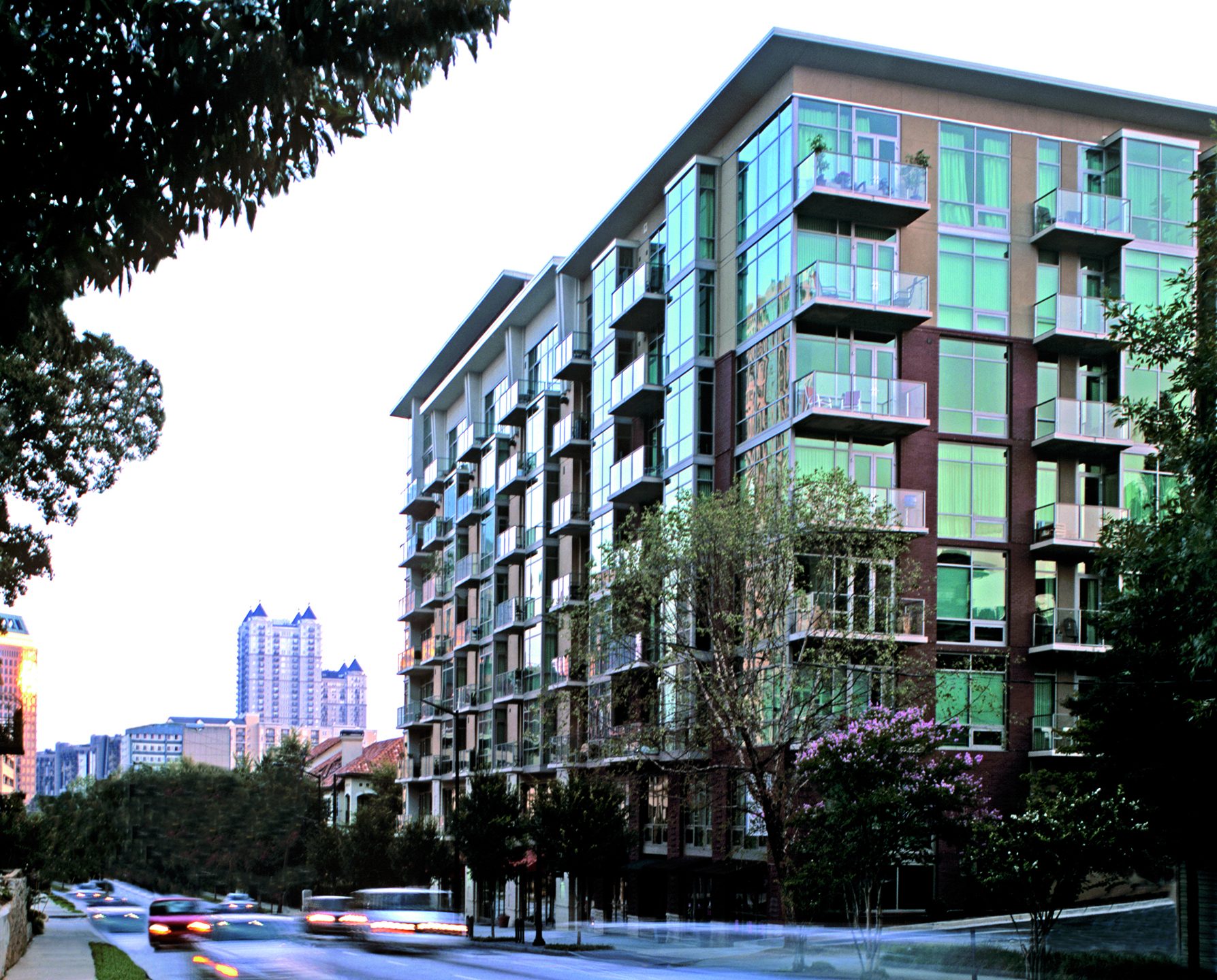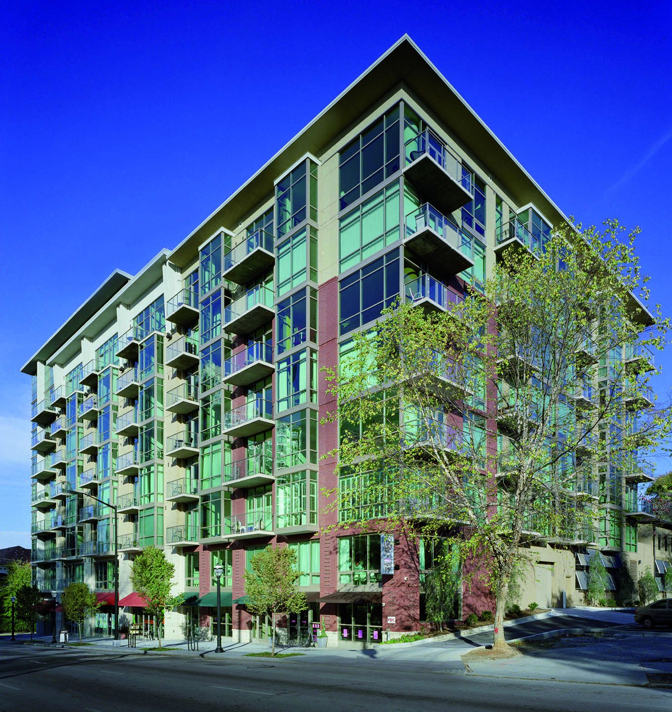 Located within cosmopolitan Midtown Atlanta, 905 Juniper is an eight-story, terraced mixed-use development that recognizes the burgeoning sophistication of the area. With great attention paid to the existing urban context, 905 Juniper sits within walking distance of many Midtown shops and restaurants. The very contemporary building contains 117 luxury condominium units, including two-level townhouse units and live/work spaces that offer street-level access adjacent to 2,200 square feet of prime corner retail space. Above the internal four-level parking deck lies a modern and highly-appointed outdoor plaza featuring a pool, hot tub, fountain and amenity building with kitchen, club room and exercise room.