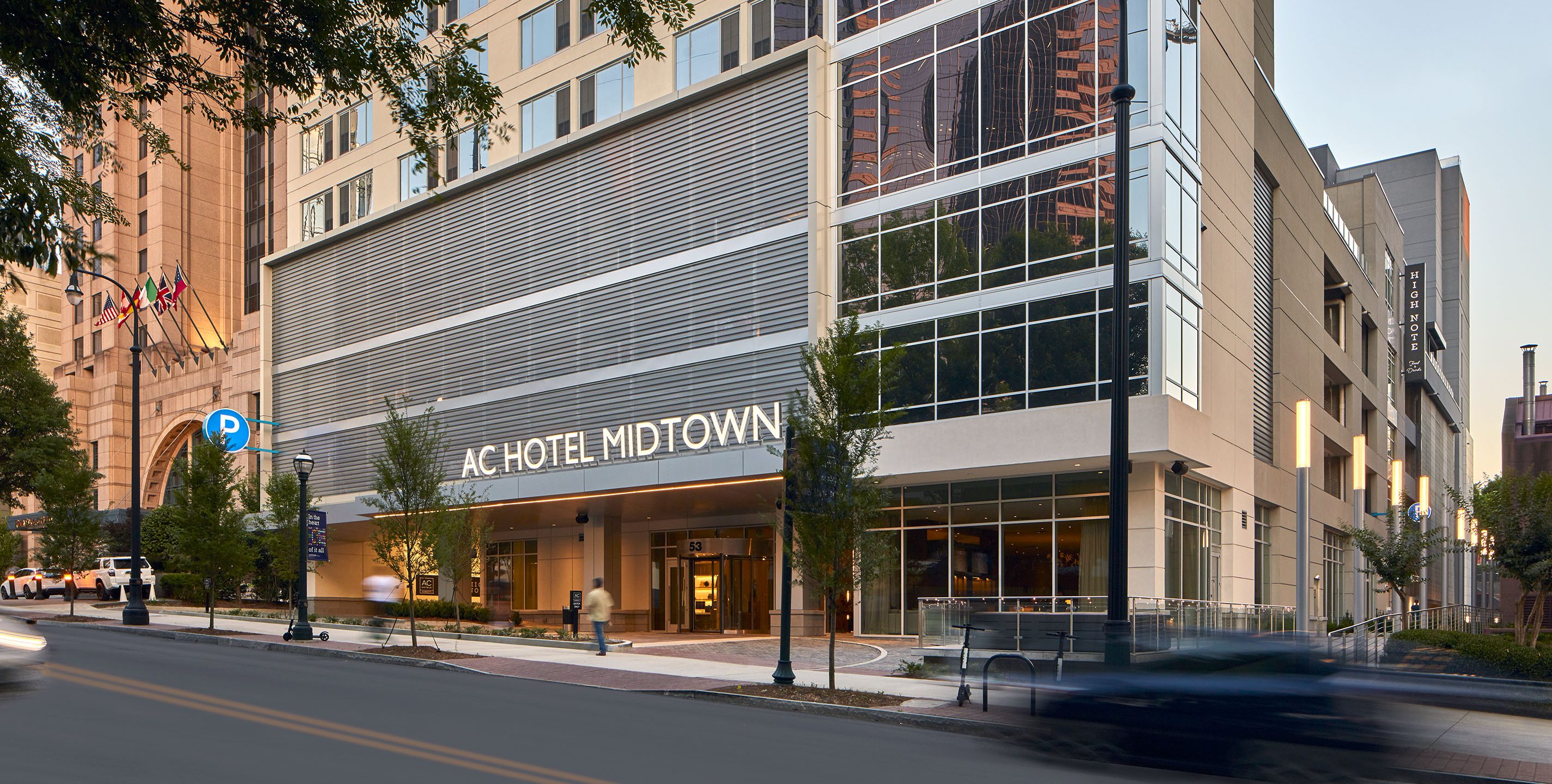 The 288-room hotel blends two Marriott products: the AC Hotel by Marriott, a contemporary European-inspired flag, and the Moxy Hotel, Marriott’s latest brand, tailored to millennial tastes. The AC Hotel rises 10 stories, while the five-story Moxy Hotel sits atop six floors of parking. Developed on an entire city block in Atlanta between 14th street and 13th street flanked by Peachtree Road and West Peachtree Road, the LEED-certified hotels are central to Midtown's business and commerce hub. Above both hotels is High Note, a vibrant rooftop bar featuring pool, cabanas and bar, meeting space, state-of-the-art health and fitness and an outdoor entertaining area with firepits.