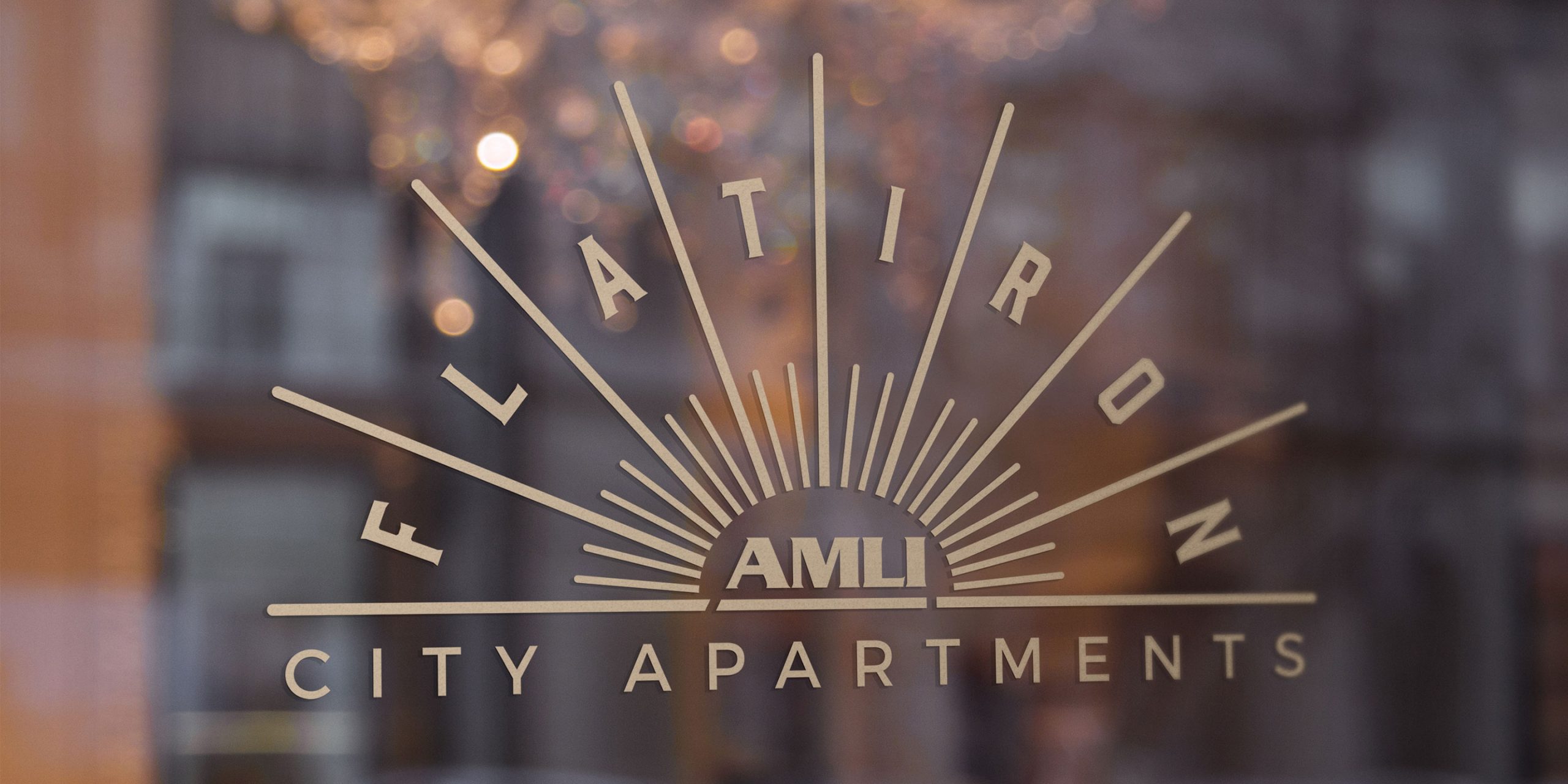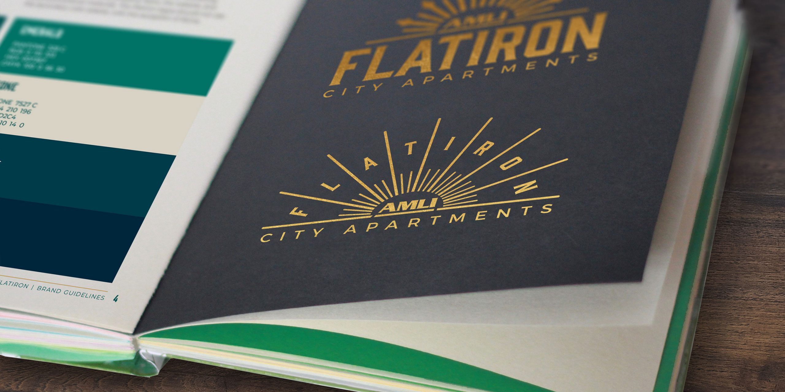 Working in collaboration with the architecture and interior design team, Cooper Carry’s Branding Services designed the AMLI Flatiron brand to blend the radiating, concentric lines of Art Deco style with a bold slab serif typeface that respects the industrial architectural design of the property. The package was built with a variety of logo lockups to maximize the equity of the brand. One of the most successful aspects of this design was the integration of AMLI Residential’s logo. The line weights have all been drawn to match that of the AMLI underline so that it blends perfectly as it sits in the center of the sun motif. The incorporation of the radiating lines celebrates the AMLI identity positioned at the center of the logo.