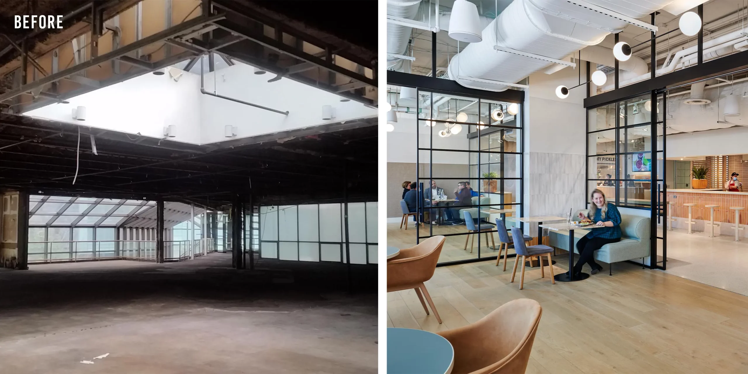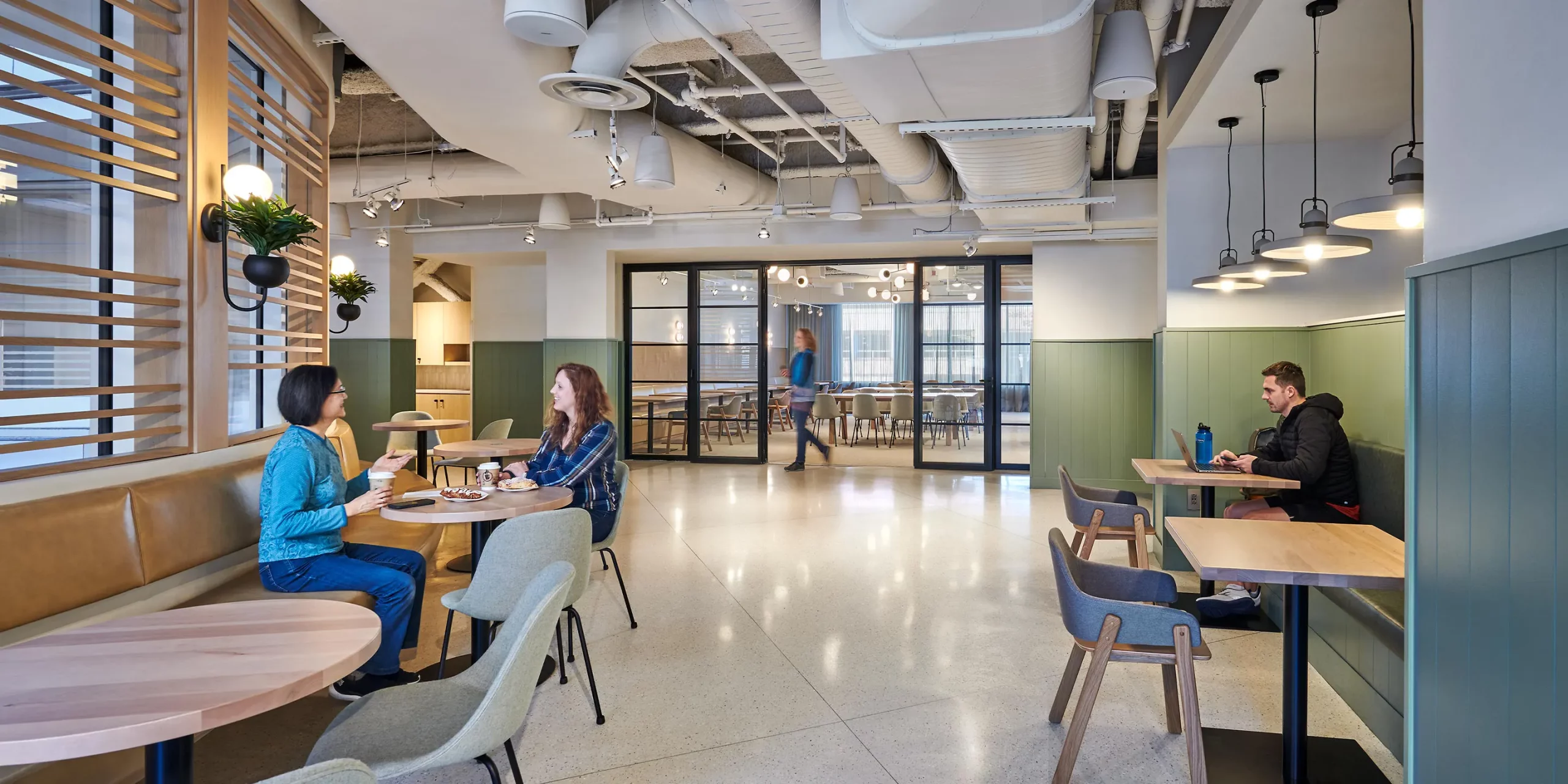 We collaborated with interior designer Studio K and James Beard-nominated Executive Chef Brian Huston, who designed the diverse all-day dining and specialty food options, including an oyster bar. The Cooper Carry team created a cohesive style with nuanced touches to the independent stalls, like in the structure of the menu boards. Flexible seating options, murals tucked away in surprise areas, and a connection to the outdoors give guests reasons to return throughout the day to enjoy the facility.
