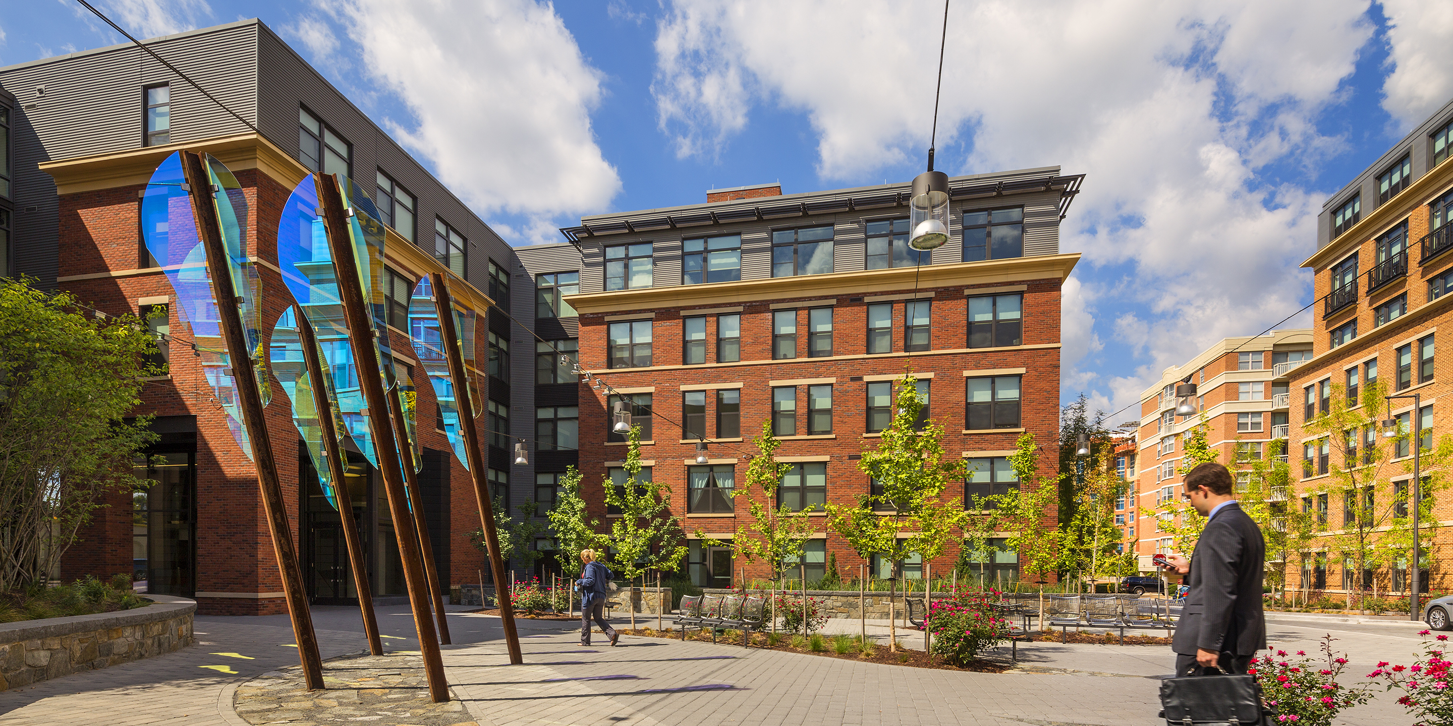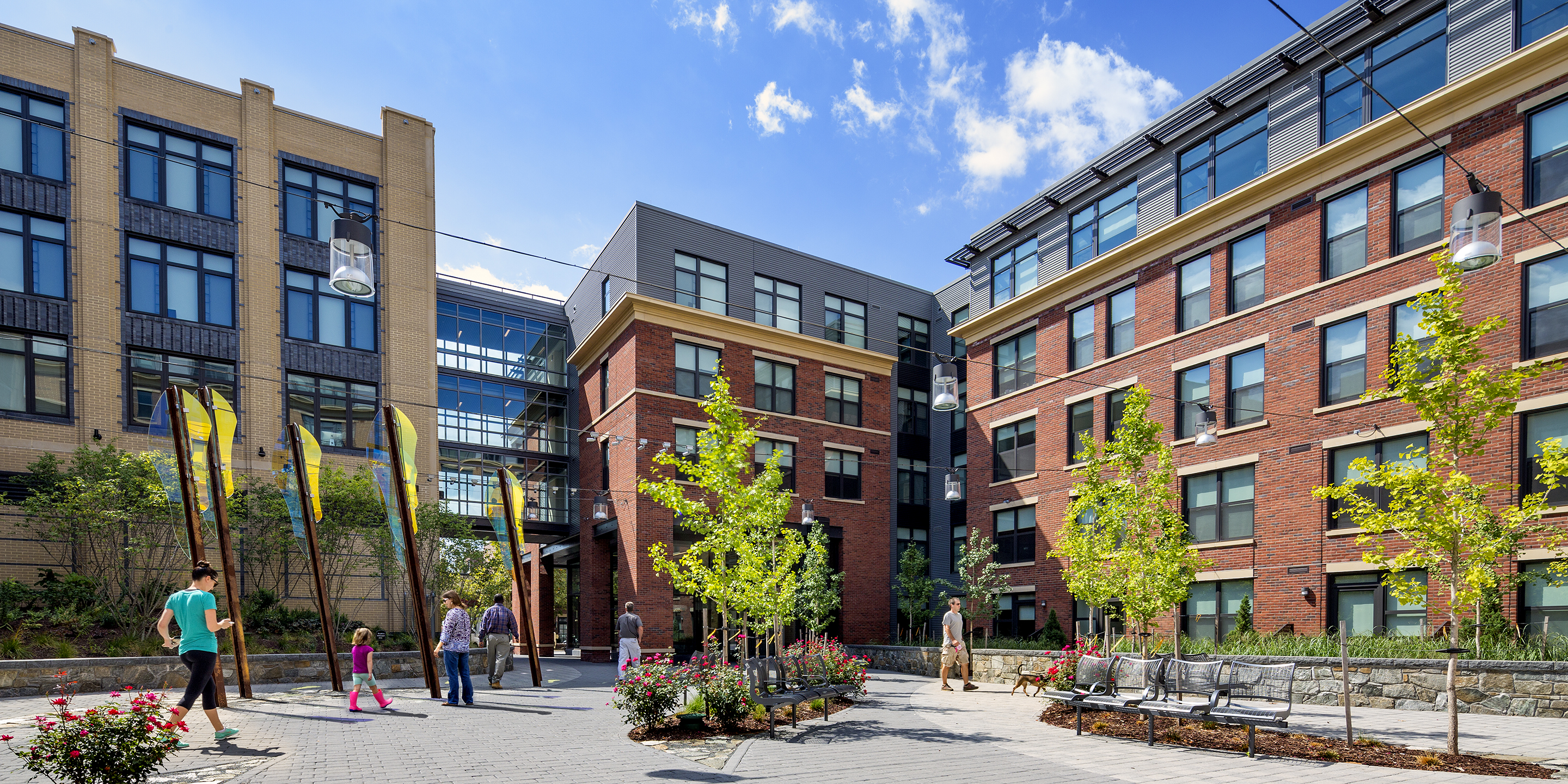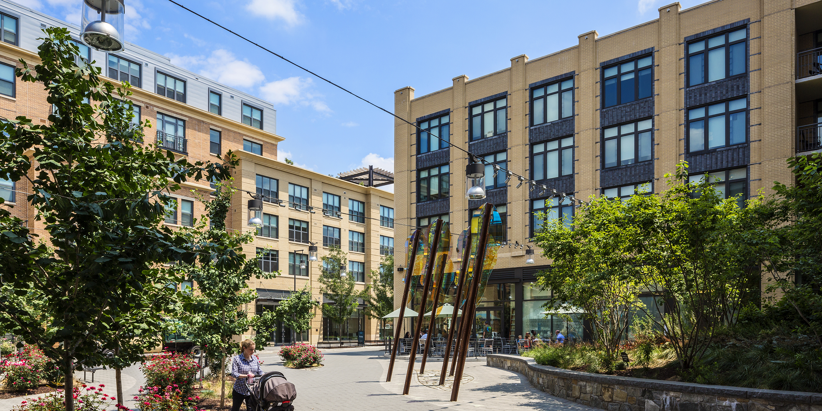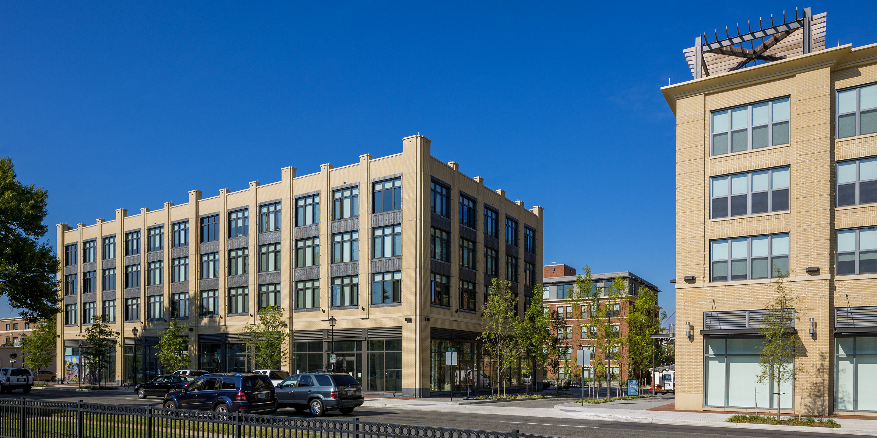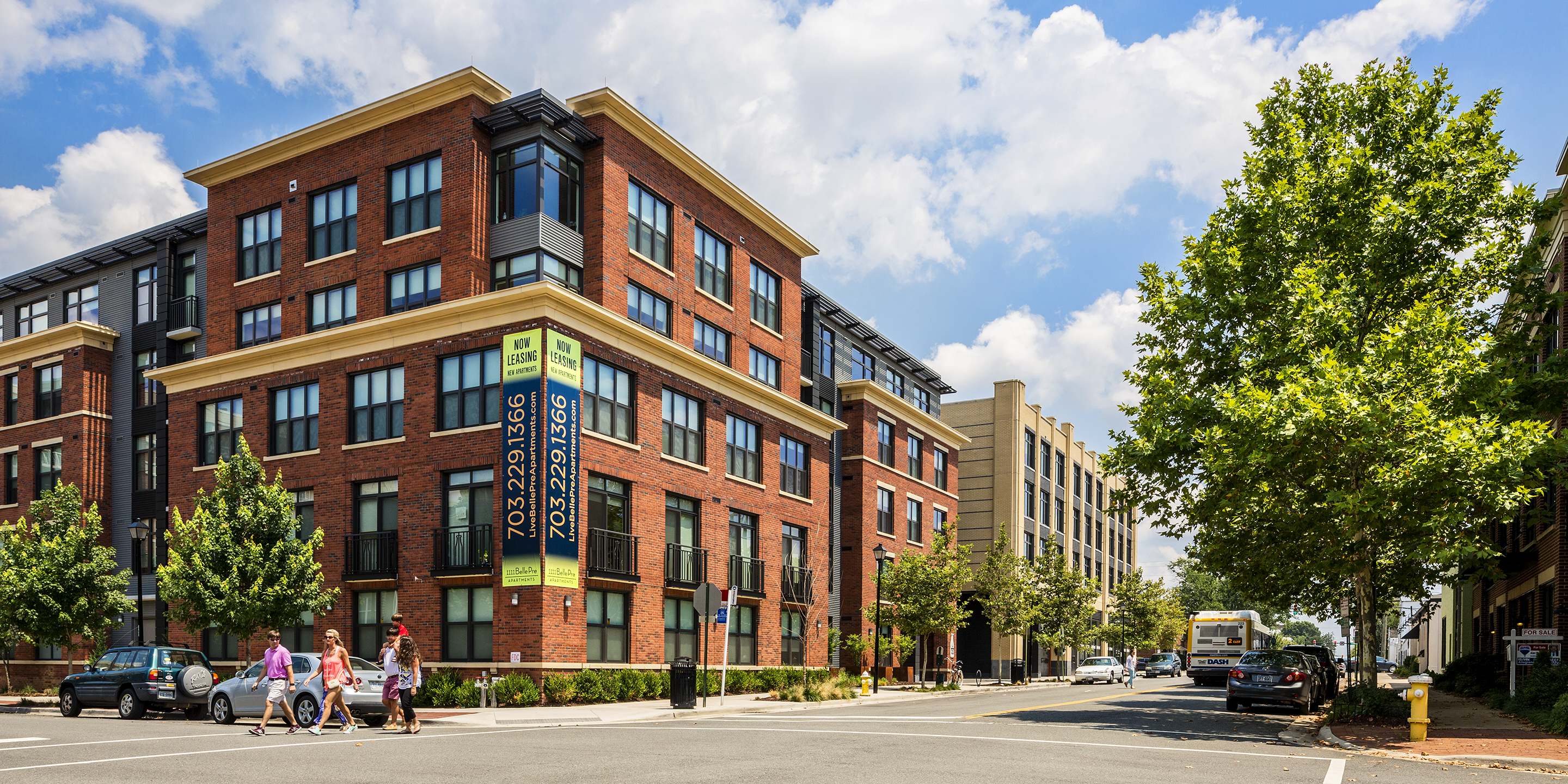Located just two blocks from the Braddock Road Metrorail Station, Belle Pre Plaza (formerly known as The Madison) combines 340 residential units with 25,000 square feet of local and national retail over two levels of underground parking. The residences offer one and two bedrooms, complemented by a roof deck, water feature, and private courtyard fire pit. Belle Pre Plaza comprises two buildings. The building to the north rises to seven stories, enclosing a private courtyard. The U-shaped south building, of five stories, defines a public courtyard. The façade will evoke a collection of buildings designed “over time” meant to capture the charm and history of Old Town Alexandria, while respecting the history of the warehouse district where the project is located. The development creates two new streets, a service alley and a vehicular one-way street that leads to an 8,000-square-foot public courtyard. This courtyard is also connected to Madison Street through a pedestrian-only breezeway. During community charrettes, neighbors wanted the courtyard to be an interactive public space and extend a warm welcome to city residents. The courtyard contains public seating areas adjacent to the retail. Cooper Carry was the design architect for this project.