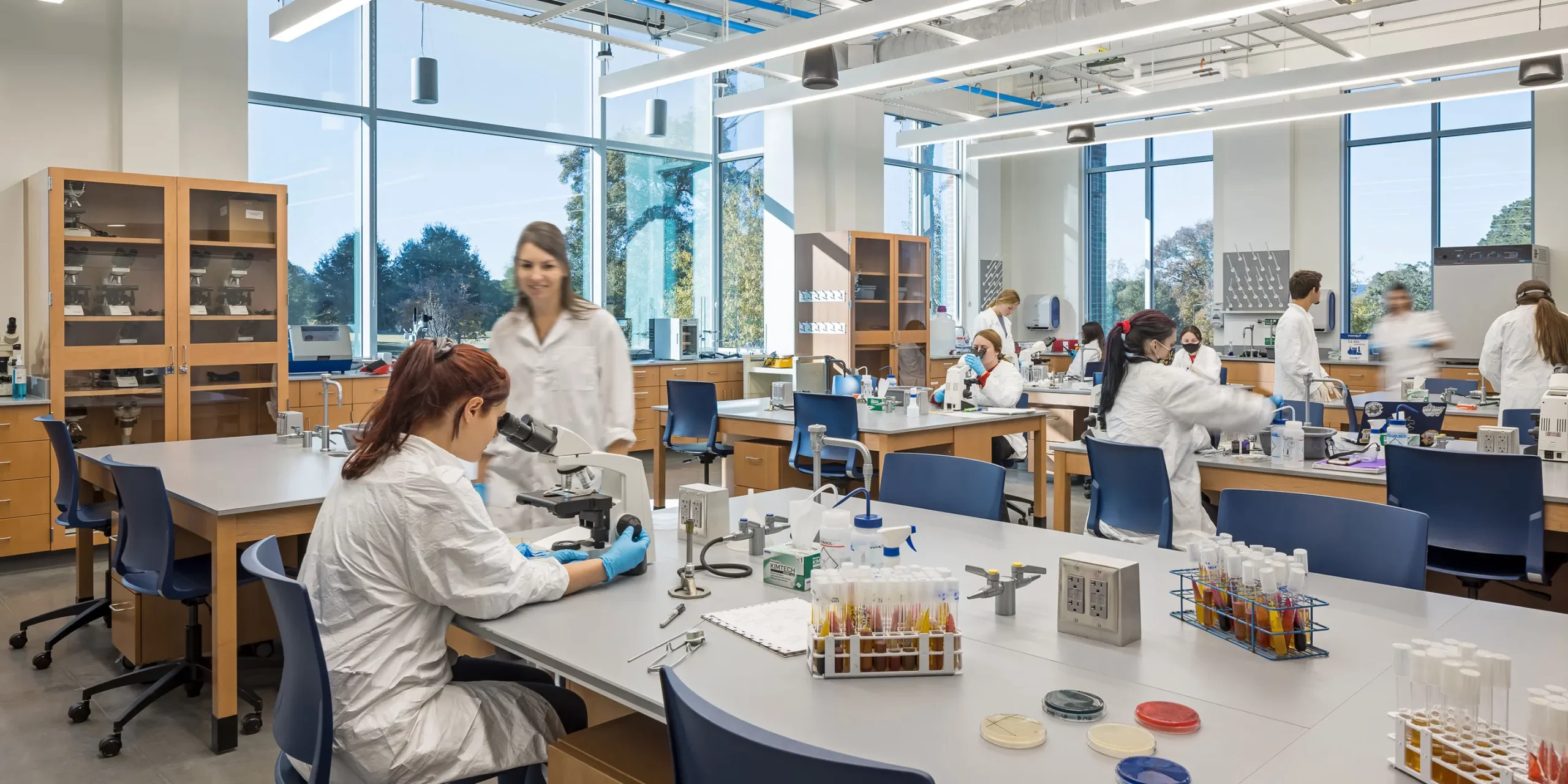 The McAllister Hall addition creates a modern Animal Science building at Berry College, one that promotes student/faculty research interactions and stimulates cross-disciplinary collaboration. With animal science being the largest major at Berry, the 26,500-square-foot addition enhances teaching and research in animal health and production, including genetics, microbiology, and physiology.