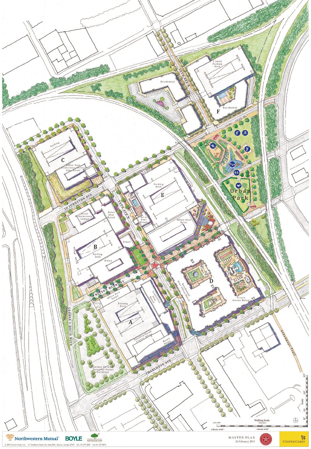 32-Acre Master Plan, 1,100,000 SF of Office, 130,000 SF of Retail and Restaurants, 27,500 SF Grocery Store, 378 Residential Units, 2.5-Acre Urban Park