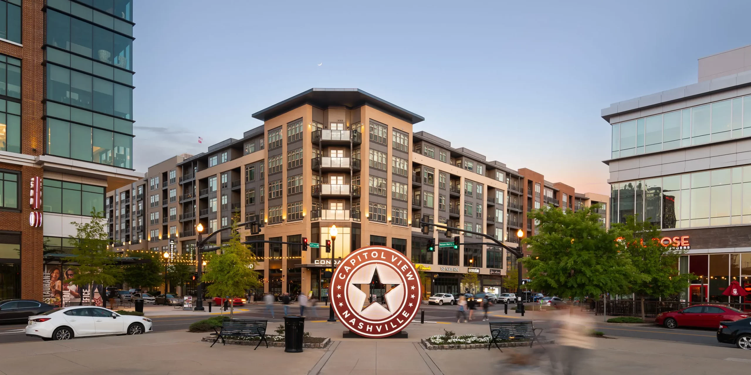 Capitol View is a large mixed-use development that creates a place authentic to Nashville, encouraging people to live, work, and play all within walking distance. Cooper Carry developed a 32-acre master plan aimed at creating active, lively public spaces that foster a walkable, engaging pedestrian experience. The right balance of office, retail, residential, hotel, entertainment, open space, and parking achieves a 24/7 environment. The master plan also incorporates Nashville’s greenways and bicycle trails, promoting a diverse range of transit options.
