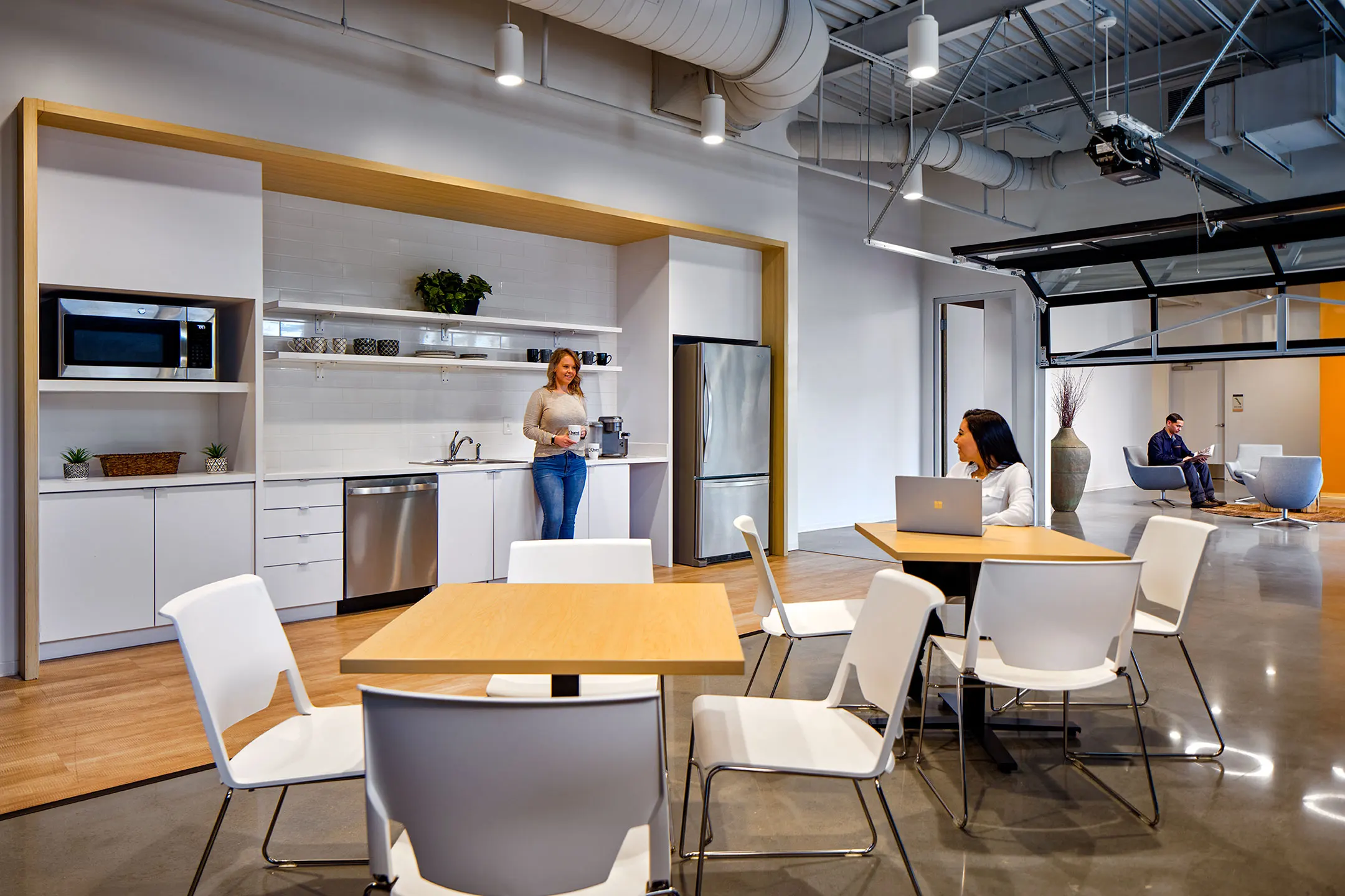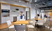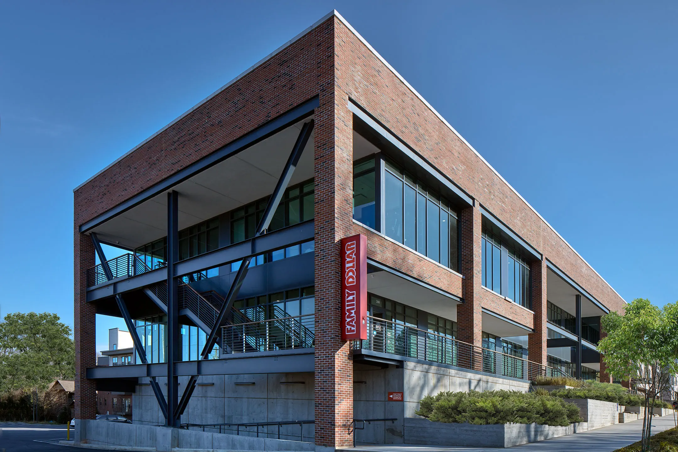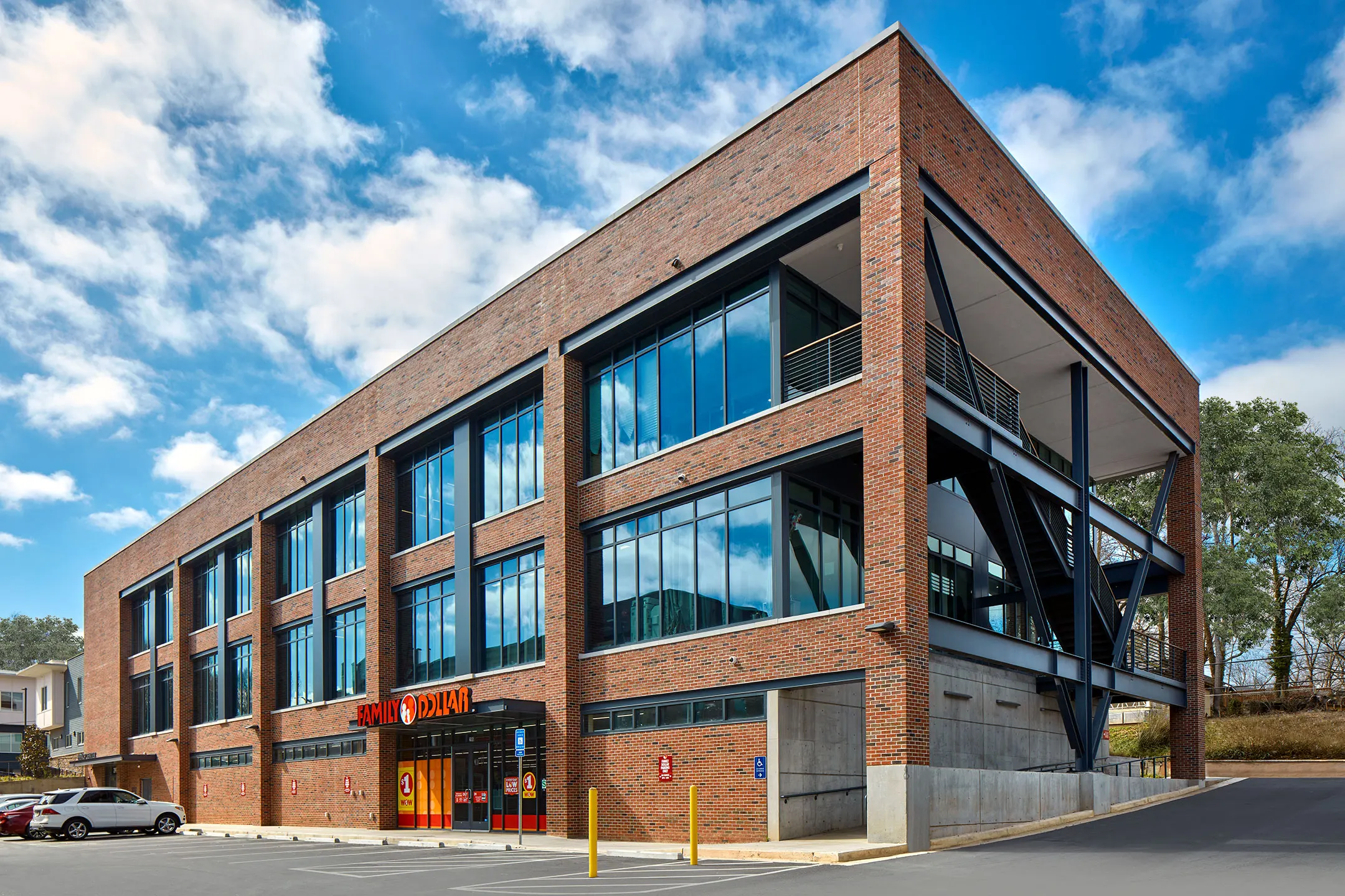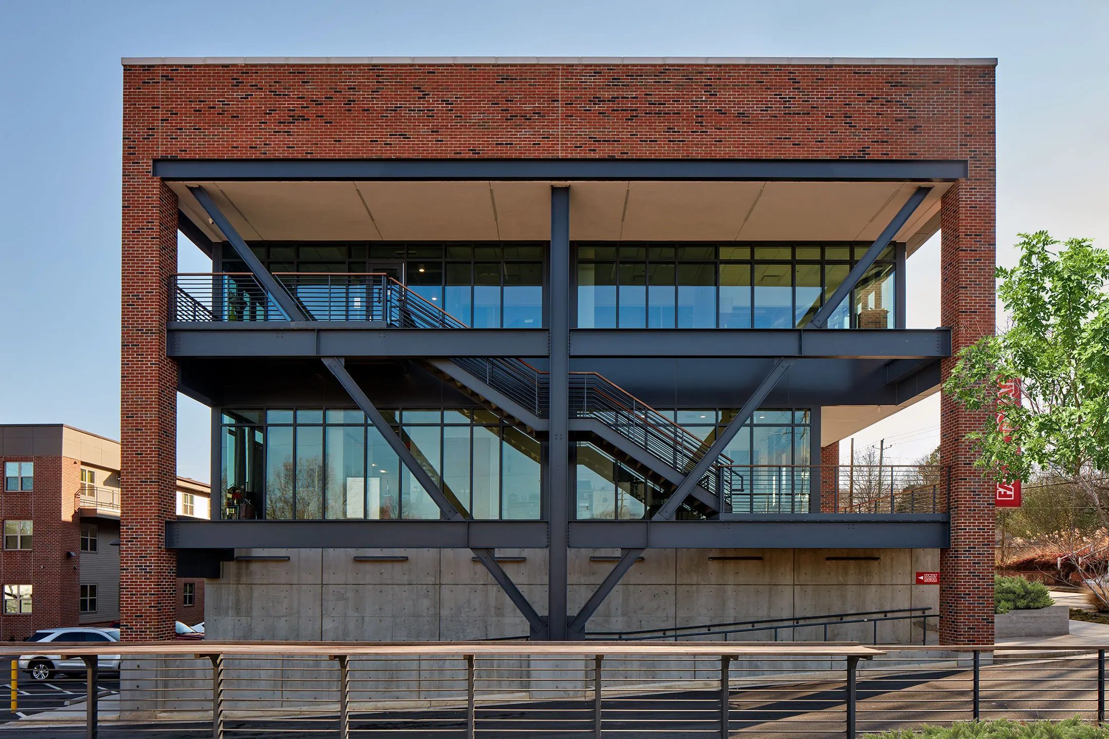 Cooper Carry turned a dilapidated building into a multi-functional space to fit all of QWIC’s programs, which included offices, a community center, educational services, and local retail. To keep the building’s pedestrian-friendly size in the mixed-use space, retail was moved to the back of the building for easier in-and-out access. An outdoor balcony space was created just for employees, and the steel bracing frames required for structural support were embraced as framing elements to enhance the style of the space. The stairs at the front of the building do double duty as stoops where individuals meet, relax, and spend time together, further enhancing the community feel.