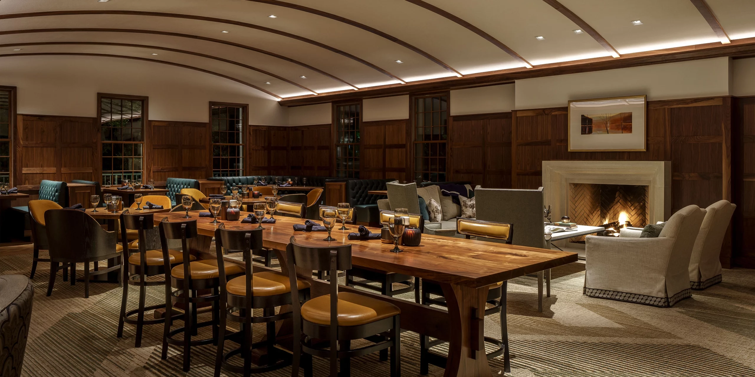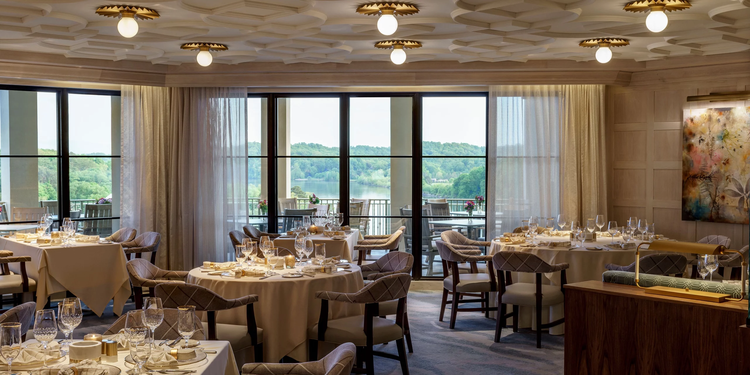 Located in Knoxville, TN, Cherokee Country Club draws inspiration from the soft green and blue hues of the Smokey Mountains and the adjacent Tennessee River that passes along the property. The Johnson Studio at Cooper Carry incorporated the colors of nature, while also drawing inspiration from the rich history of the club and its French Country architecture. We wanted a timeless design story that seamlessly wove through the three food and beverage spaces, each with its own unique feel.