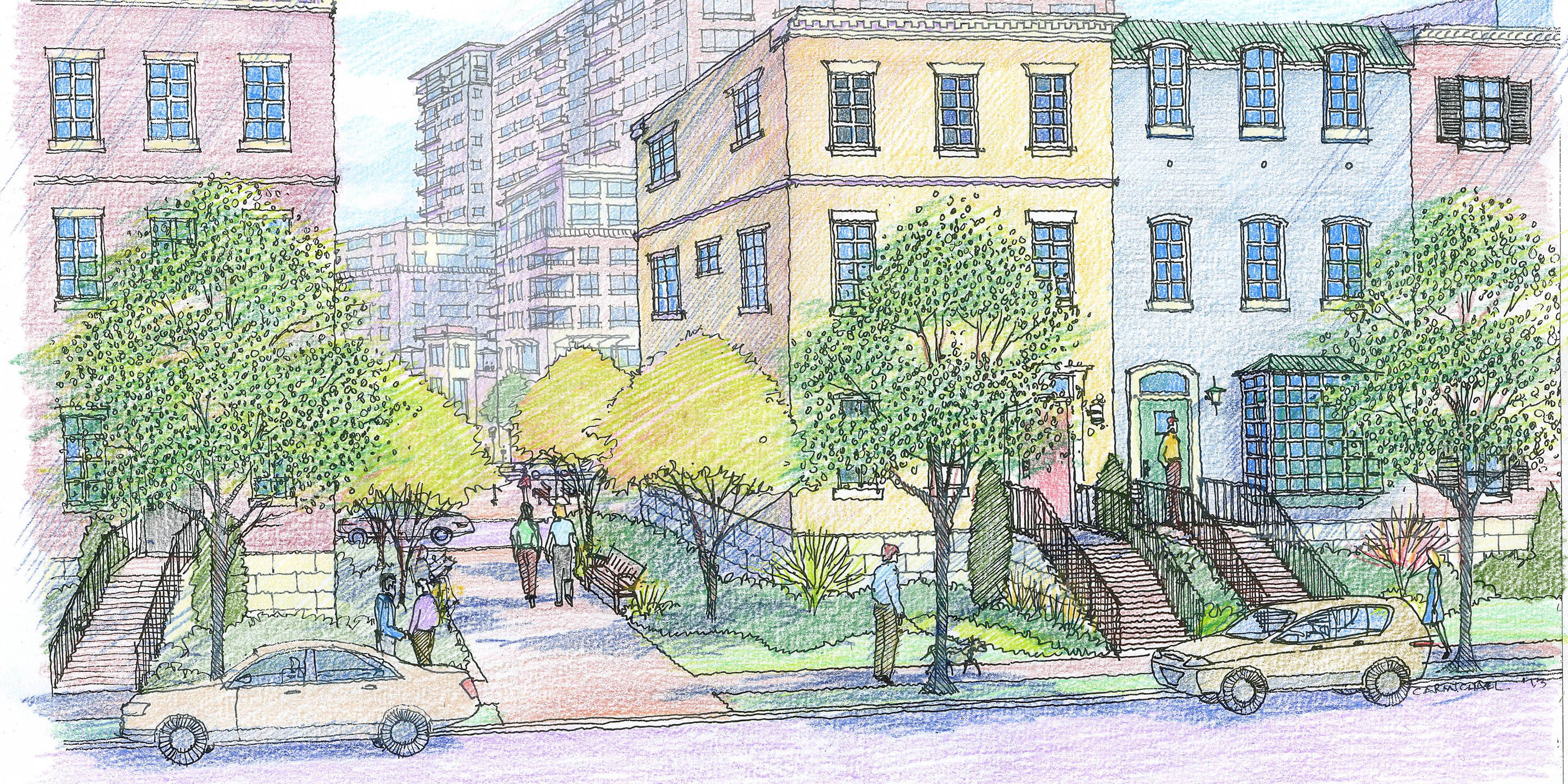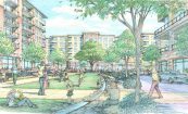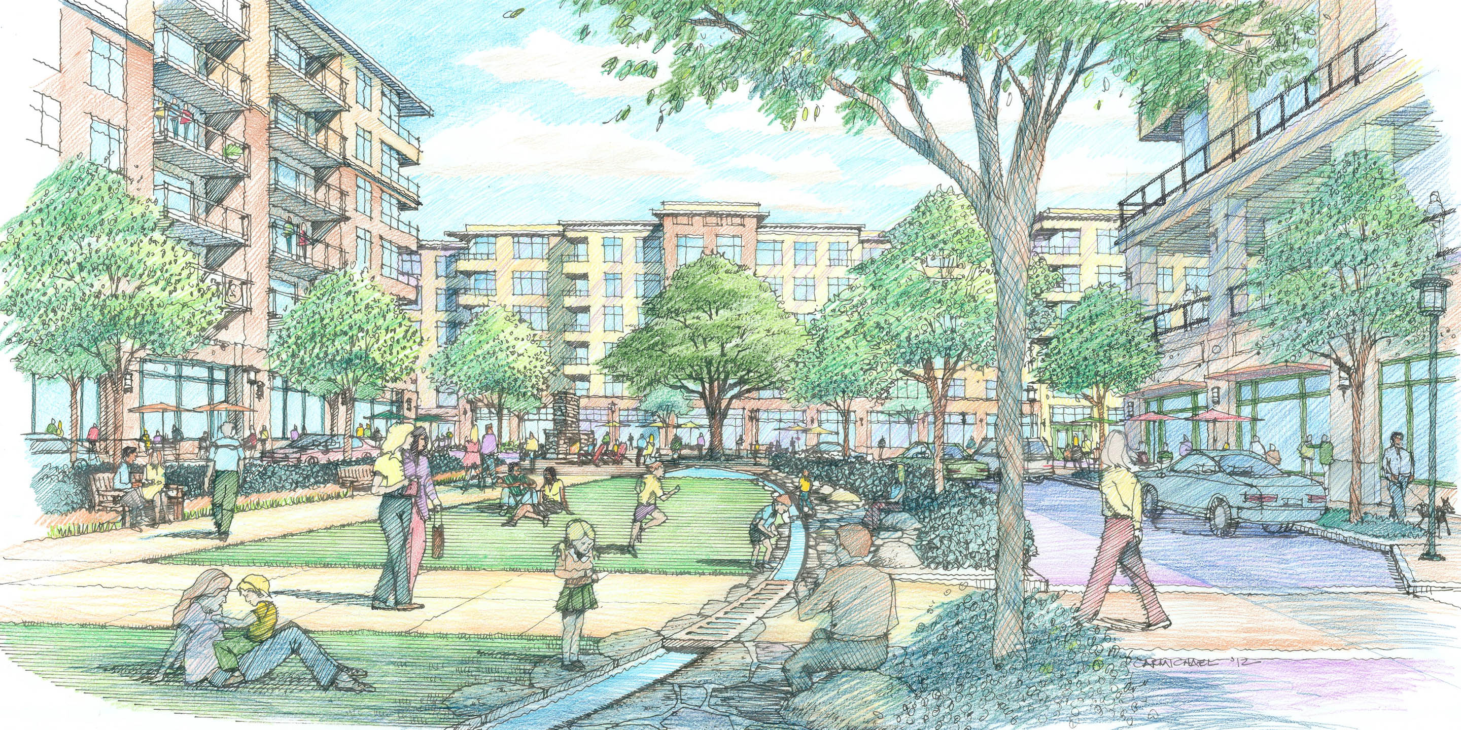 The Chevy Chase Land Company engaged Cooper Carry to help transform their suburban development that includes a grocery store, office, residential and retail into a transit-oriented development closely knit into a new, elevated light rail station along the planned purple line in the northern Washington suburbs. First, Cooper Carry created connections through the site with a street grid that previously did not exist. This street grid is envisioned to not only provide a pedestrian network for the site, but also help circulation to and from the transit station with a lower impact on already congested Connecticut Avenue. The street grid created developable blocks and created a framework for a neighborhood mix-use development at the Chevy Chase Lake Purple line stop. Critical to the planning process was the analysis of the appropriate mix of density for the surrounding community that is in transition from an auto-dominant environment into a transit oriented community. Given the location between Bethesda and Silver Spring, Cooper Carry saw the need for this station to serve as a largely residential TOC, with some office and retail to support a vibrant neighborhood node for Chevy Chase, continuing a pattern of development along Connecticut Avenue that begins in Dupont Circle to Chevy Chase. Cooper Carry worked carefully with Maryland Transportation Authority to seamlessly stitch the mixed-use blocks into an elevated rail station and bike trail.