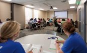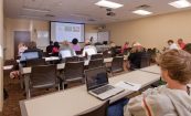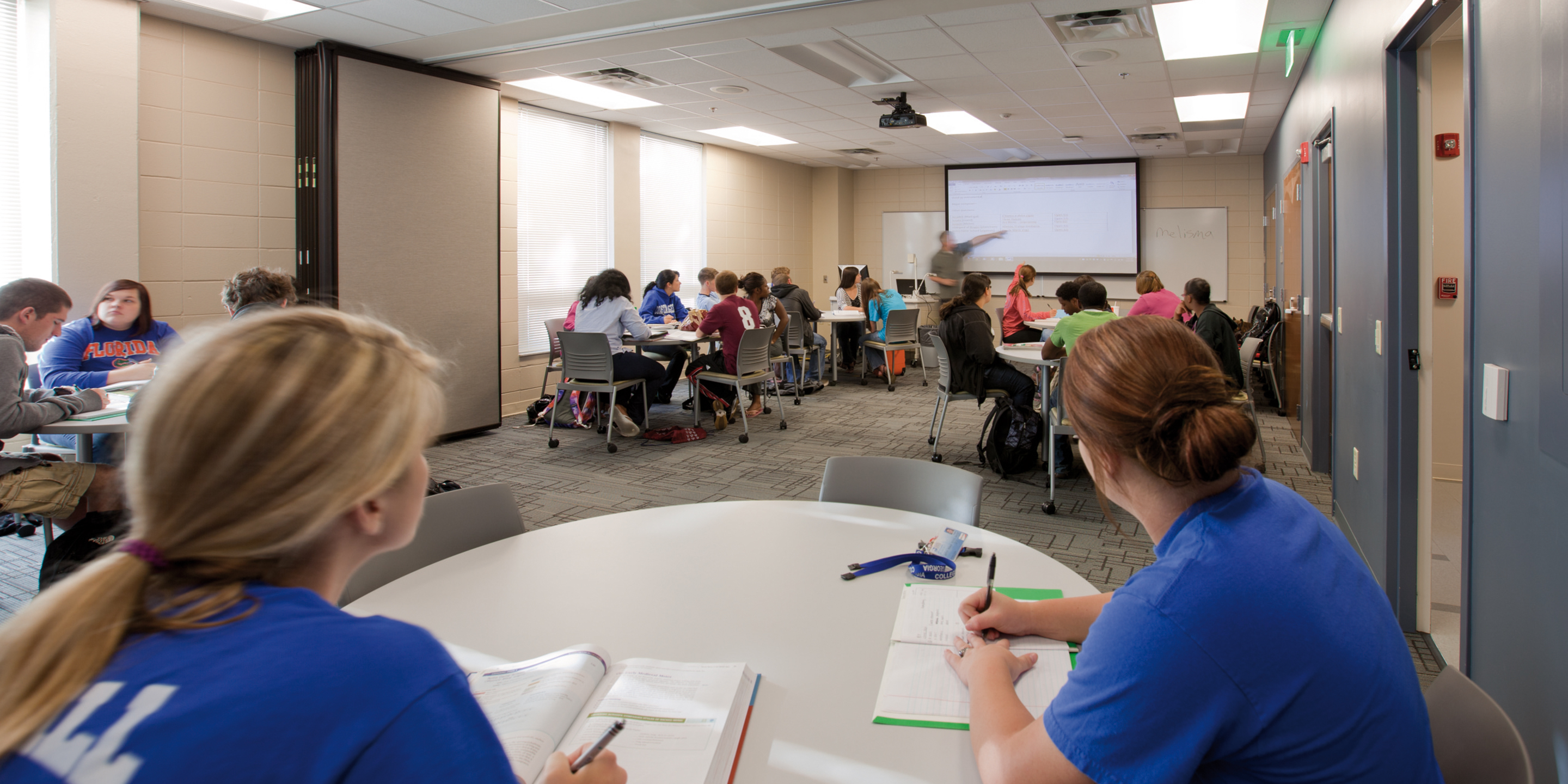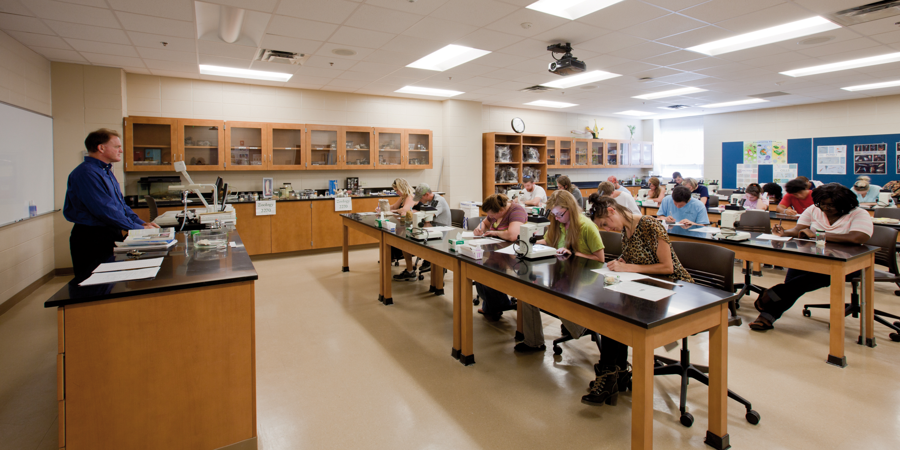 Cooper Carry provided full design services for this 50,000 square foot building renovation of classroom, laboratory and office space. The renovation accommodates the following program components: A large lecture hall updated with new AV systems, seating and finishes. Three (3), 50-seat classrooms with new finishes and AV systems. A 48-seat problem-based group learning classroom that is divisible into two (2)smaller classrooms. Teaching laboratories for biology, zoology and physics. Research laboratories for faculty. Four (4) administrative suites housing school administrative functions and faculty offices for the School of Nursing and Health Sciences, School of Mathematics and Natural Sciences, School of Business and Public Affairs, and School of Arts, Humanities and Social Sciences. A field biology lab with exterior entry and prep room for field work.