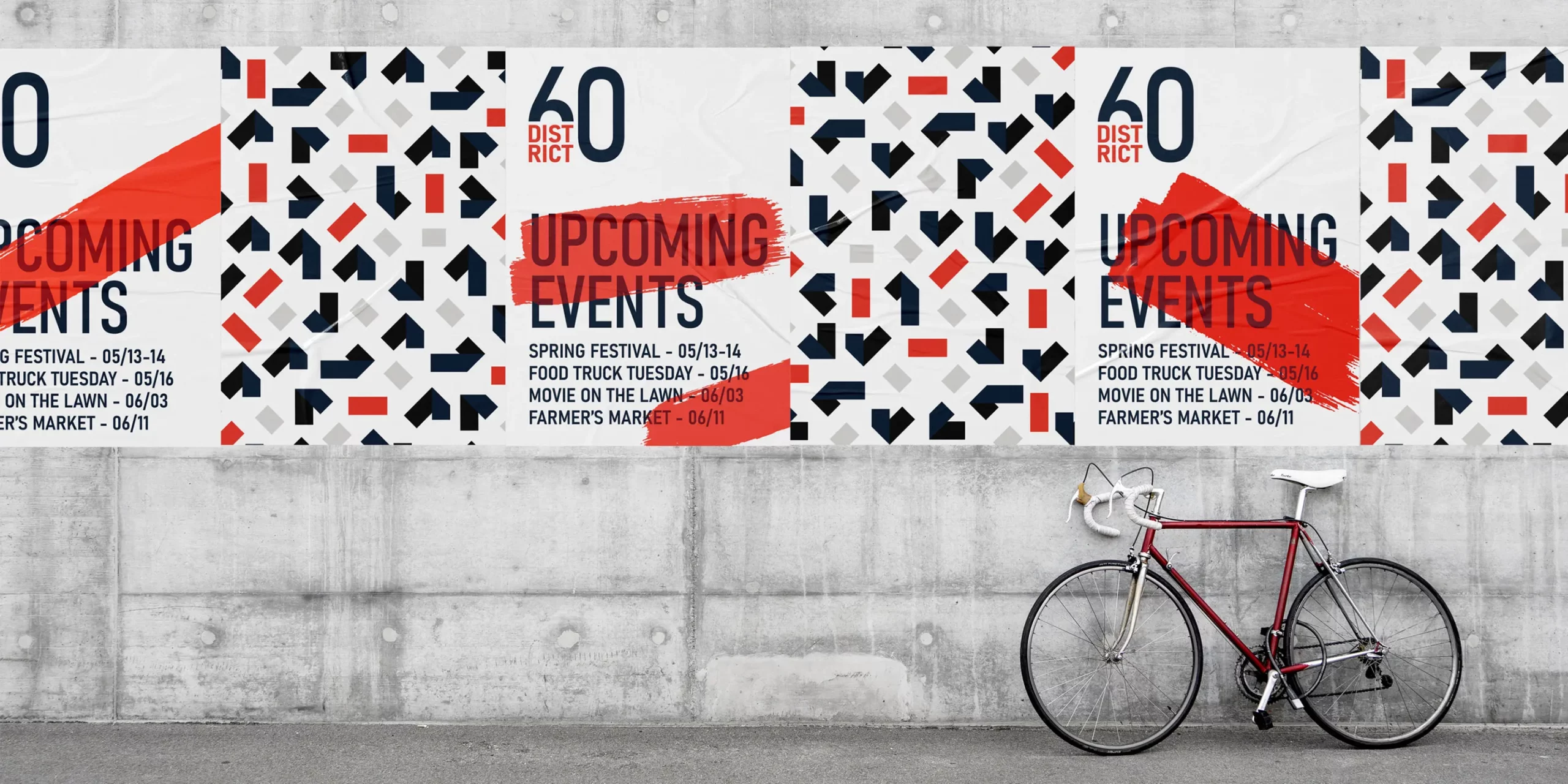 The Cooper Carry Branding Team conducted a thorough brand sprint exercise with members of the development team, Chesterfield County government officials, local historians, contractors, and citizens living and working in the region. We developed the center name with this deep understanding of the project goals and regional history. Located along the Midlothian Turnpike, District 60's name is derived from Highway 60, which acts as the main thoroughfare through the area.