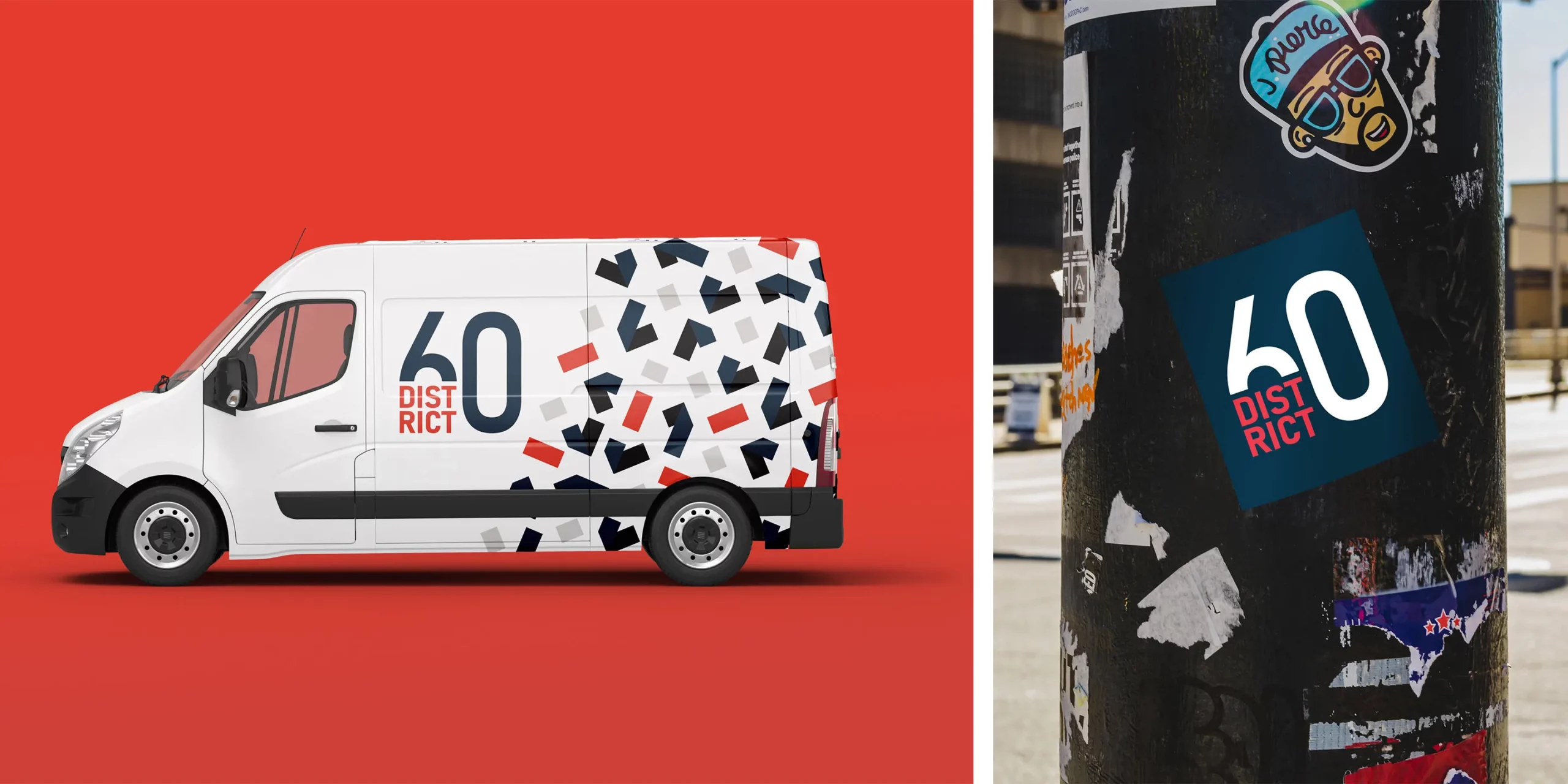 The brand design is urban inspired to better reflect the future of the region. The bottom half of the six in 60 is notched out to “carve out” the area’s identity and represent its prominence. The tall, sans serif typeface and bold color palette reinforce this concept.