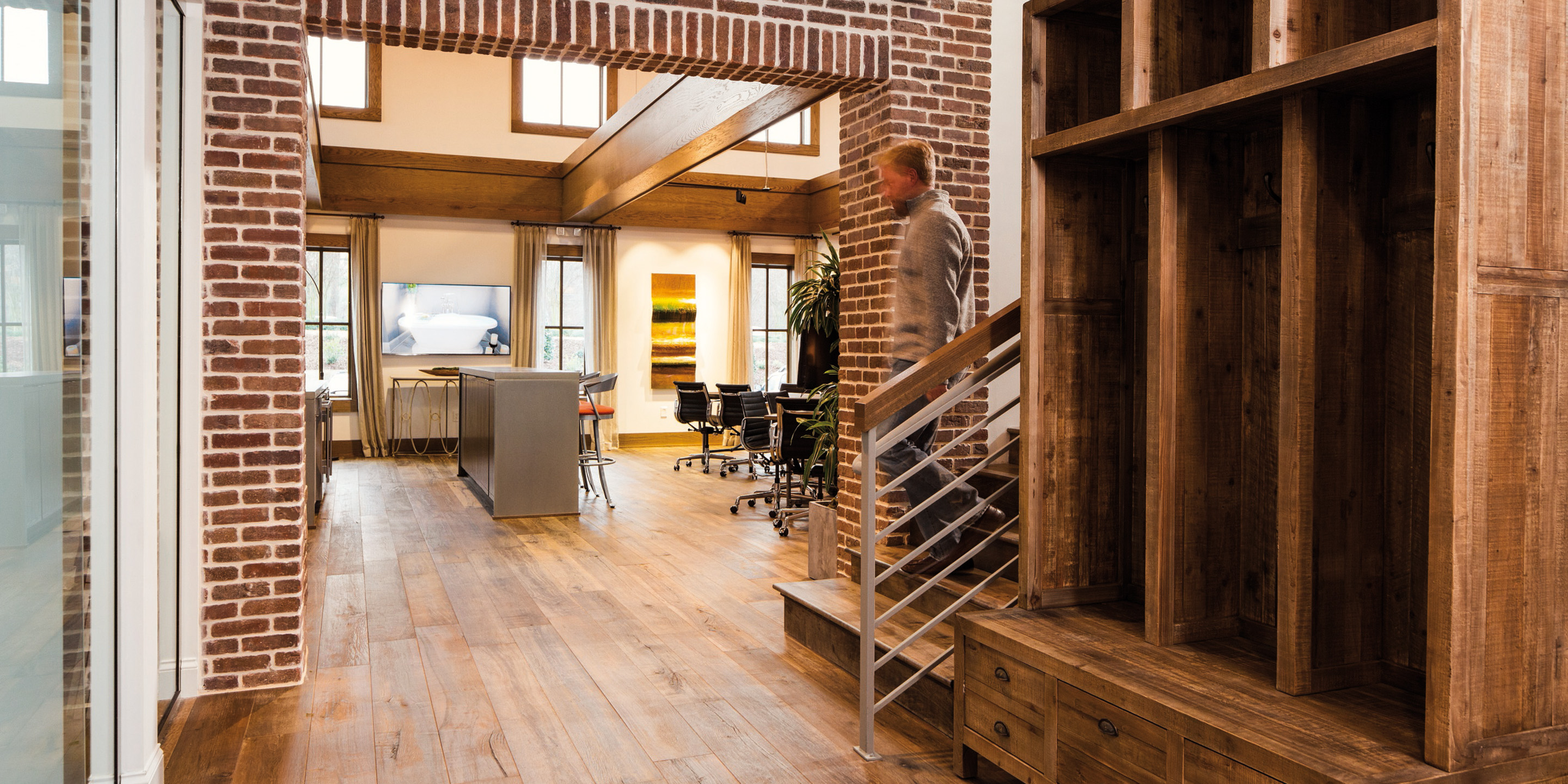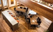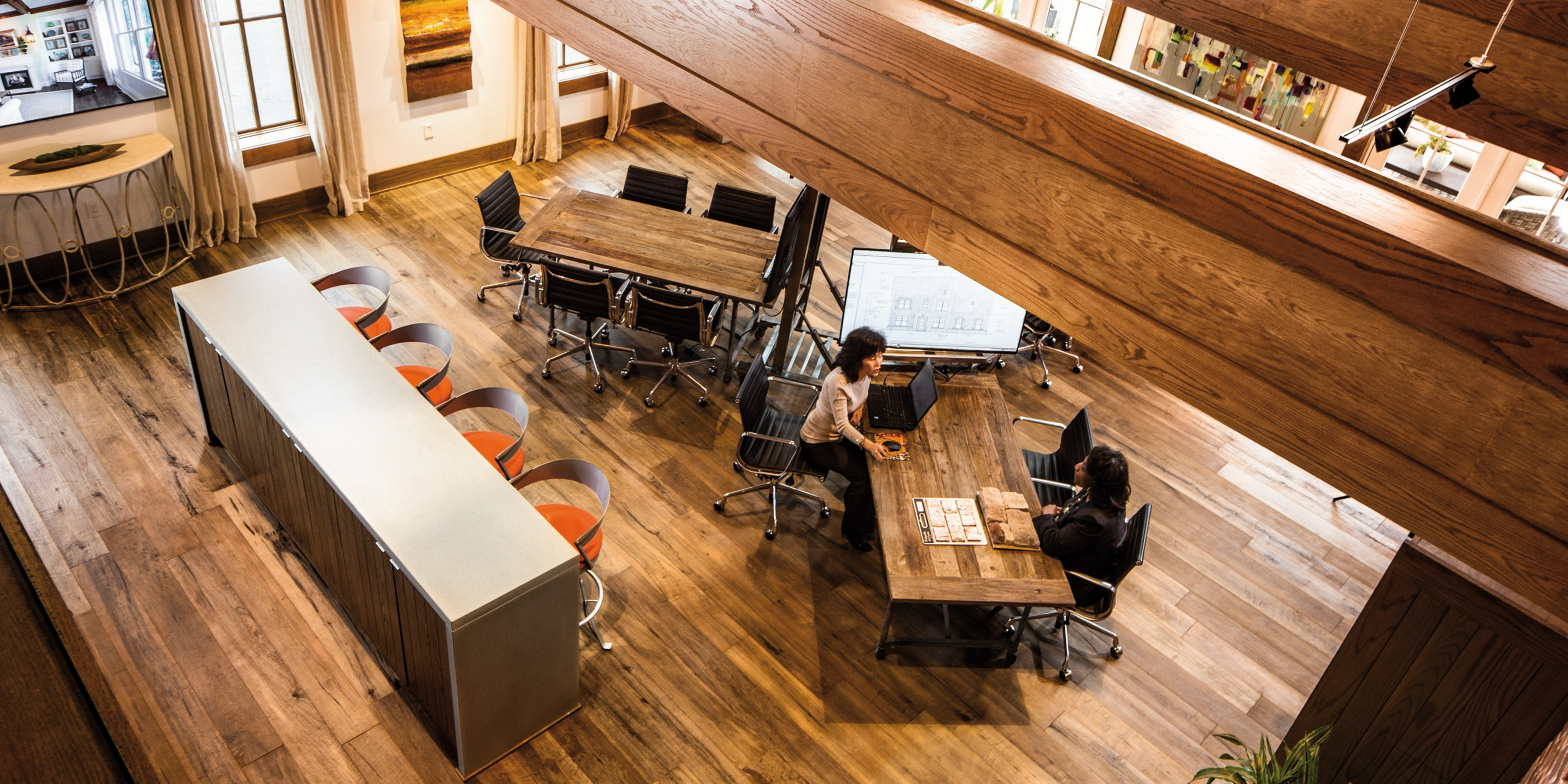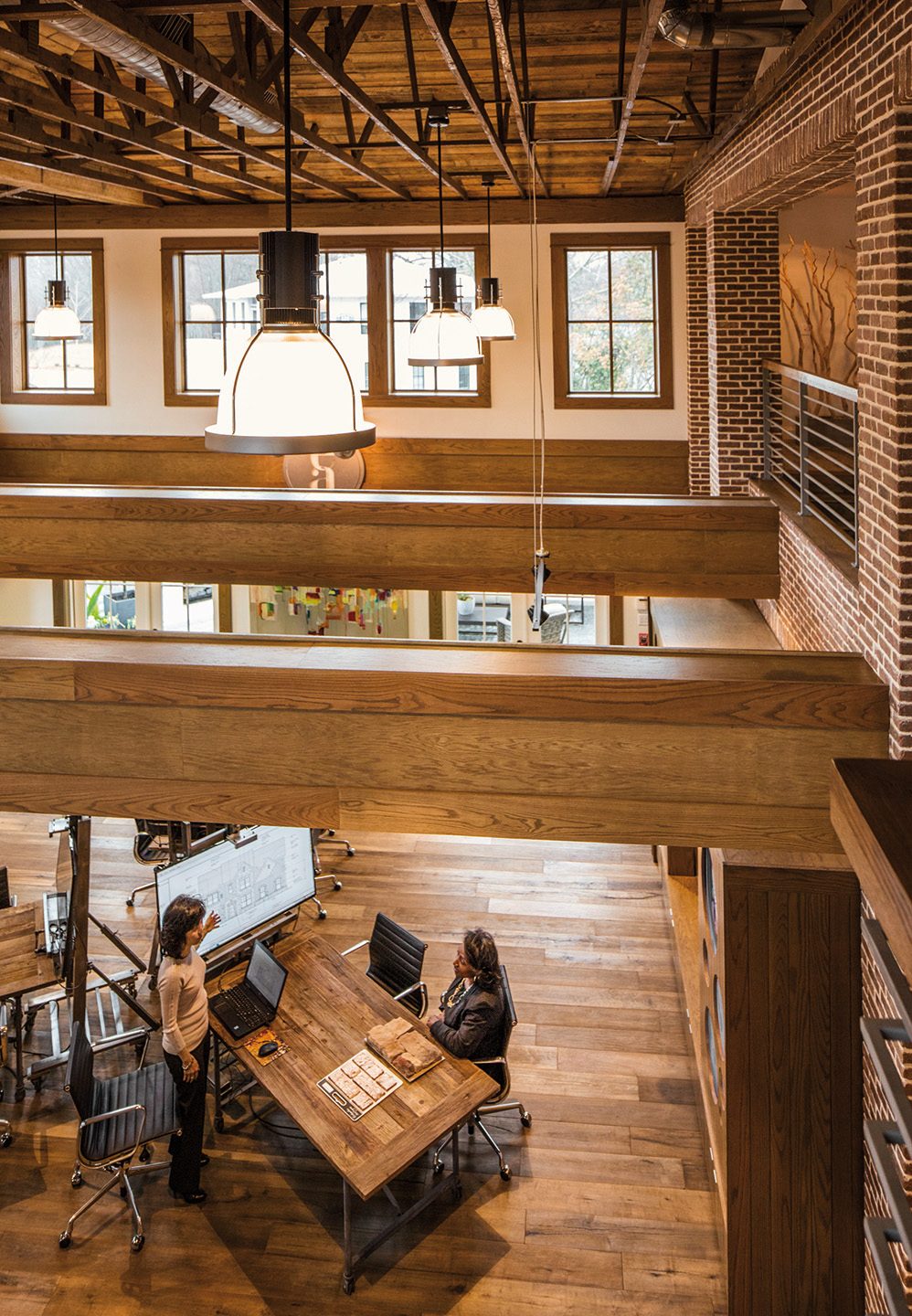 Cooper Carry’s challenge was to take a non-descript two-story building and convert it into a venue that would promote a positive and memorable experience for customers engaged in designing their new home. The style of the design center did not necessarily need to reflect the homes that are built, but rather an atmosphere that captures a comfortable southern hospitality mixed with industrial setting. Uncovering wood roof joists was a huge opportunity for an authentic warmth. Most psychologists rank building a home as one of the top five stressors. That is why this project evokes a very genteel, relaxed environment – almost home-like. Customers are able to meet with EA Homes design consultants to select every aspect of their new dream home.