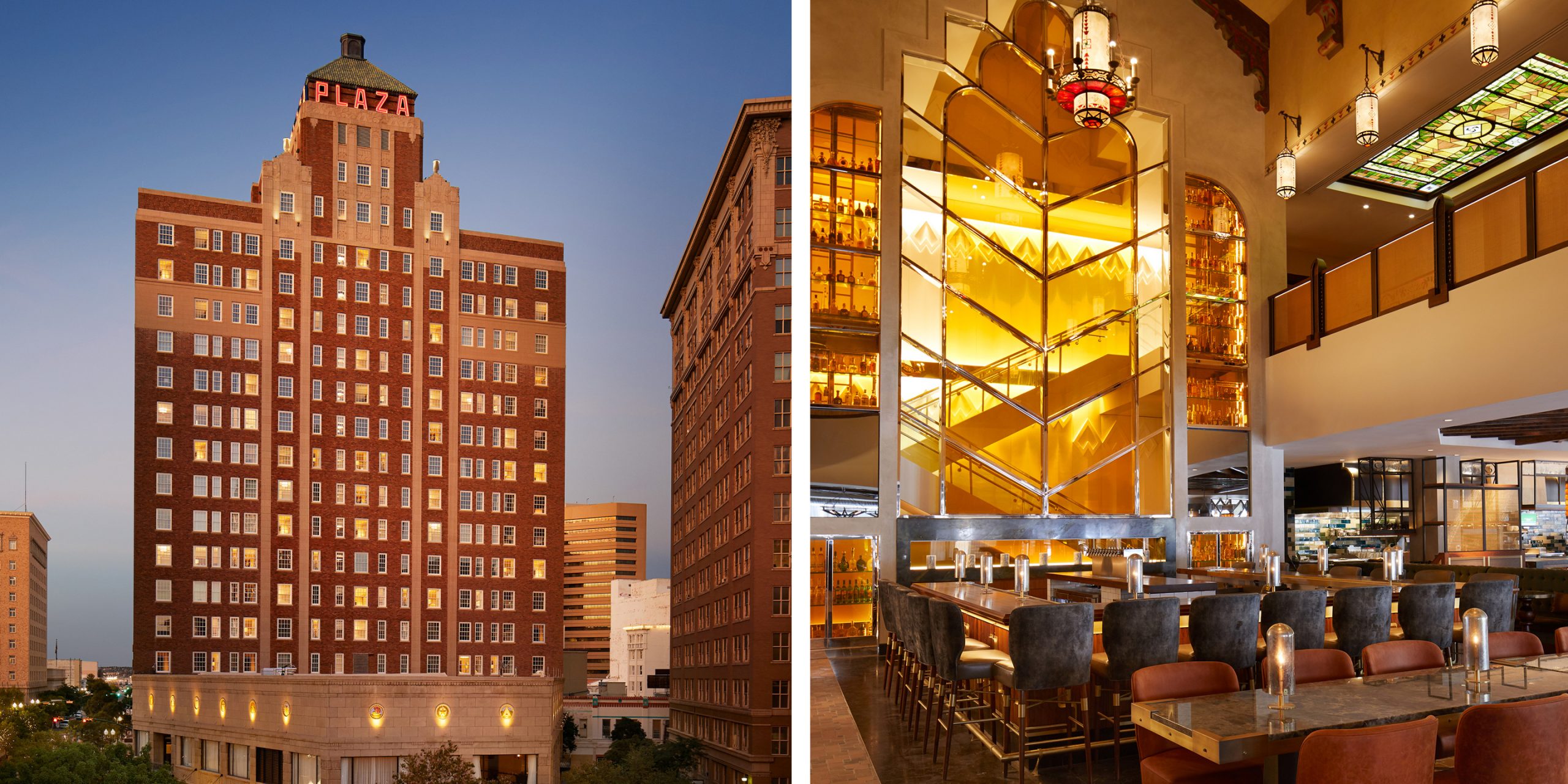 Despite several decades of renovations that undermined the original design, the team surgically intervened, where required, to honor the original spatial intent and detailing of the historic elements. The work included converting the penthouse suite into a rooftop bar and event space as well as reinstating the original double-height lobby atrium, capped in a mid-century era renovation, and bringing back the grand entrance at the heart of the building. The Plaza Hotel Pioneer Park is once again the social hub and heartbeat of downtown El Paso.
