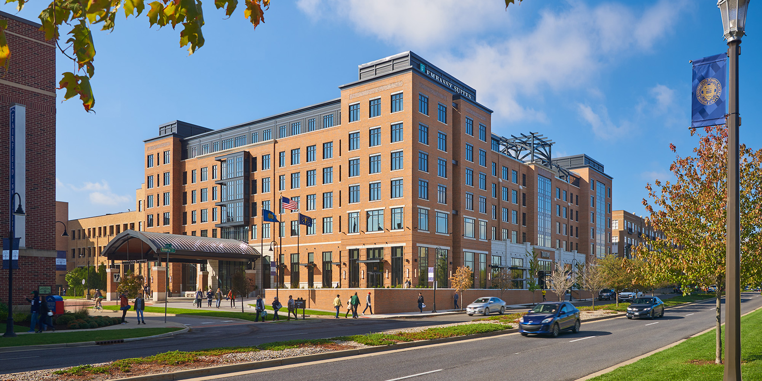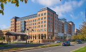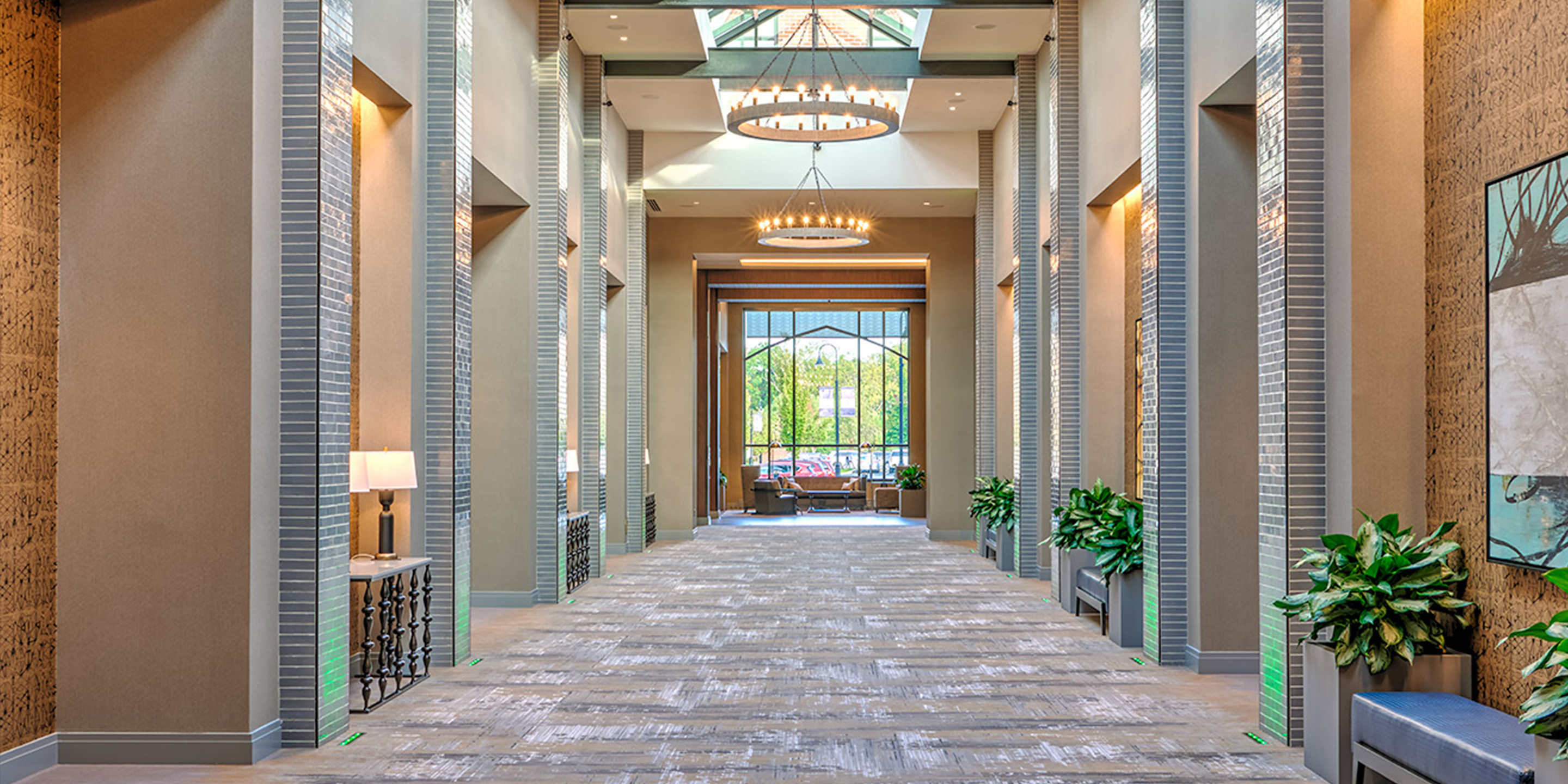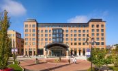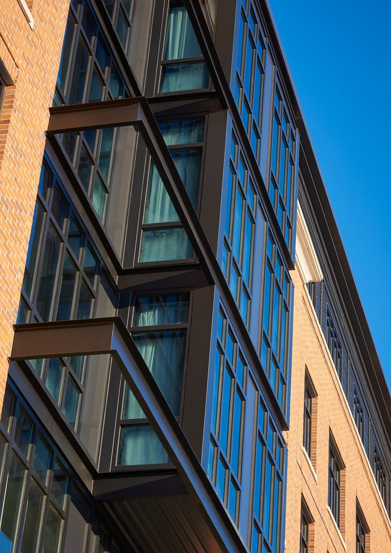 The new Embassy Suites at the Eddy Street Commons is a 164 key hotel that includes an extensive food and beverage program, 8000 sf of meeting space, a fitness center, and a rooftop amenity terrace. The design of the north façade draws pedestrians from the Eddy Street development further down Angela Street, continuing the urban atmosphere of the neighborhood. Both the exterior and interior of the hotel are designed to meld the collegiate Gothic style of Notre Dame’s campus architecture across the street with the industrial feel of the adjacent buildings along Eddy Street.