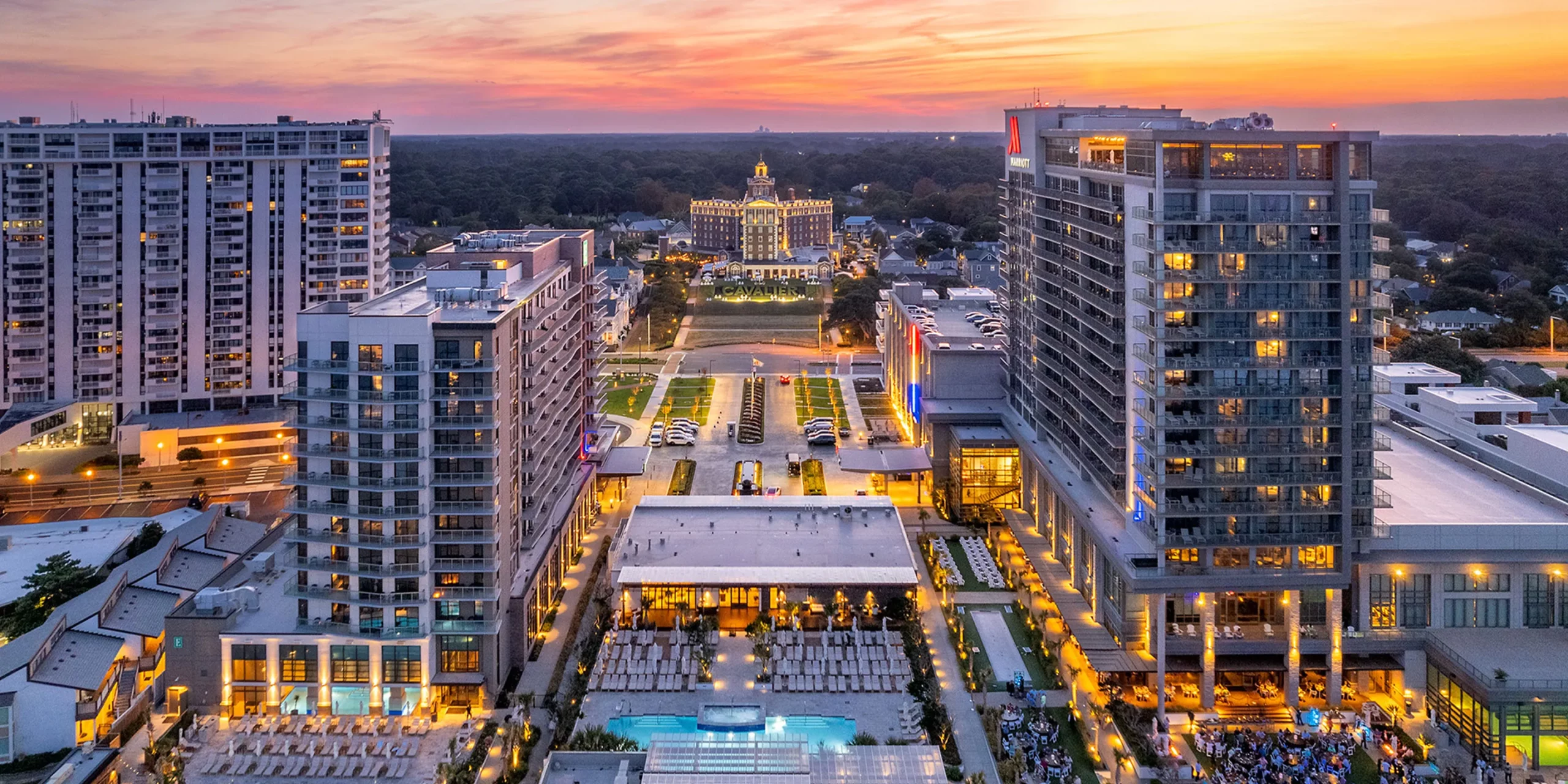 The Embassy Suites Virginia Beach Oceanfront Resort is the latest addition to the Cavalier Oceanfront Resort’s rich history of serving travelers at Virginia Beach. The resort’s master plan included expanding its campus that encompasses the restored Historic Cavalier Hotel – an iconic hotel that originally opened in 1927 – the Cavalier Beach Club, and the Cooper Carry-designed Marriott Oceanfront Resort accompanied by 42 luxury residential condos. The Embassy Suites completes the oceanfront side of the resort campus next to the Marriott, offering direct views of the Atlantic Ocean and mere steps away from the beach.