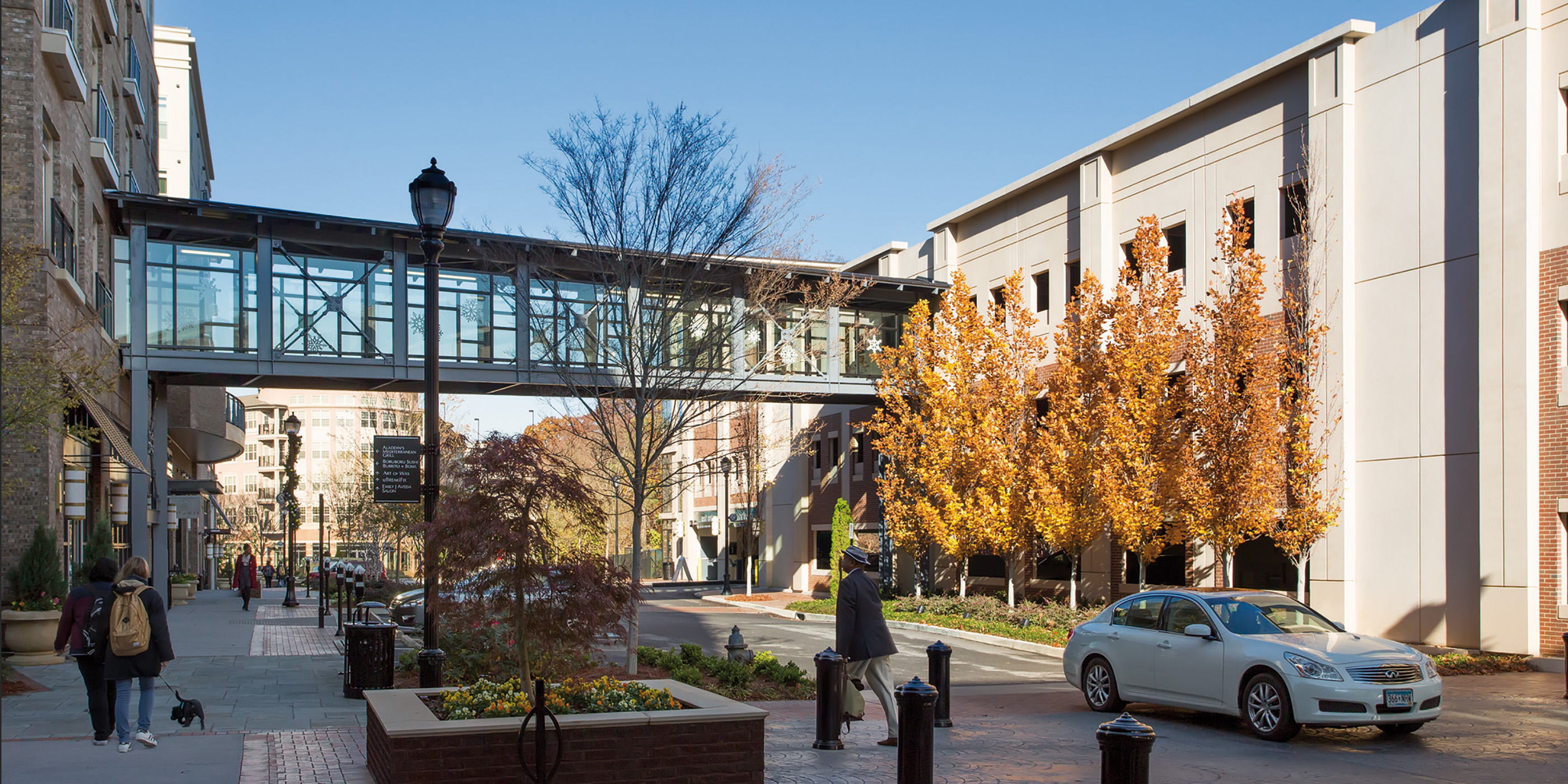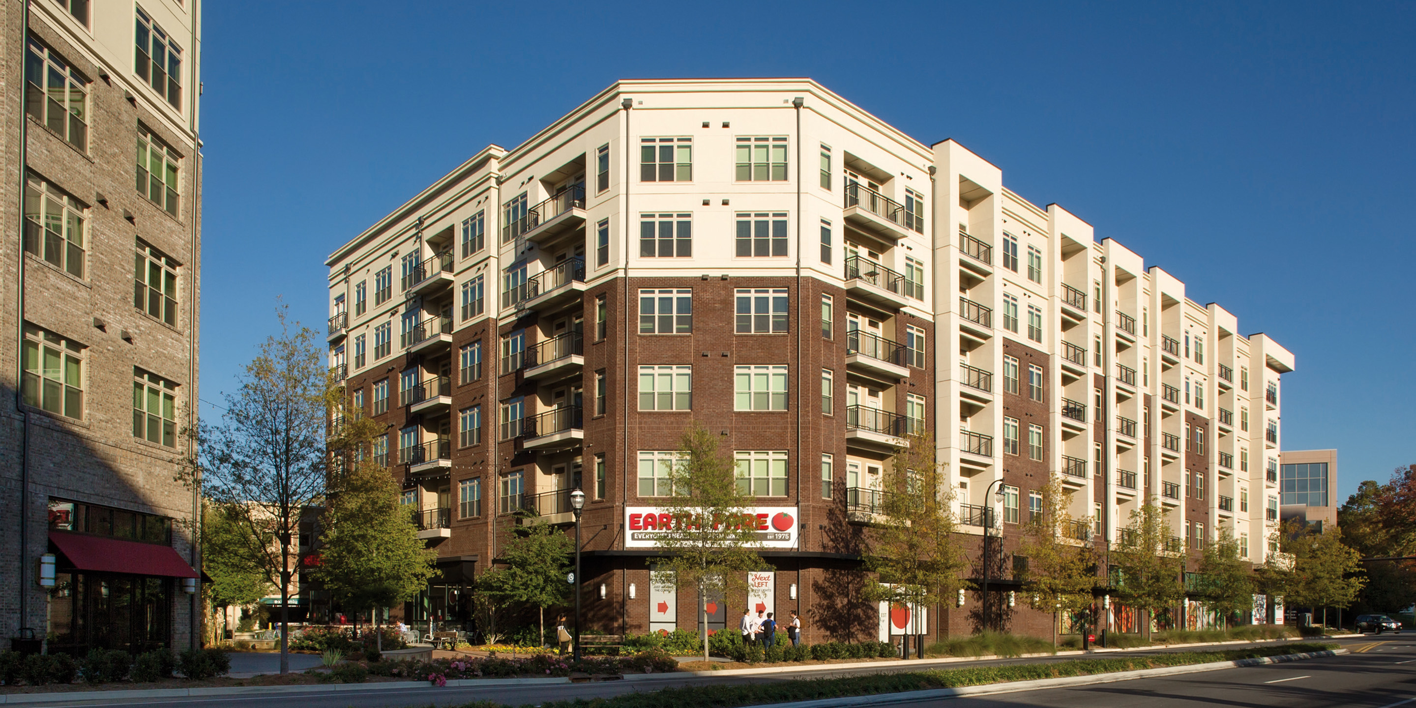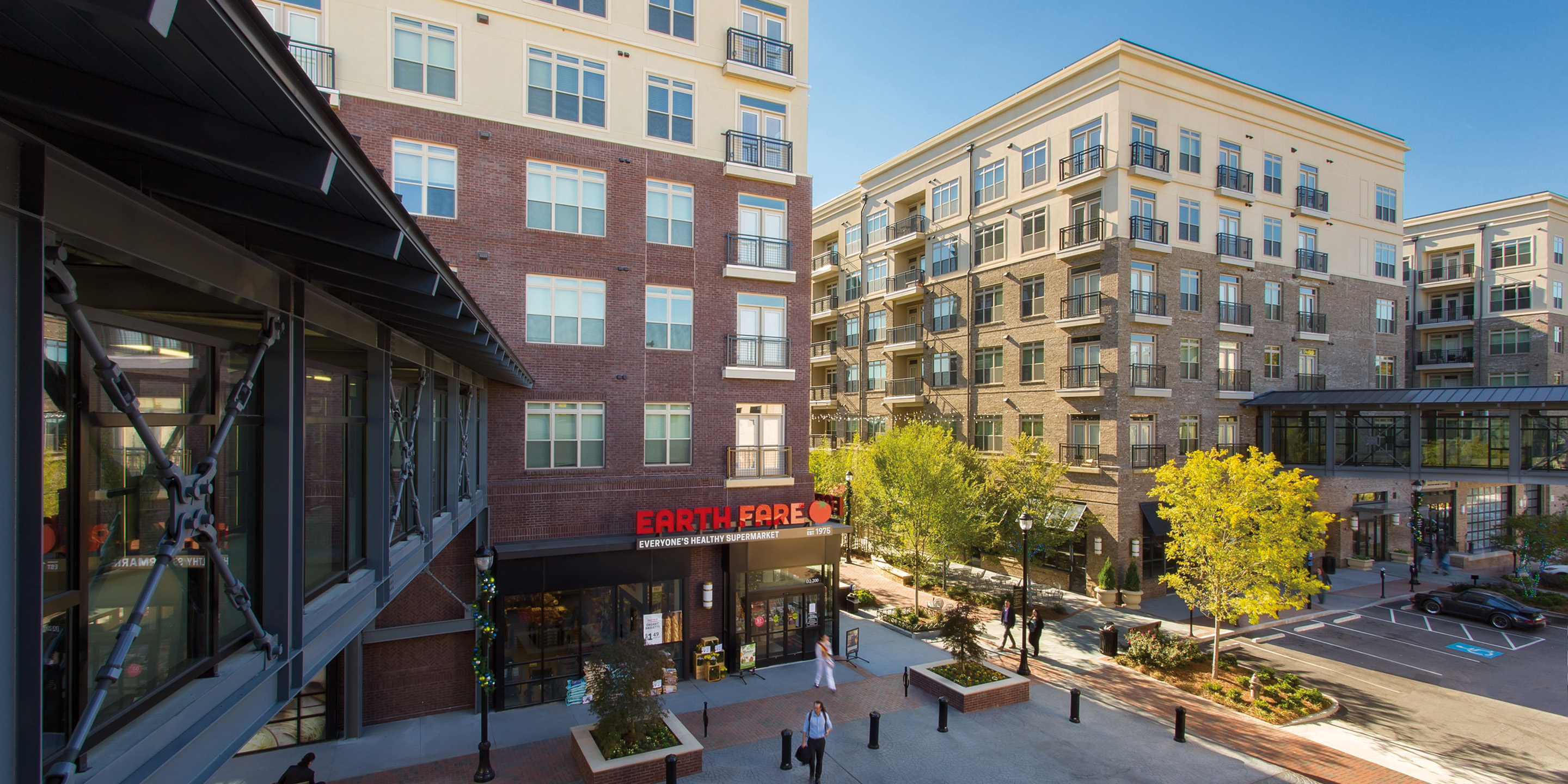 Emory Point is situated along the busy Clifton Road corridor in Atlanta that is home to several large institutions, including CDC, Emory University and Emory University Hospital. Building on the success of Phase I, Emory Point Phase II increases the mixed-use project’s footprint to a total of 122,000 square feet of shops and restaurants and 750 residential units. The previous superblock was broken down into five walkable blocks of residential over retail, with two public courtyards, and a central park area facing the nearby forest. All of the buildings share utility and storm water infrastructure and are certified to meet Earthcraft Multifamily, Light Commercial, and Neighborhoods standards. The project provides multiple access points to the community including MARTA bus service, a free shuttle from the Emory University campuses as well as a central park that offers pedestrian connectivity to the CDC’s main campus.