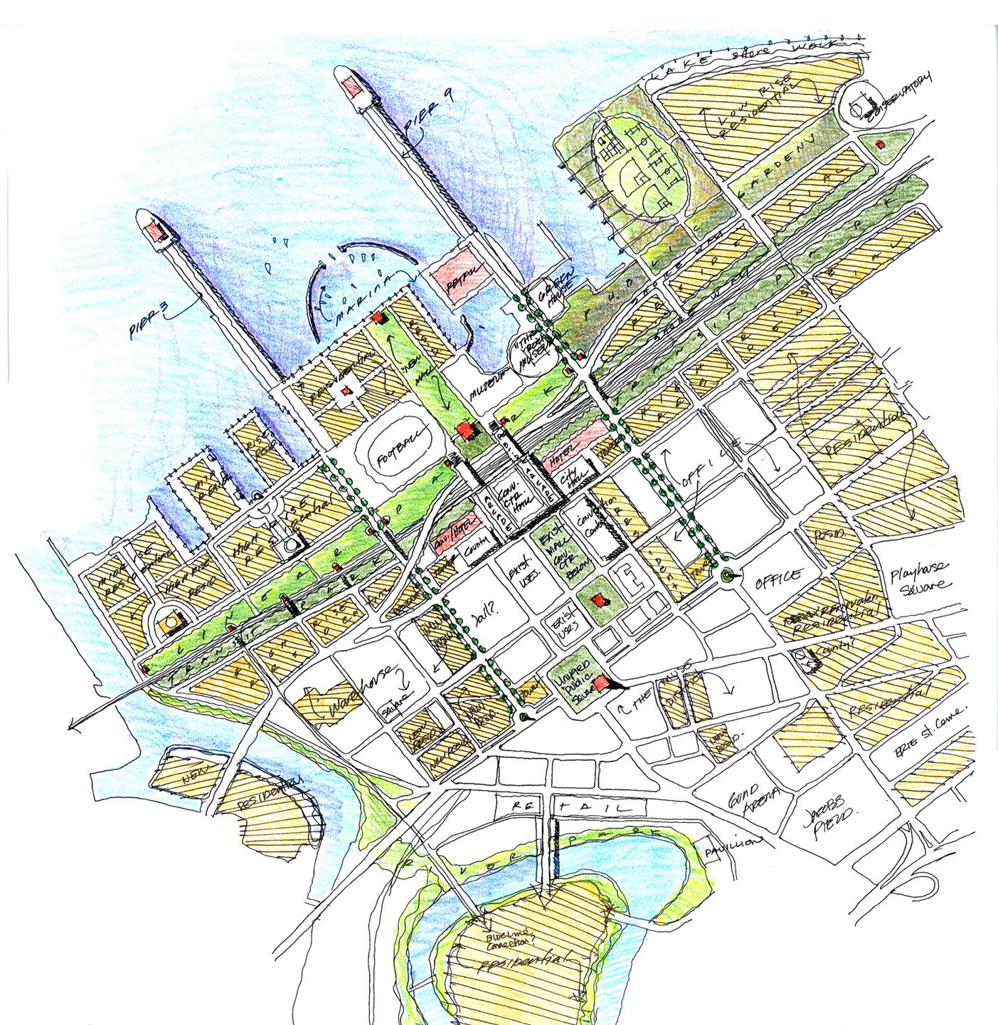 The Euclid Avenue Corridor Plan grew out of planning exercises for Downtown Cleveland and ultimately examines the underlying catalyst projects needed to revitalize what was once Cleveland’s premier shopping street. The East 4th Street Development area integrates national and local retailers in a renaissance of entertainment in downtown Cleveland. Catalyst projects include the new House of Blues, development guidelines and improved streetscape designs. The Master Plan takes into consideration existing and future developments in the downtown area of Cleveland, as well as the impact of the local infrastructure, housing and entertainment market in Cleveland. Within the Master Plan is the East 4th Street Development area. This area serves as a link to the historical Gateway area, which includes the Jacobs Baseball Stadium and the Gund Arena. The completed Master Plan provides the stakeholders with a clear understanding of economically feasible development opportunities in retail, housing, entertainment, office and other uses within the Master Plan.