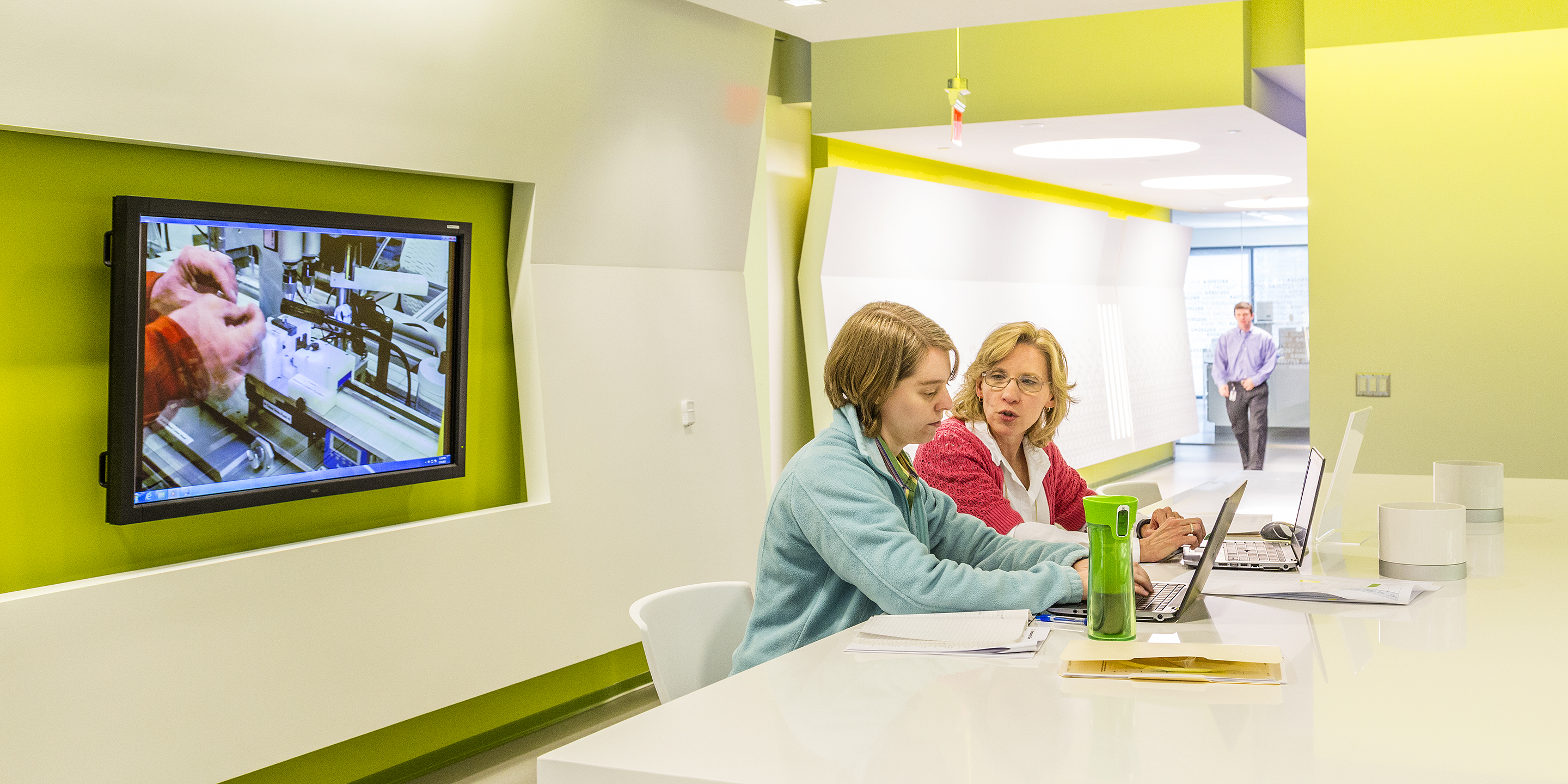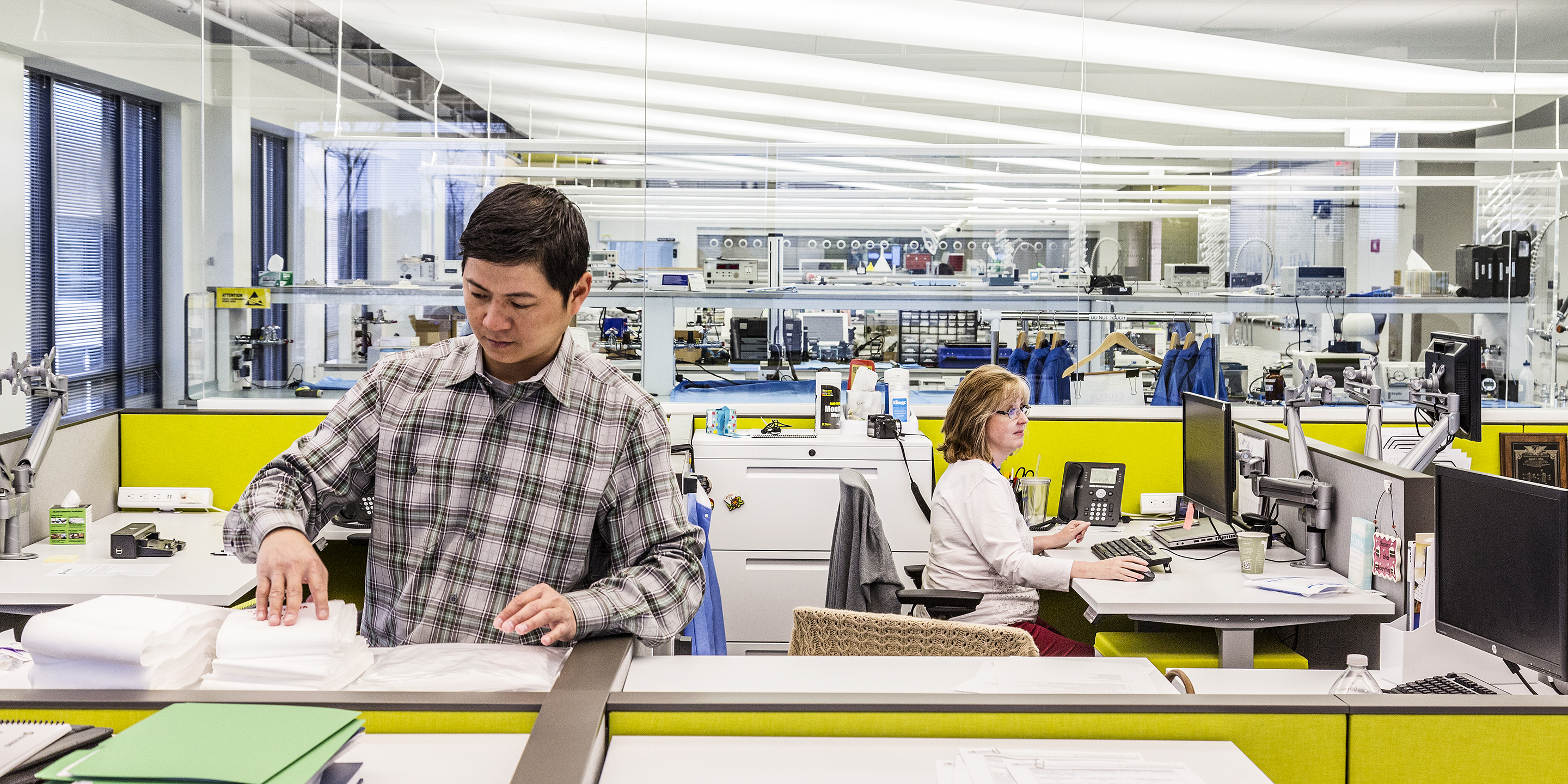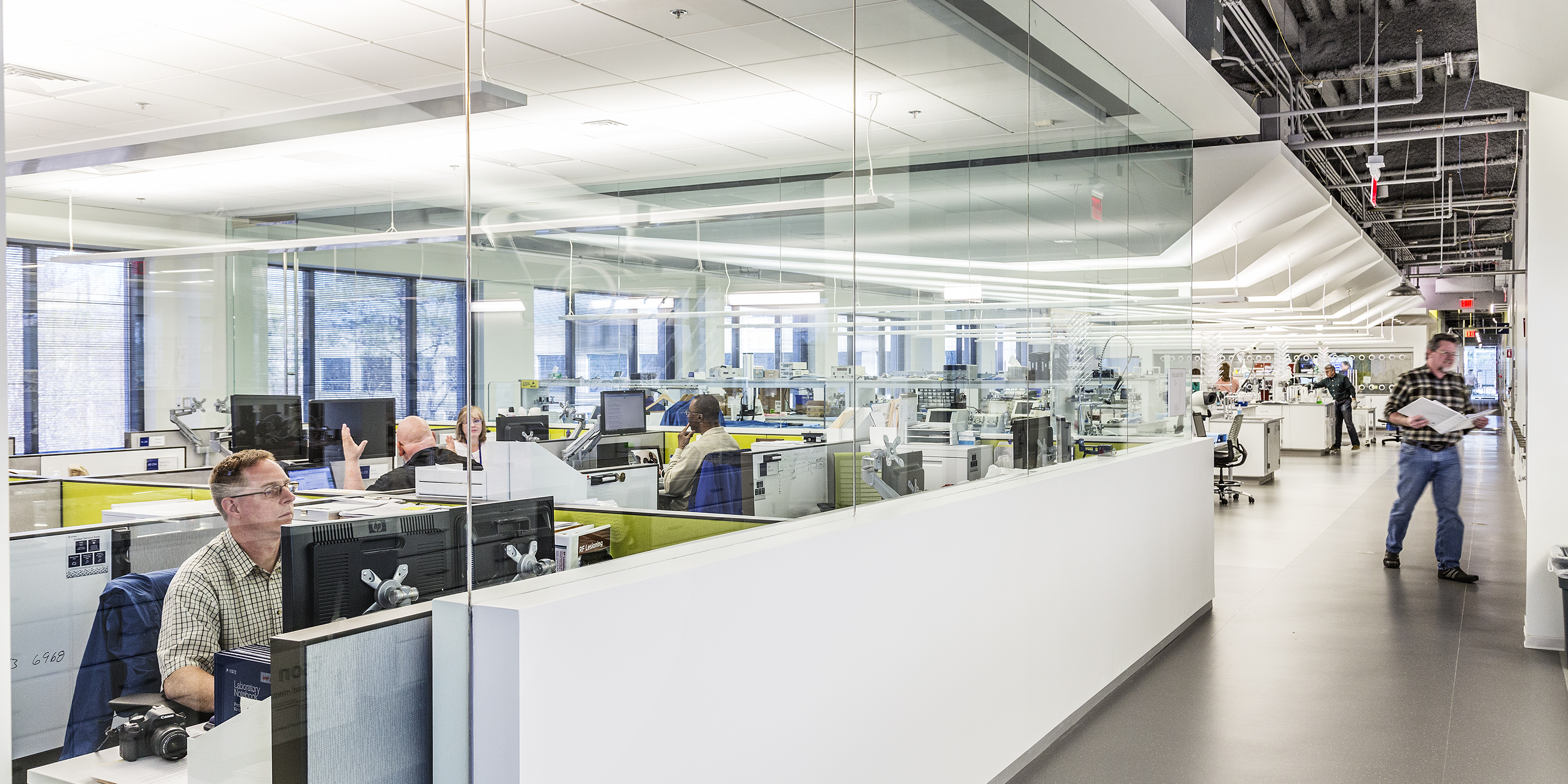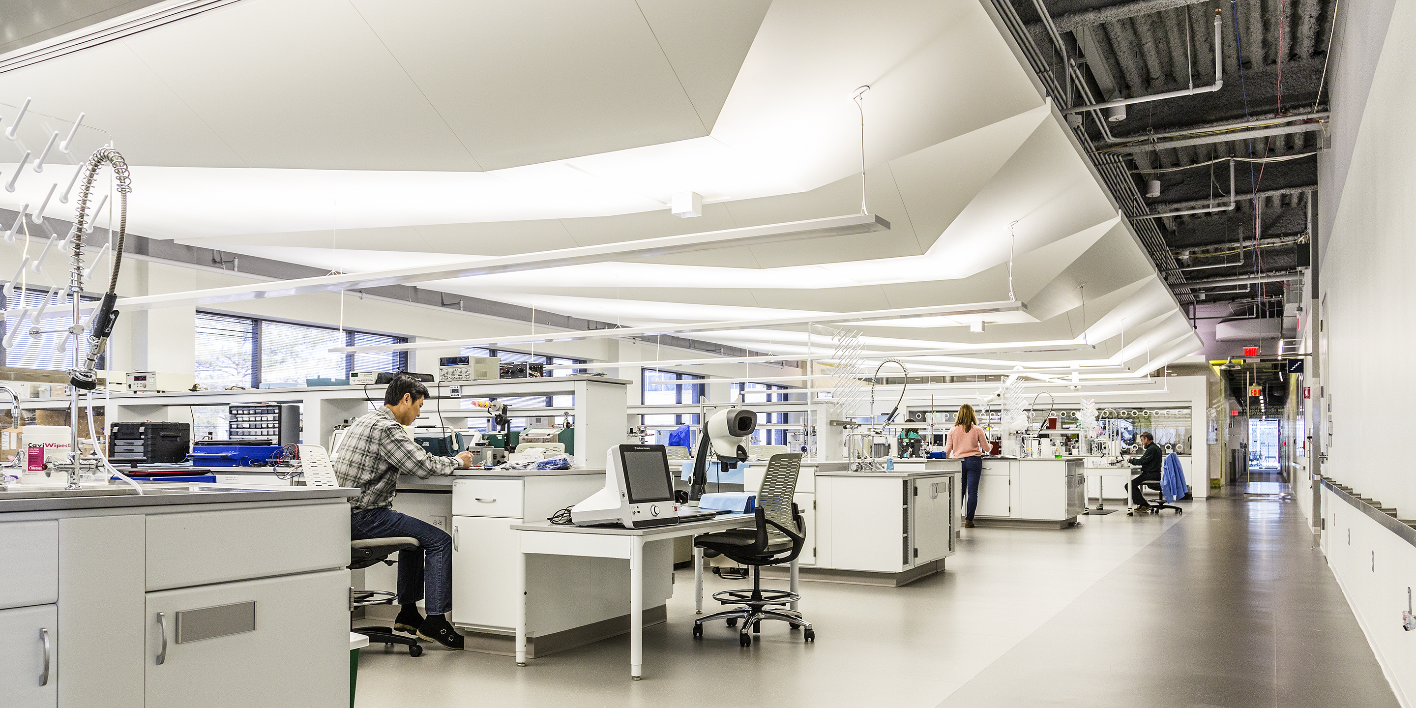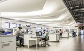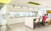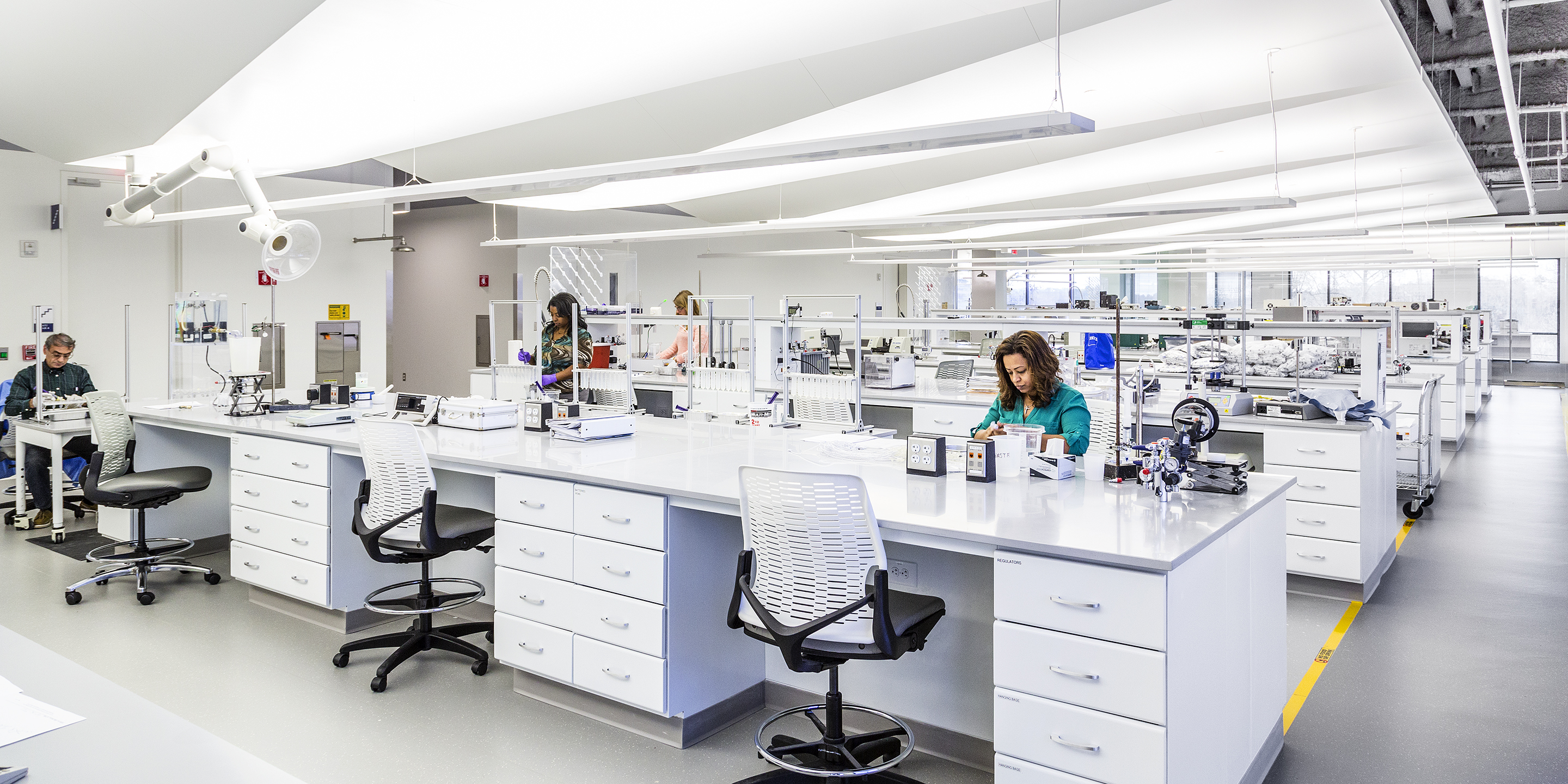 The new Halyard Health Corporate Headquarters houses all research and development laboratories for the entire enterprise. The project repurposed a 1980’s speculative office building into a high tech corporate headquarters. Cooper Carry’s design team was able to create 14,000 SF of state-of-the-art laboratory within the headquarters, nurturing innovation through an inspiring and collaborative work environment. Careful attention to work flow and segregation of spaces was required, based on the product development process as well as FDA audit requirements. The signature laboratory is not only an invigorating work environment, but also a marketing tool for the corporation for both existing and prospective clients. The facility includes product research labs, wet labs, preclinical testing labs, testing labs, validation and verification labs, a failure analysis lab, machine shop, prototype room, chemical and biological hazardous storage, pilot line, and a pilot finishing lab. Product designers and laboratory technicians analyze what products the market needs, develop prototypes of the products, test prototypes, create manufacturing processes and equipment, test manufactured products, and finally conduct quality reviews of products which are in the market but are thought to be defective.
