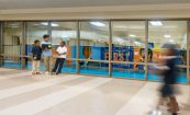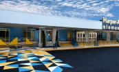 The building’s exterior also underwent a rebranding. The entry was enhanced to create a welcoming sense of arrival. Fresh paint and windows refreshed the facade, while new lighting and signage offer a sense of warmth. Supergraphics on the pavement serve as a playful invitation to the students. Finally, light landscaping was strategically integrated to complete the update. The elements work together to communicate to students, families, and neighbors the sense of friendliness and the spirit of optimism that early learning brings.