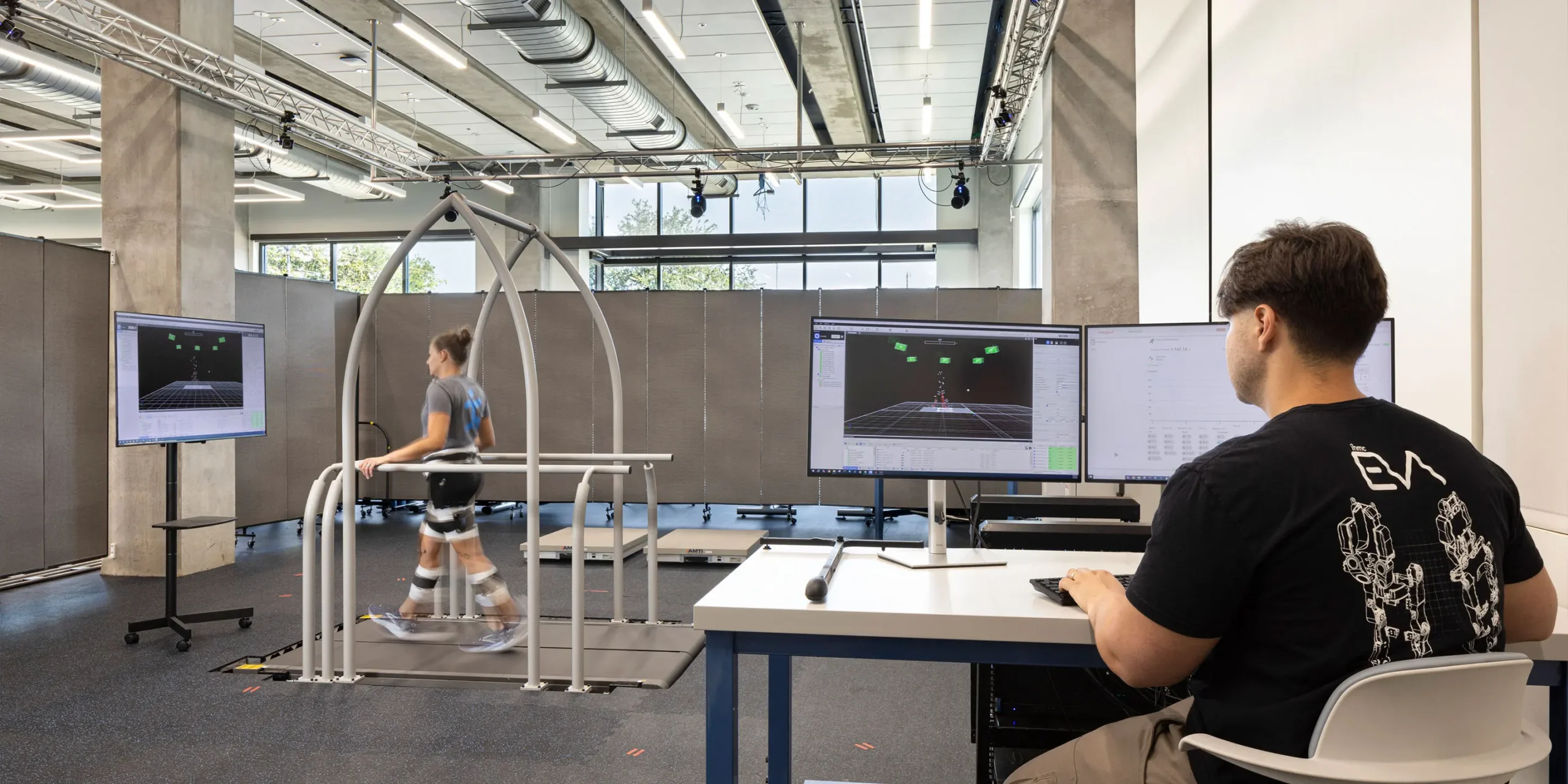 Specialized environments support cardiorespiratory, neurocognitive, and neuromuscular studies, alongside resistance training, metabolic testing, and environmental simulation. A motion-capture rehabilitation facility enables high-volume testing of participants. Wet labs include histology, cell and tissue culture, biochemistry, and molecular biology cores, supported by microscopy, autoclave, cold storage, and a biobank.