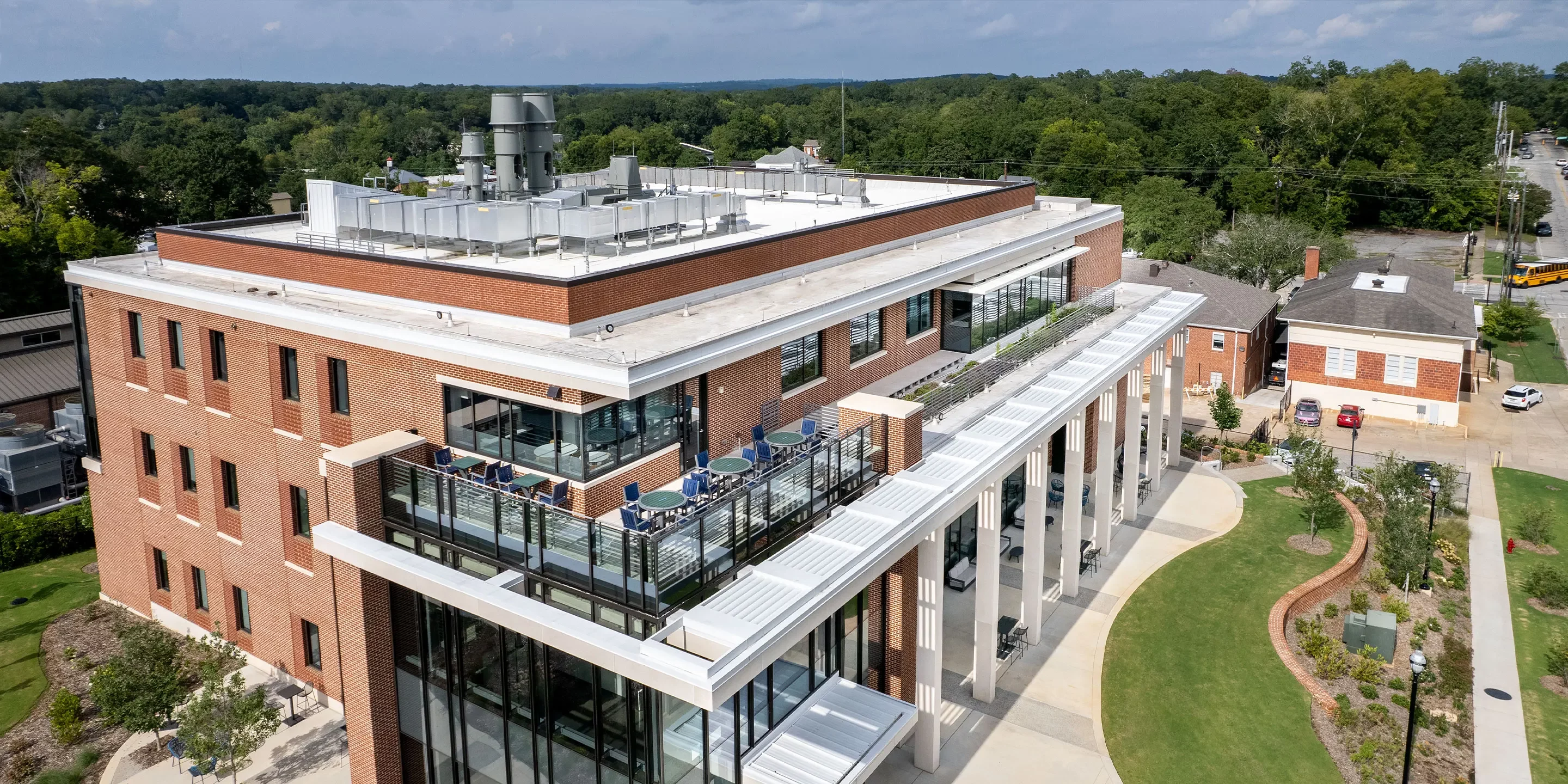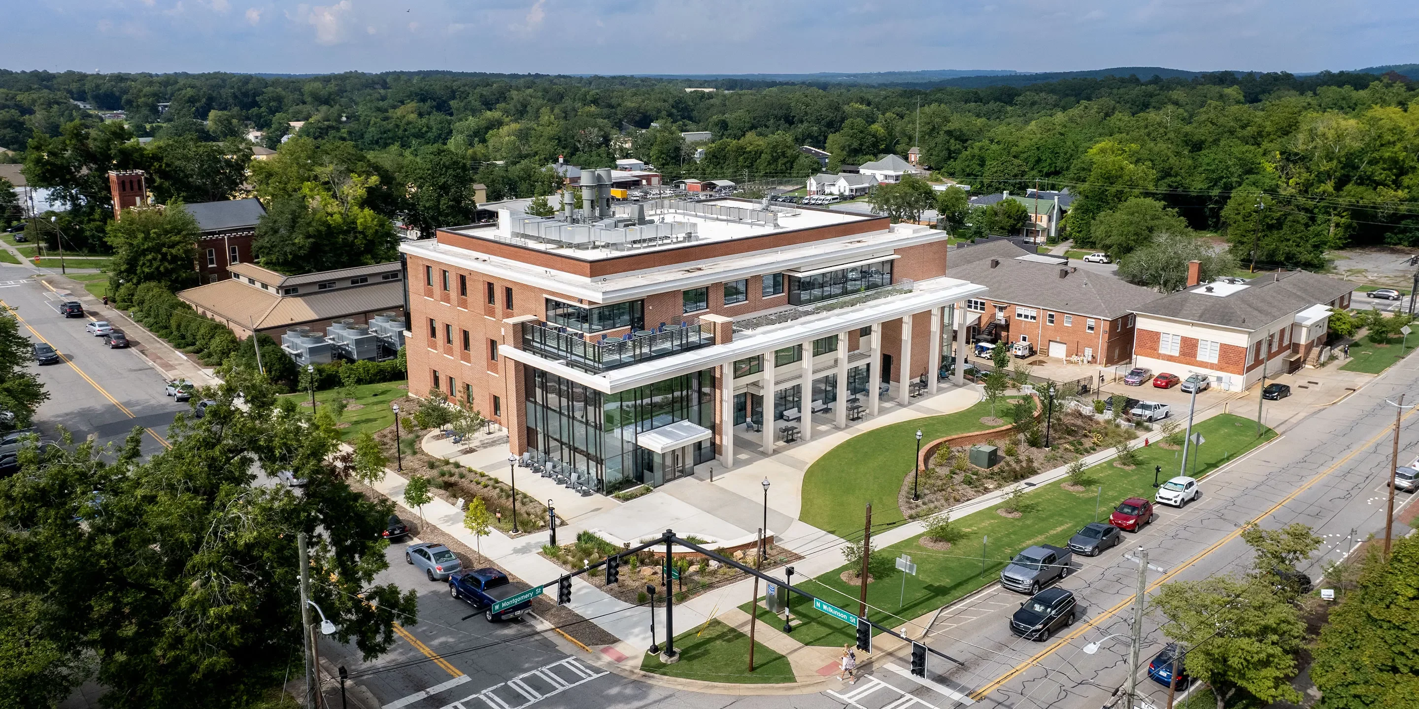 As the first new building on campus since the early 1990s, the Integrated Science Complex at Georgia College & State University had to serve a host of programmatic needs. Located on the edge of campus, the goal was to integrate the facility with the historic campus, while still maintaining a unique identity and reinforcing the campus boundary.