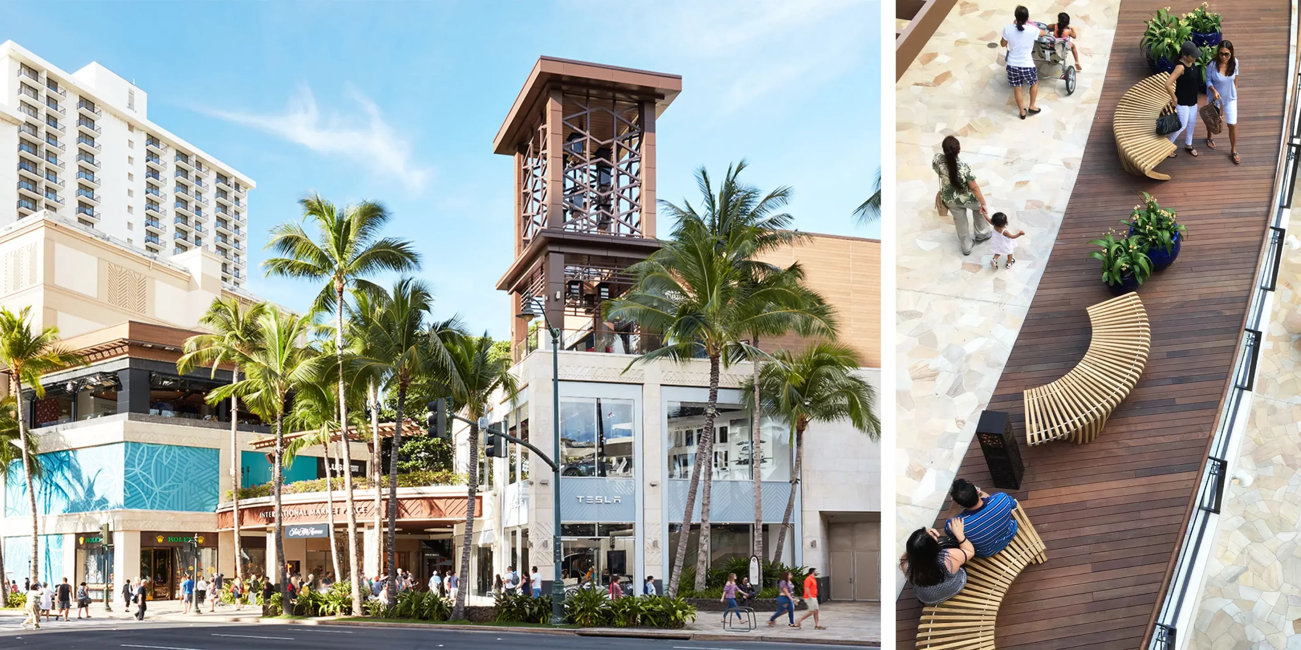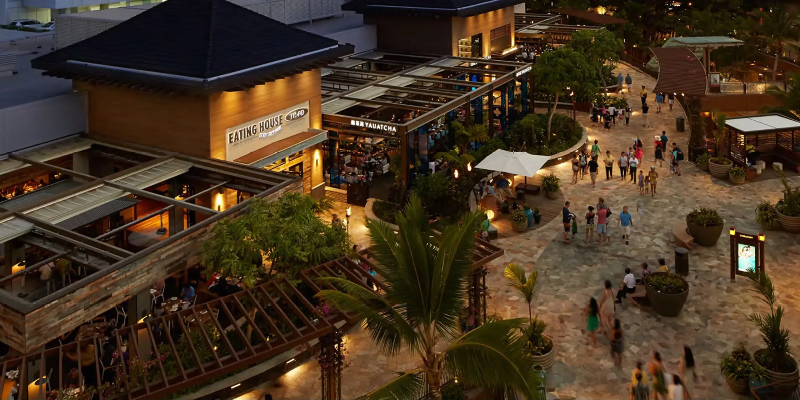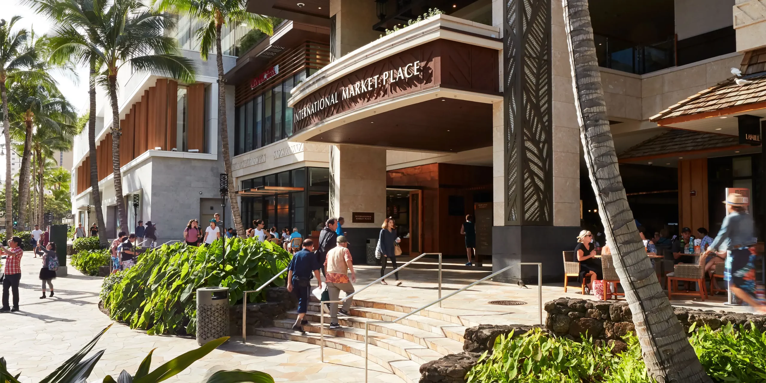 In August 2016, Taubman wanted to reimagine International Market Place, as a 343,000-square-foot, open-air retail, dining, and entertainment destination. We crafted a design narrative inspired by the rich culture, history, and natural beauty of the region, one that celebrates the people of Waikiki and welcomes visitors to feel at home. The center showcases a dynamic collection of over 90 luxury and contemporary retailers as well as the largest collection of restaurants in Waikiki. Placemaking details include flowing water features, lush landscaping, and an iconic banyan tree that is more than a century old.