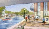 The master plan incorporates Jeffersonville’s existing and proposed cultural assets, allowing the city to grow while maintaining and developing its authentic character. The canal and its adjacent public open spaces are envisioned as gathering and recreation places while offering ample retail, dining, and other destinations that draw in visitors and locals.