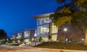 The expansion and renovation of the KSU Student Recreation Center and Activities Center (SRAC) was issued as a Bridging Documents RFP by Hughes Group Architects. Cooper Carry with Richards, Wittschiebe, Hand Architects were part of the Hardin Construction team selected to execute the Design Build project. The 176,092 square foot facility is design to accommodate the University’s explosive enrollment growth to 20,000 students. The new facility and renovation was completed as a phased construction project, sequenced to keep the existing facility operational throughout the 18 month construction cycle. The facility expansion abuts the existing recreational facility, creating a 300 foot long two (2) story fitness atrium and circulation spin that sits astride an existing main campus pedestrian pathway that will energize the facility, becoming the new recreational and social hub of the campus. The fitness atrium is glazed on three sides creating a dynamic day lit space during the day, and a transparent campus beacon at night. The existing facility gym, locker rooms, multipurpose rooms were renovated, the Health and Wellness Center services and facilities were expanded. The new facility has expanded free weight, cardio, fitness and group exercise areas and new locker rooms. The new four (4) court gym has a jogging track looping around the upper level of the gym, fitness area, and two story climbing/bouldering wall. There is an (8) eight lane indoor pool as well as an outdoor leisure pool. There is a bike shop with a convenient equipment checkout area for outward bound equipment. The exterior recreation area includes sand volleyball, basketball, and tennis courts.