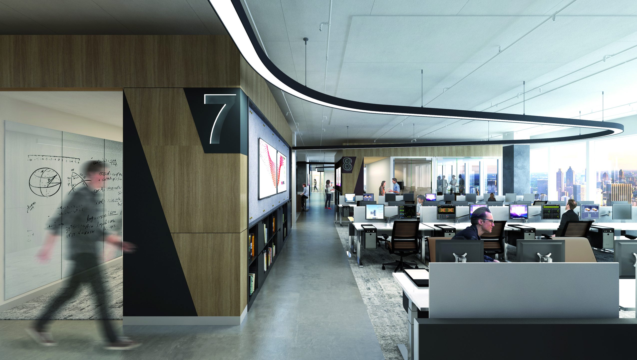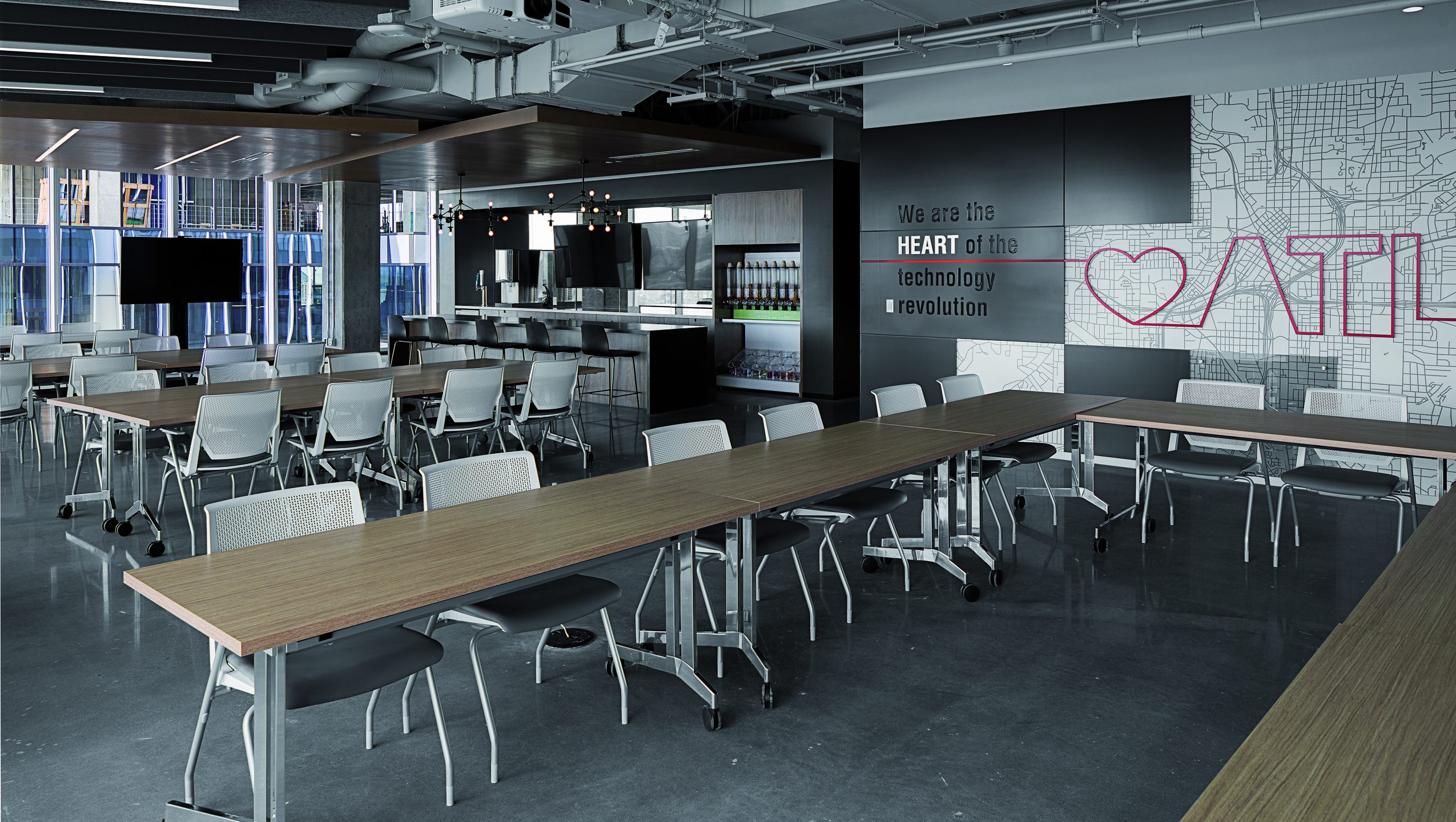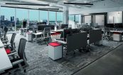Aside from the open office, the space offers a multi-purpose lunch area, hands-on product demos, coffee bars, small focus settings, collaborative touchdowns/meeting rooms, and places for to interact with colleagues and visitors.