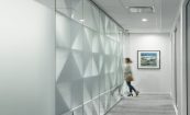 While the front of house hosts meetings and gatherings for staff, attorneys and clients, there is a strong focus on the privacy which was maintained for the firm’s office space. Perimeter attorney offices for the attorneys are designed to be one single “universal” size, along the exterior wall, and incorporate full glass fronts for higher transparency and to allow the interior space to experience daylight and views. The traditional double-loaded corridor was broken down to include an office landscape of open work tables, print stations, hoteling spaces and semi-private and open workstations. These areas work on a flexible module, allowing for another use at any time as the firm changes over time.