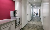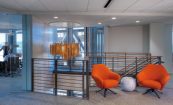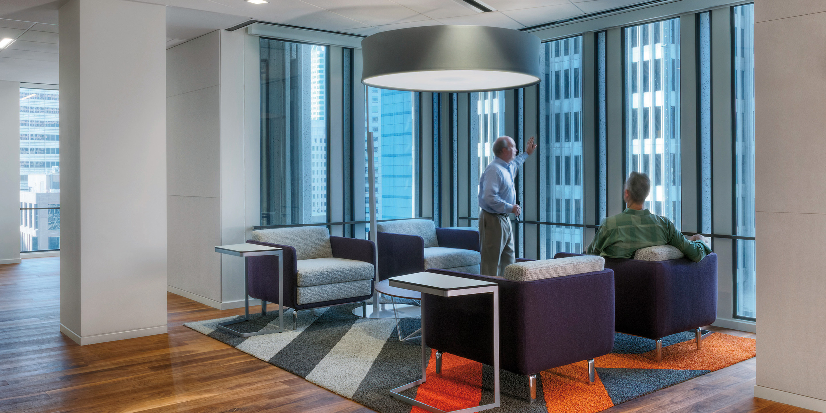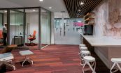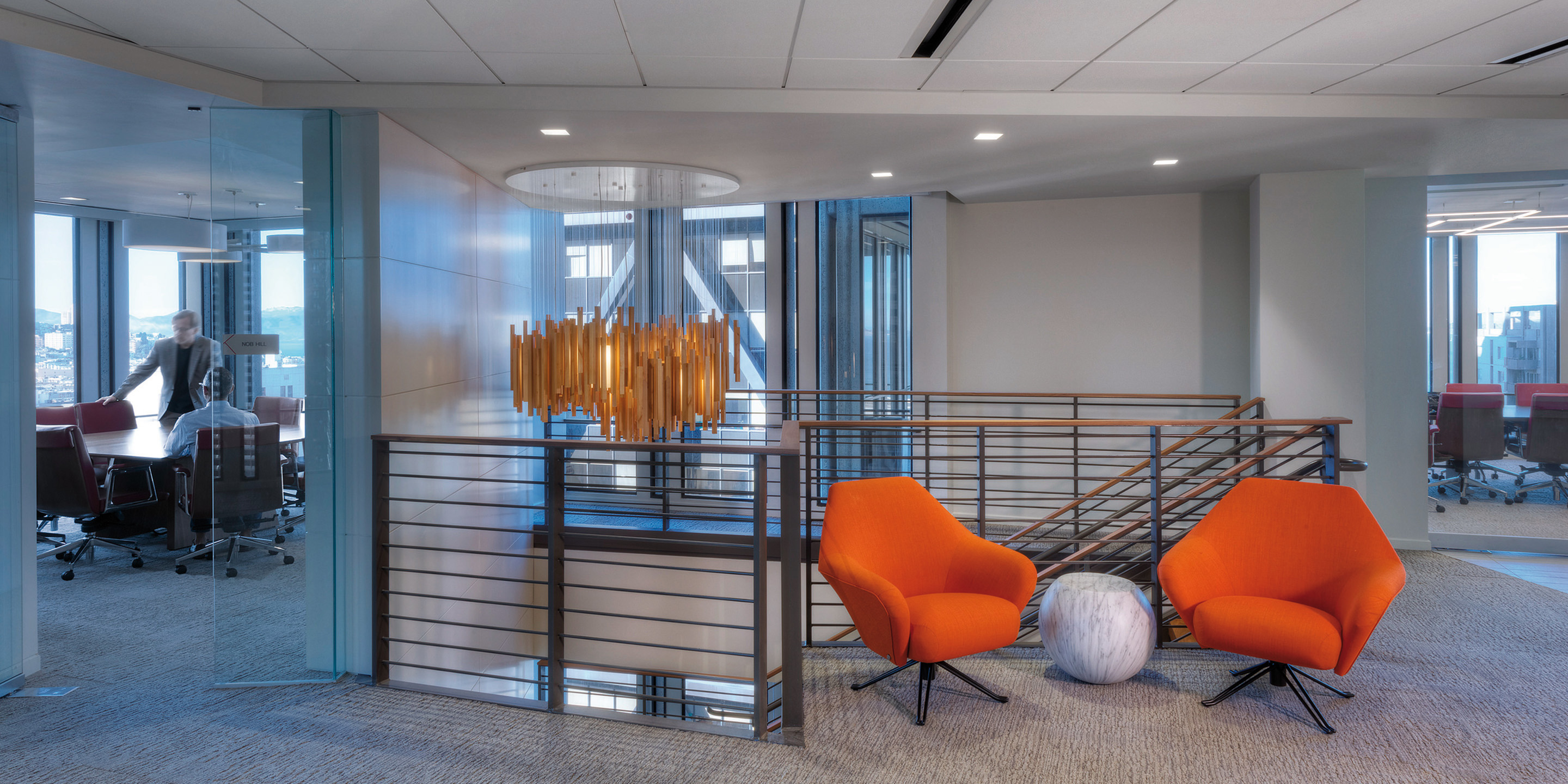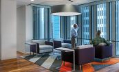 Kilpatrick Townsend Stockton, LLP has engaged Cooper Carry to design the office of the future for this forward-thinking law firm. While gaining space efficiency is a big driver, the team is keeping focus on design concepts that will provide a comfortable and functional workplace for the attorneys and staff to help them transition to a new way of working. Second place workspaces take on a work café atmosphere instead of an informal gaming area. Significant hotelling spaces are incorporated for visiting attorneys and staff so that they are remotely working in a large area that is comfortable and has many amenities, including collaboration areas and rooms. This conversion is taking place with their large library space. Offices for the attorneys are design to be one size, along the exterior wall, and incorporate glass for higher transparency as well as allow the interior space to experience daylight and views. The traditional double-loaded corridor has been broken down to include an office landscape of glass meeting rooms, open work table/ print stations, and semi-private and open workstations. These spaces work on a flexible module so that at any time in the future, they can be converted to another use easily. The style and aesthetic for these spaces remain true to a professional atmosphere, but incorporate aspects such as color and unique finishes or furnishings to give them a modern touch. The focus on providing spaces that support the function and privacy of the firm, as well as appropriate, comfortable finish and design is allowing the space to compress to 550sf per attorney without painful compromise.