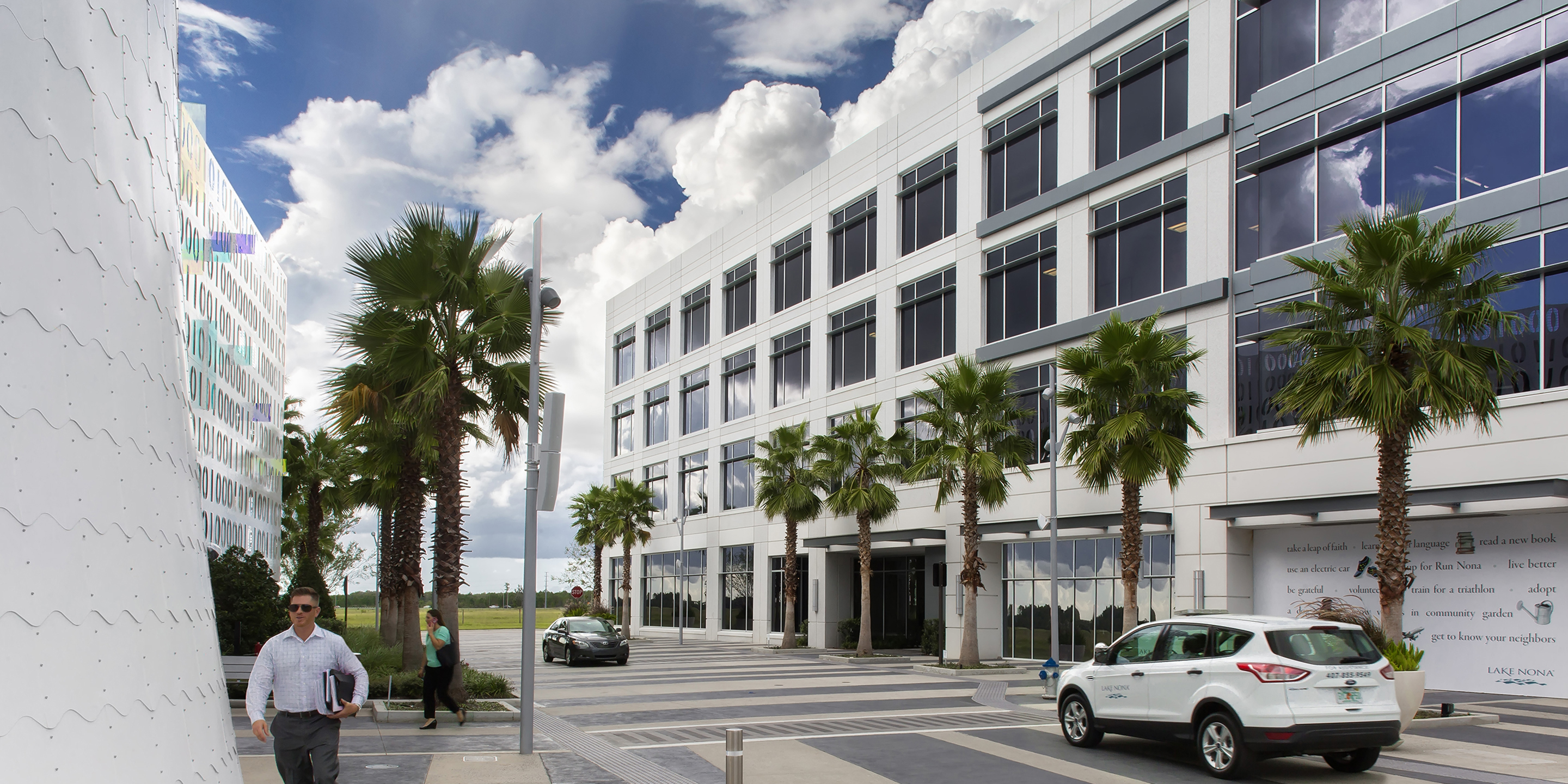 The Lake Nona Town Center is a greenfield mixed-use development near the Orlando International Airport in Florida. Lake Nona is comprised of nearly 7,000 acres of development centered around the concept of Medical City. Lake Nona Medical City features multiple institutions including the Orlando VA Medical Center, Nemours Children’s Hospital and UCF College of Medicine and Health Sciences campus.