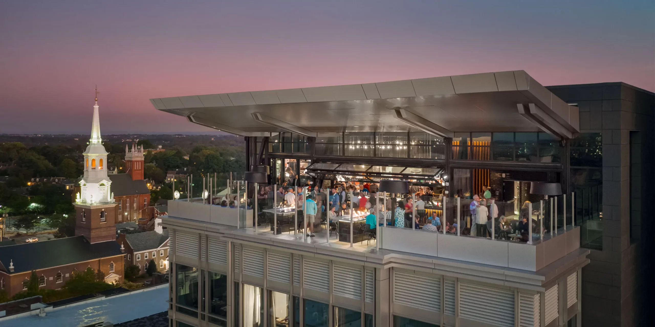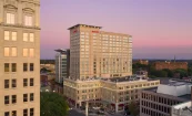 This project has garnered multiple awards as an example of creative adaptive reuse of the landmark site while also enhancing the historic and walkable character of the city. Several years later, we were asked to address a shortage of hotel rooms needed to accommodate the convention center, which is part of the city’s robust tourism sector. The 12-story addition provided an additional 110 rooms and a rooftop bar.