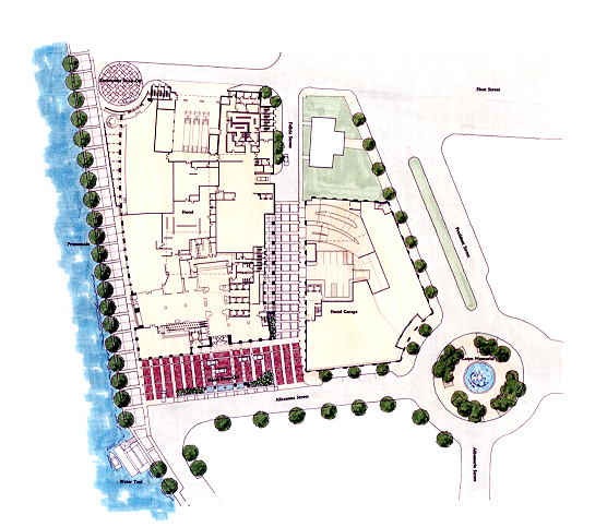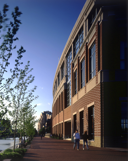The 32-story Marriott Baltimore Waterfront Hotel is located on a spectacular site in Inner Harbor East. The 631,117-square-foot convention hotel provides 750 guestrooms, two large ballrooms, restaurants, entertainment outlets and an internal parking facility for 700 cars.