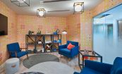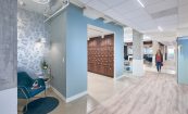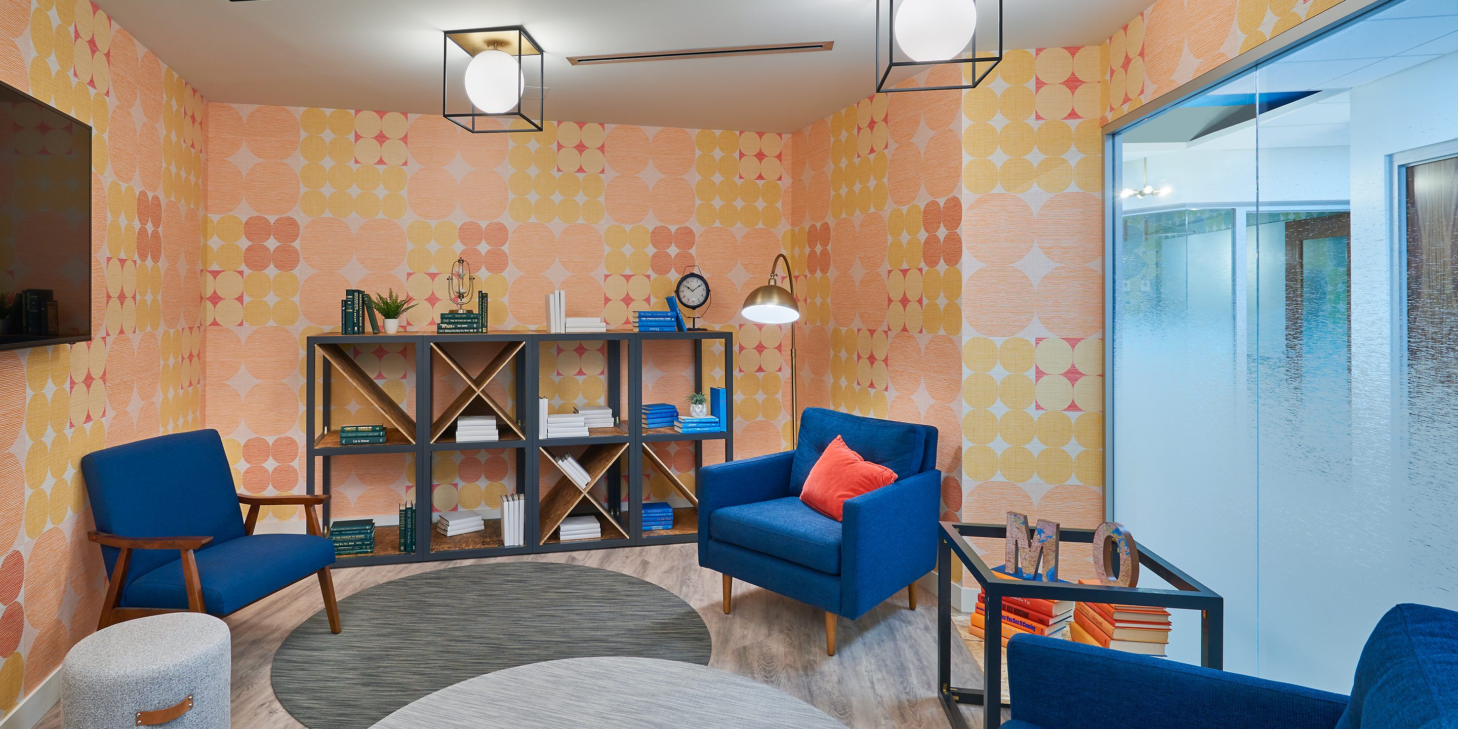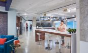 The Metro Offices floor plan is organized with a high density of various-sized offices and open workspaces for individuals and small groups, offering plenty of options to suit members' work styles. The plan was developed with the user experience in mind, and encourages Metro Offices' members to experience the space holistically, rather than stay limited to their private work area. Private offices wrap the perimeter, giving way to a large expanse of shared community, collaboration, and drop-in work environments on the interior. The story of the space is told by a generous corridor that guides guests past the semi-private glass wall offices to the areas of higher activity within the shared community space that was modeled after a concierge hotel lounge, the interior collaboration rooms that blend work and play, and the quiet retreat areas designed to surprise.