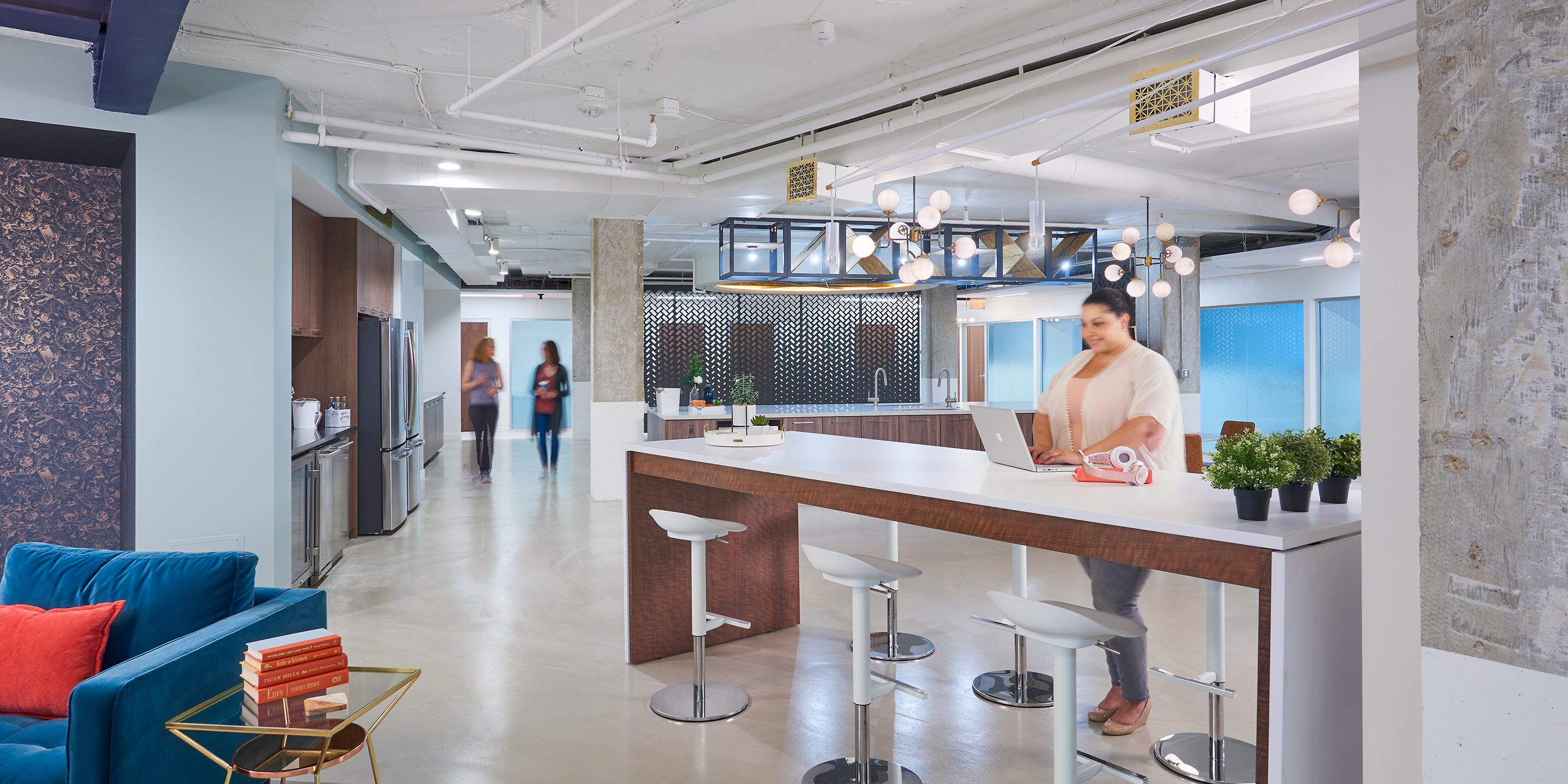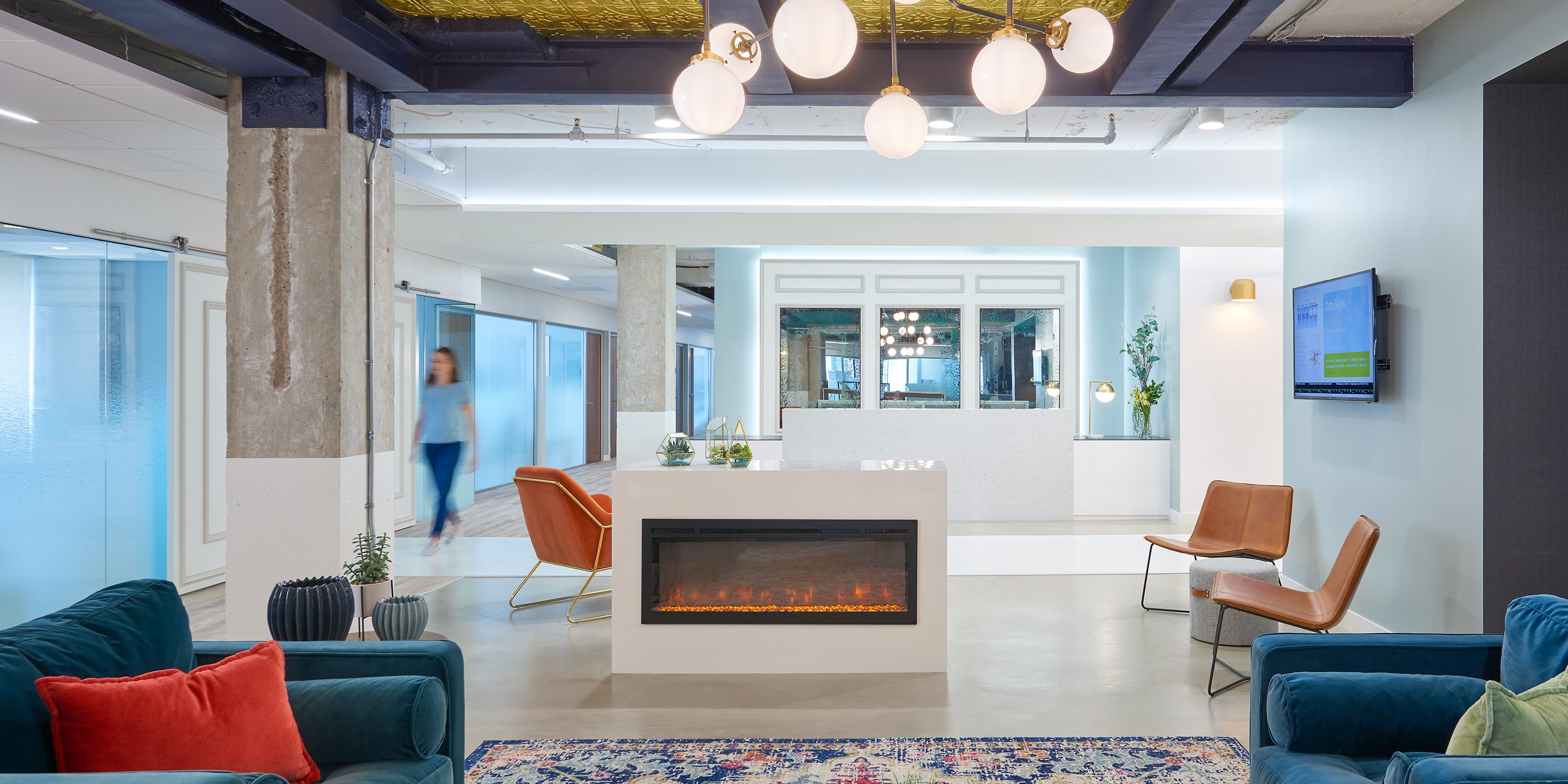 Metro Offices, a woman-owned company in operation for 25 years, was ranked the fourth largest co-working space in greater Washington DC by the Washington Business Journal in 2018. They have nine offices throughout the DC metro area, and their newest space was completed in May 2018. This new Dupont Circle office is located on the 7th floor of 1250 Connecticut Avenue, NW, and was designed as a modern update to their previous suite on the 2nd floor. The design of their new space reflects Metro Offices' innovative and multifaceted approach to flexible workplace solutions.