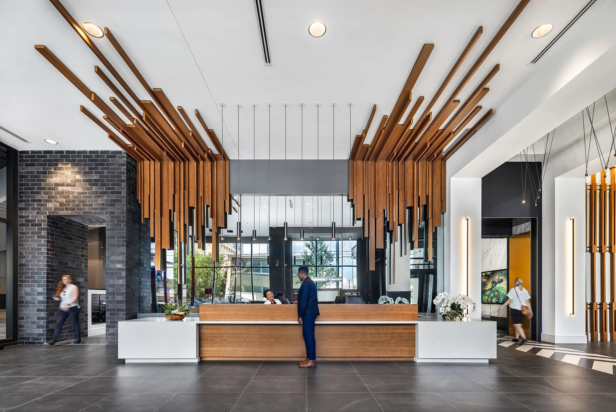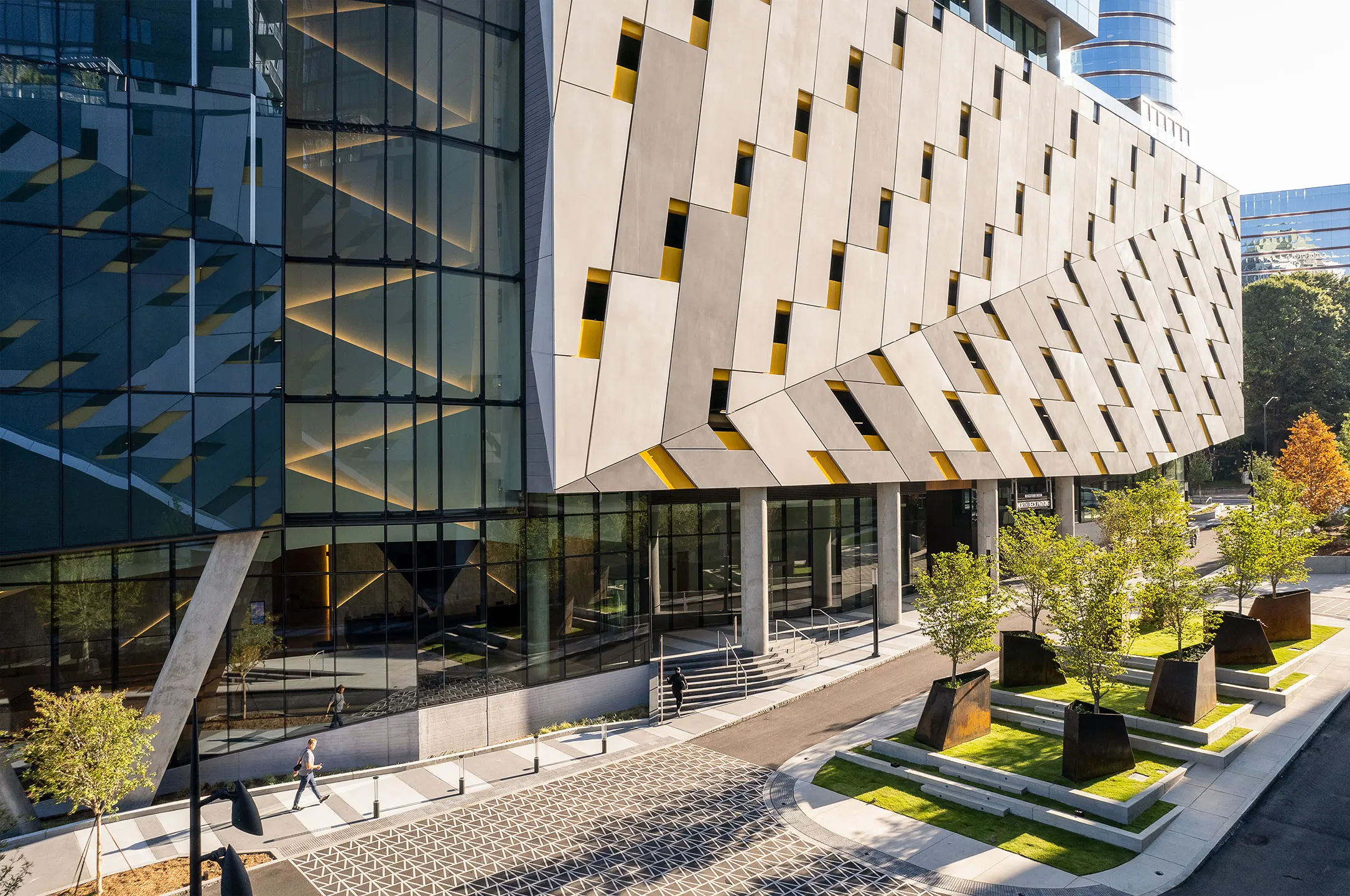 To embrace the arts-focused community, we commissioned a local artist to create a mural. The multidimensional design of faces graces several sides of the building and inspired several elements of the building’s design, including lighting for the site and the parking deck facade.