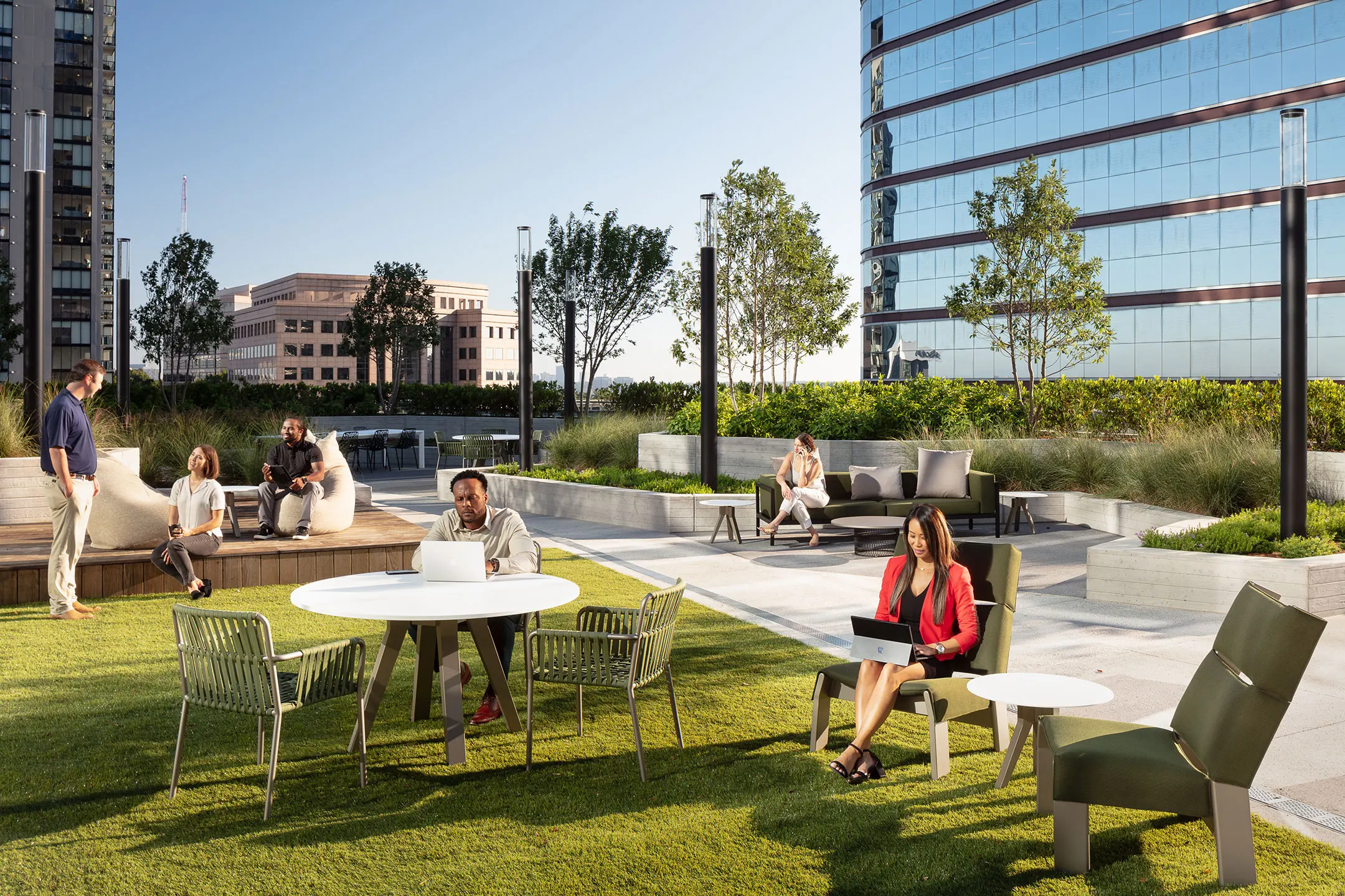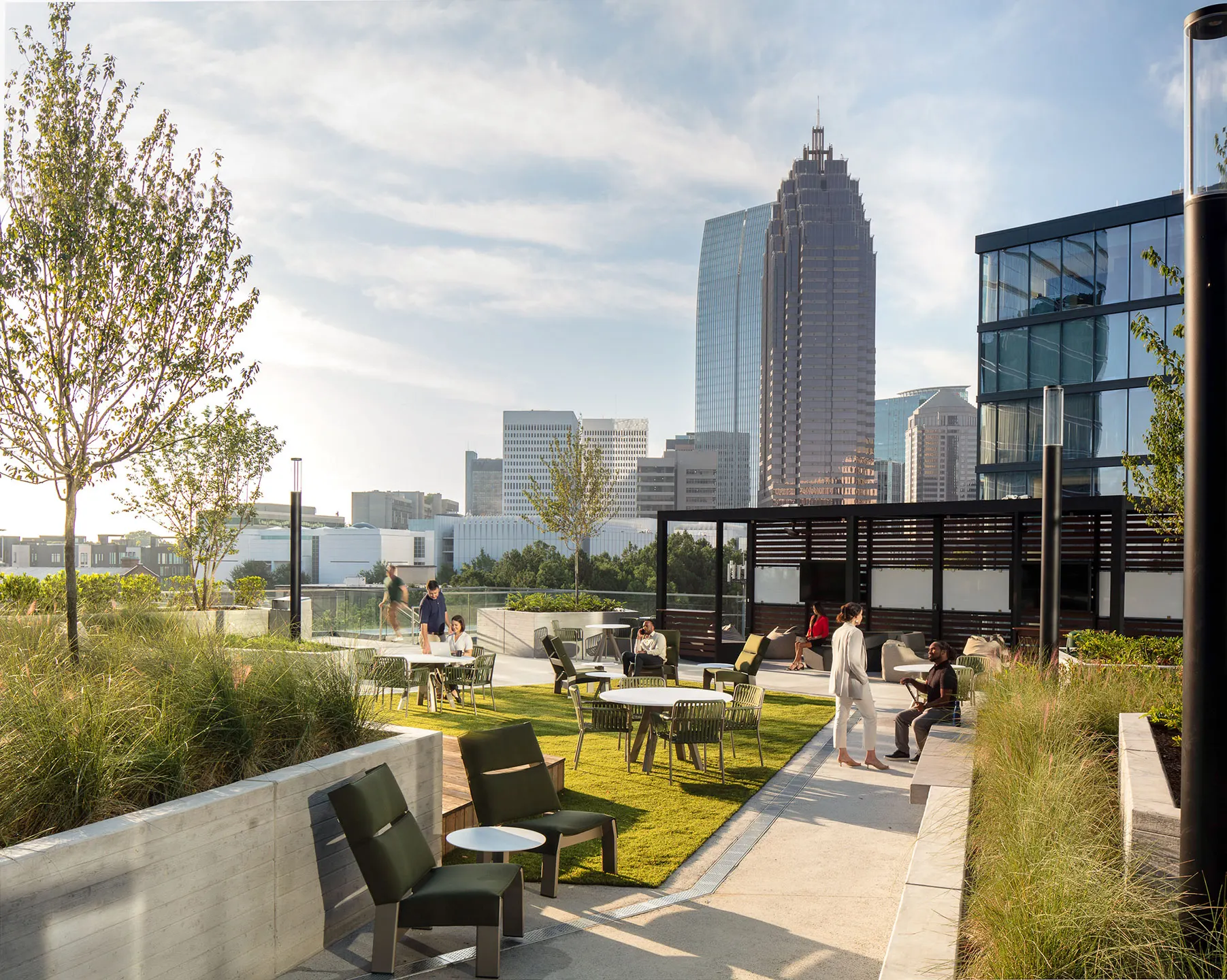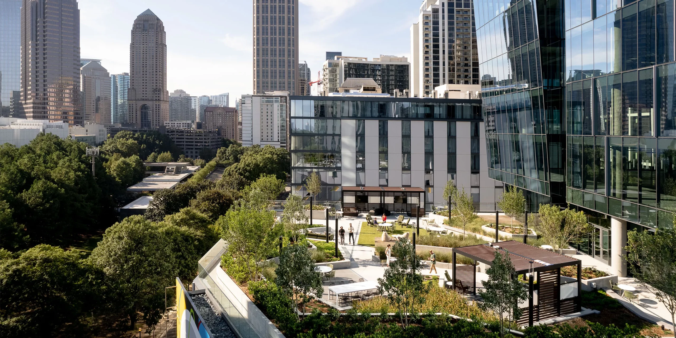 People can find new pathways that connect from the site to the surrounding community. A short walk from Midtown Union, they have easy access to the MARTA Arts Center rail station, the 17th Street bridge to Atlantic Station, and the dynamic tech corridor. Ample greenspace is woven throughout — at the street level, between the buildings, and on the elevated landscape decks.
