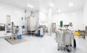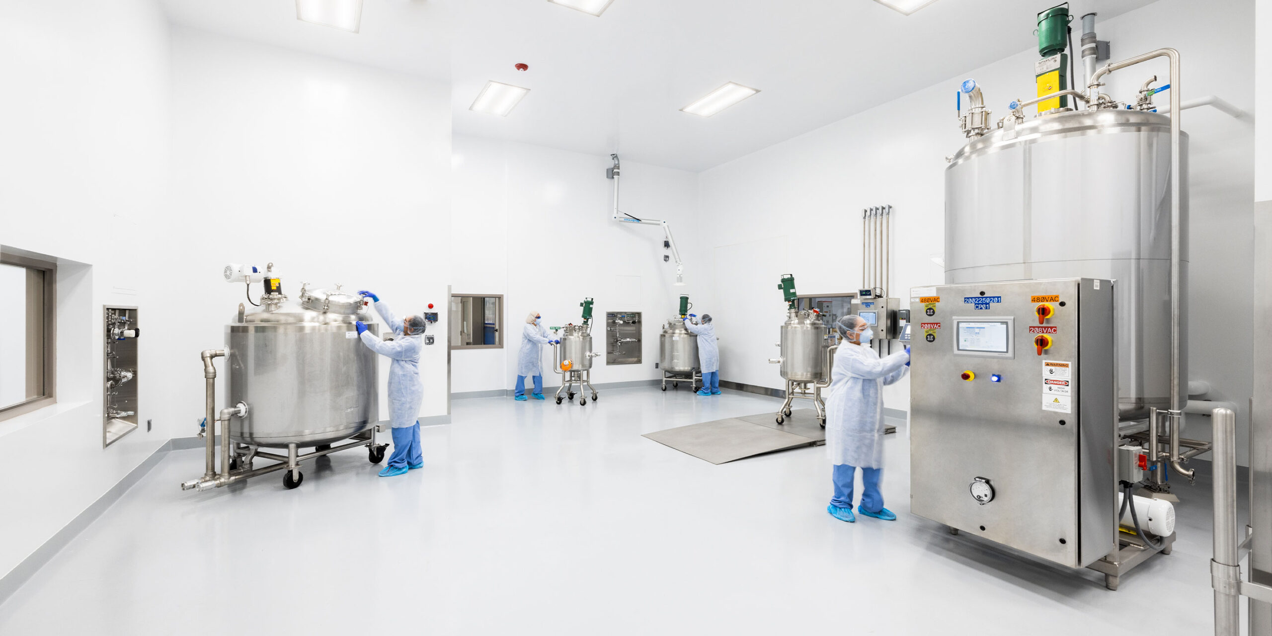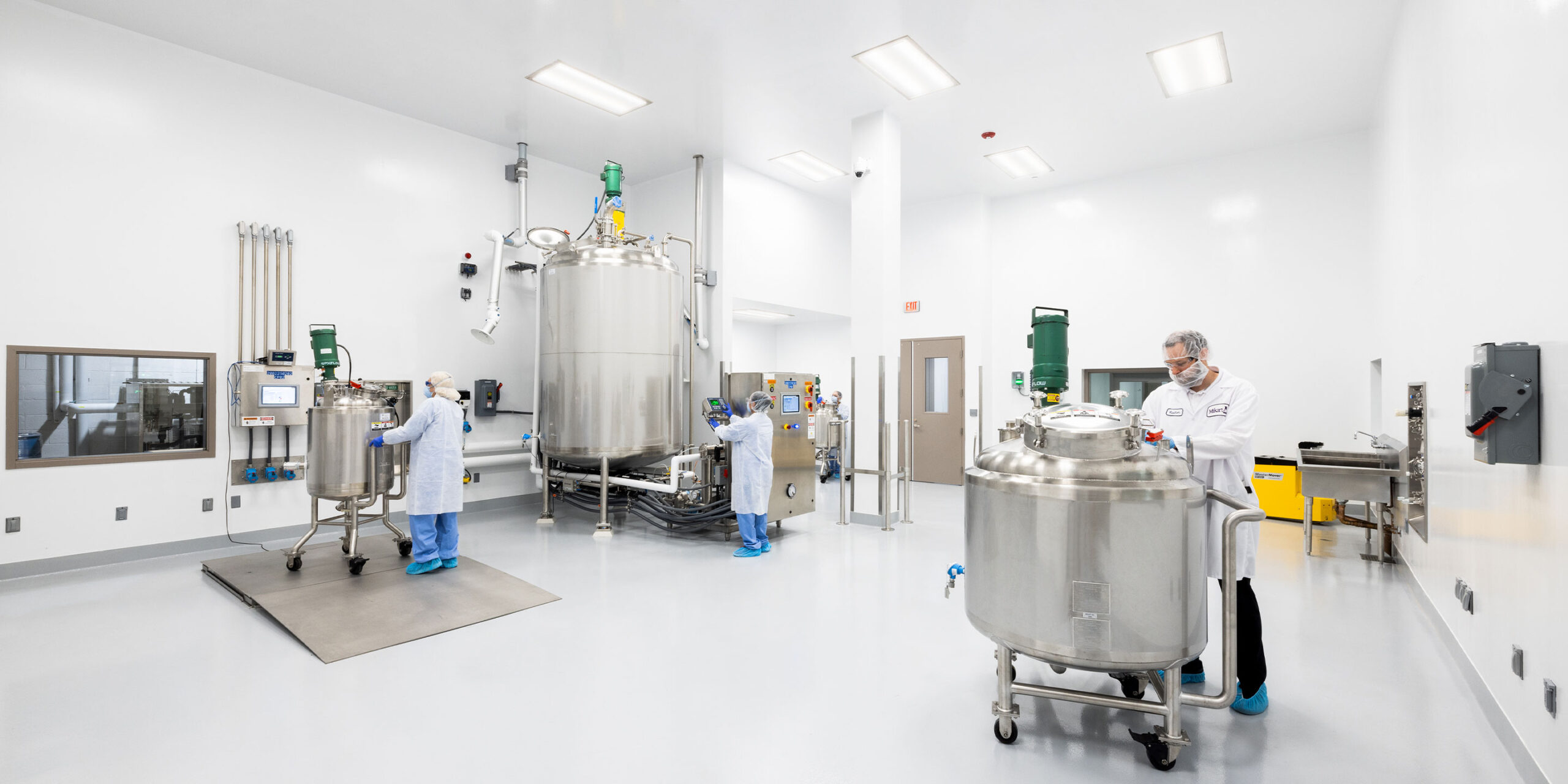 The cleanroom is designed to receive a 4000-liter, stainless-steel mixing tank skid for the manufacturing of suspensions with the ability to add an additional 4000-liter tank at a later stage through a large removable wall panel. Two 1000-liter tanks and a 400-liter tank give Mikart the ability to produce suspensions.