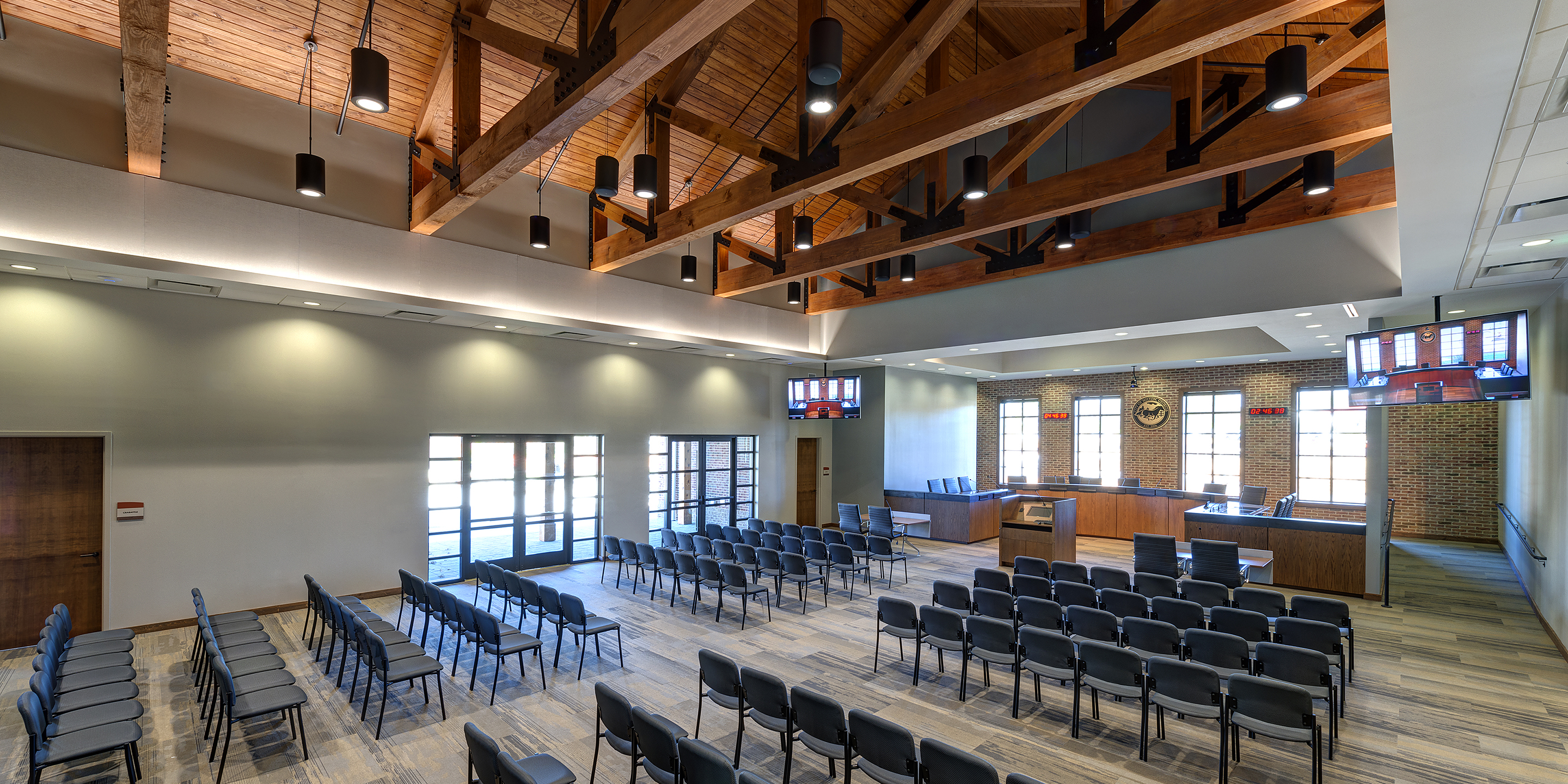 Cooper Carry and the City of Milton developed a new City Hall building in the historic Crabapple area of suburban Atlanta. The facility consists of a two-story administration building that houses the administrative functions of the City Hall, an attached single-story building that serves as the council chambers, and a detached single-story building that operates as a community center. The city hall's two wings -- administrative and legislative -- were designed to fit with the design of the Milton County Courthouse, and the community center was modeled off the old farmhouses of the area, and features red brick and barn wood. The building integrates numerous new technologies, and green building practices included energy efficient air conditioning systems, low-VOC paint, LED lighting and more to keep the cost of ownership low.