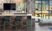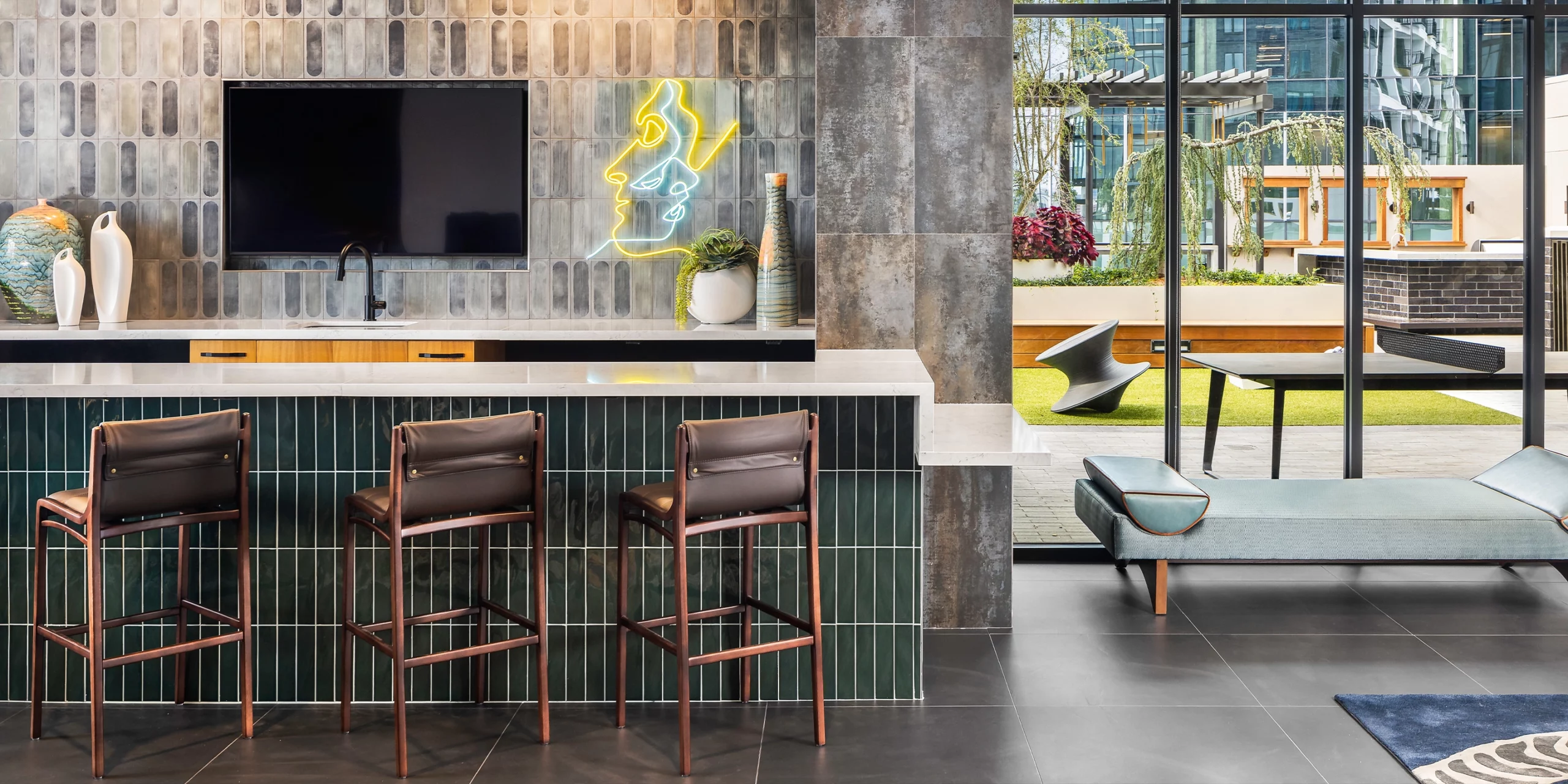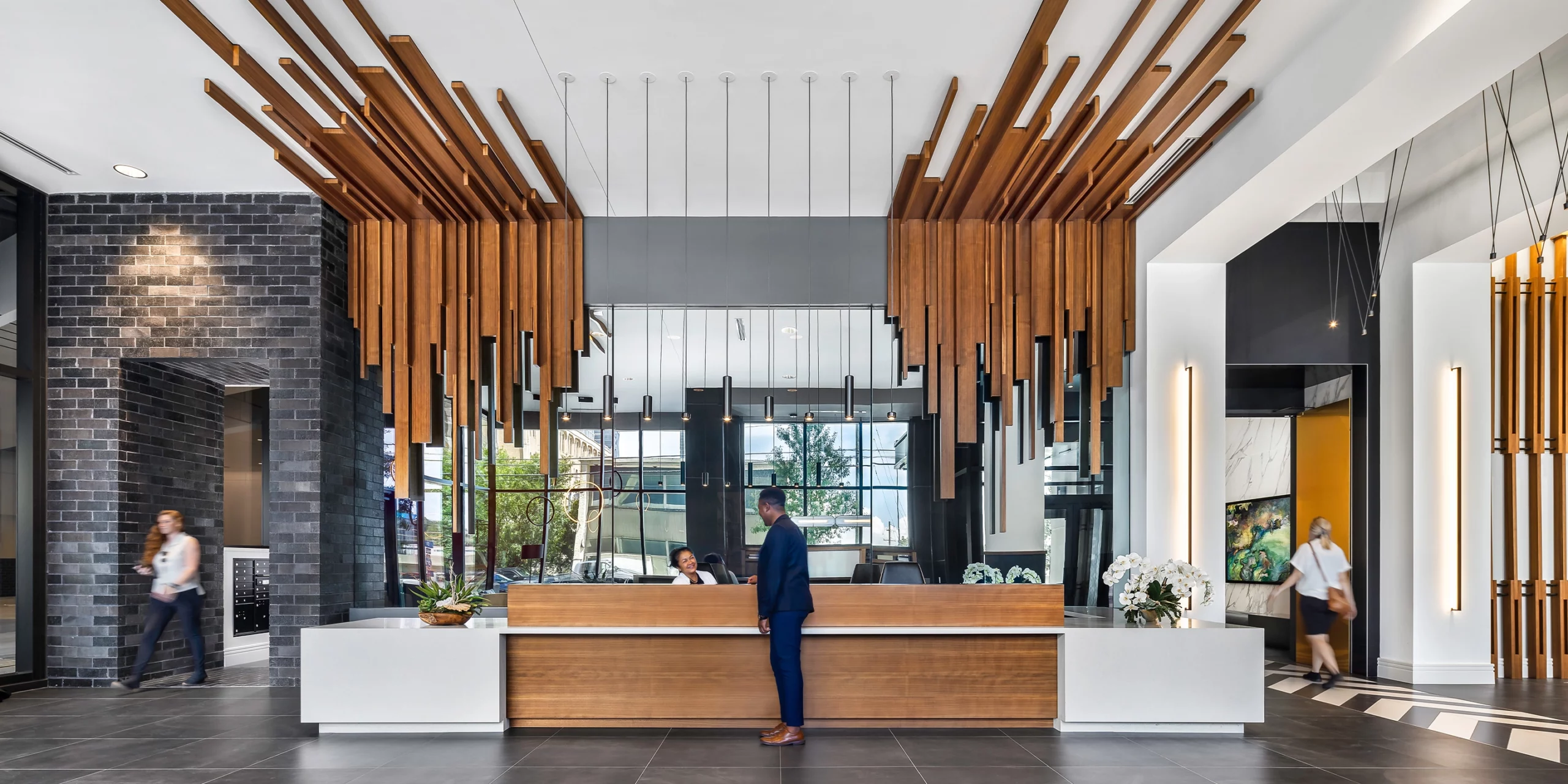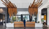 Mira offers plentiful amenities, like an outdoor amenity deck with a pool, seating, and grilling stations as well as a pool-side bar and lounge. There is also a pet lawn and spa, fitness center, and co-working spaces. For the interior design, we opted to focus on the art of music, creating a “Visual Symphony” that parallels the principles of design and music, a concept unique to the area. We took inspiration from the inner workings of instruments, such as in the double-height, wood-slatted wall, reminiscent of the inside of a piano; ceiling features that mimic guitar strings; and light fixtures in the form of symbols.