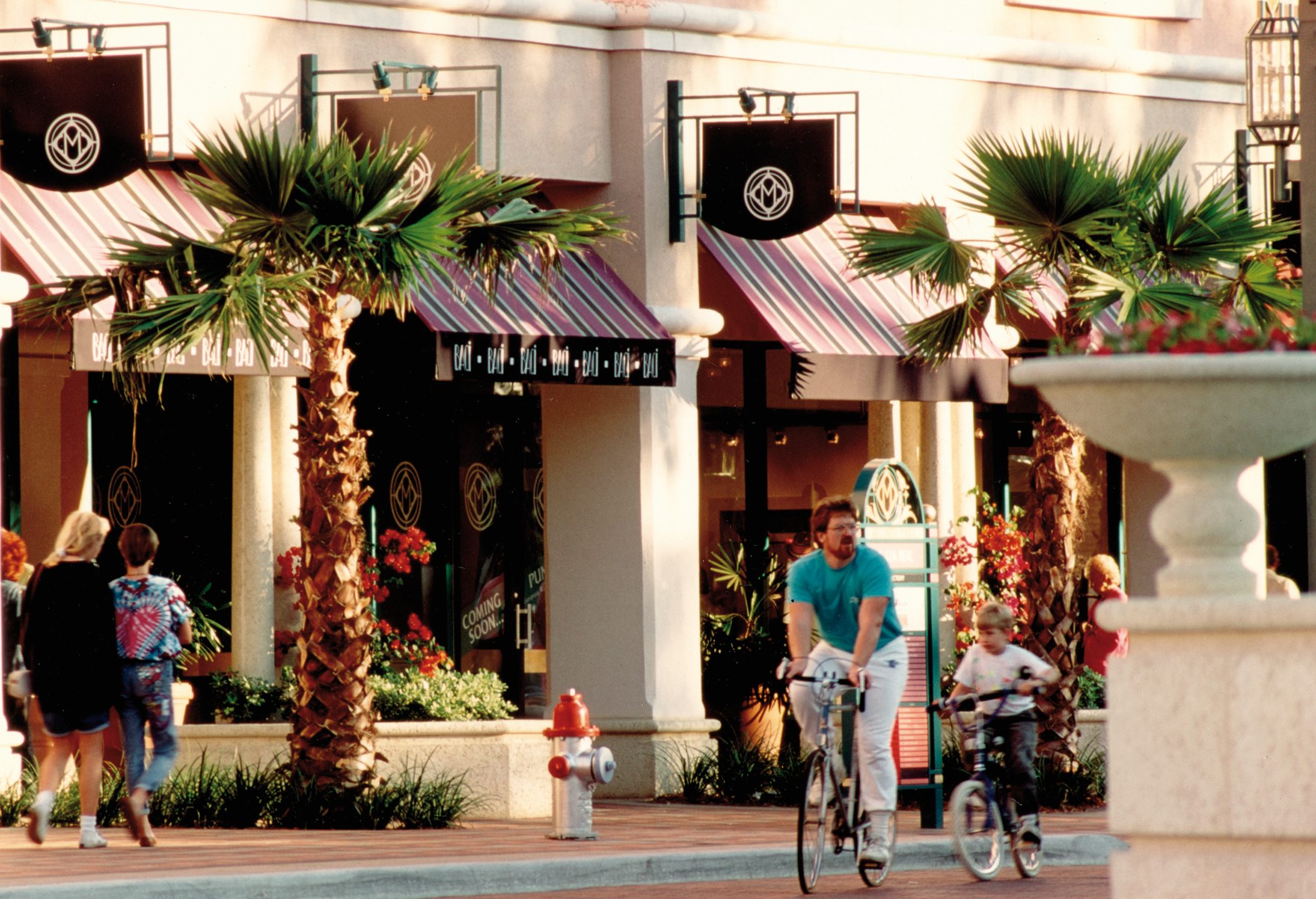 Mizner Park shines as an award winning mixed use development in Boca Raton, Florida. It occupies the site of what was once a failed 36 acre retail mall constructed in the 1970s. Through a clever and committed public-private partnership between Crocker Partners and the Boca Raton Community Redevelopment Agency (CRA), Mizner Park was envisioned as a way to establish a “downtown” for the city of Boca Raton. Cited by many to be the first of its kind, the private-public partnership created a mechanism for financing and maintaining the development as well as allowing for public amenities and community spaces. Centered around the grand outdoor “Plaza Real” are numerous mixed-use buildings that integrate office and retail space, apartments, townhouses, cinemas, restaurants, museums, and a Center for the Arts complex. Parking for over 2,500 vehicles is accessible along the street and in adjacent structures. In the three decades since its opening, Mizner Park has become a case study for large-scale, mixed-use re-development in its concept, financing and design and has established Boca Raton as a Florida sustainable city.