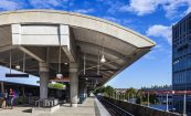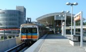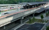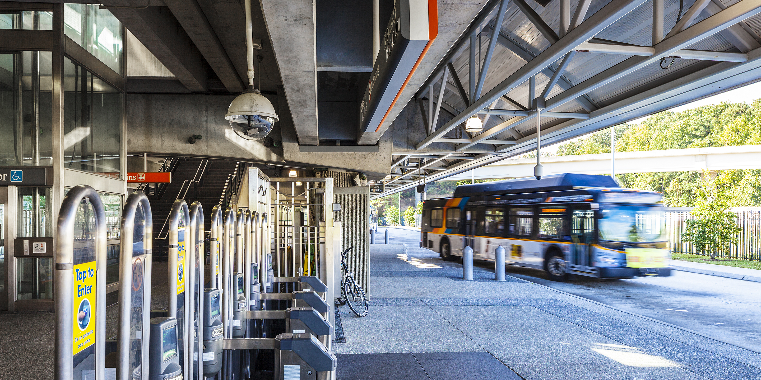 The North Springs MARTA Station is an aerial platform station located in the northern suburbs of Atlanta. The design and palette of materials selected respond to the needs of the system for a simple, easily maintained structure. The structural elements are textured concrete, and vertical wall surfaces are a structural clay masonry in a contrasting color that identifies vertical circulation. The gently curved metal canopy over the platform is supported by slender conical columns which provide a brightly colored counterpoint to the more massive concrete track structure below. The station is accessible from the adjacent expressway as well as the surrounding neighborhood. Parking for 2,000 cars is provided.