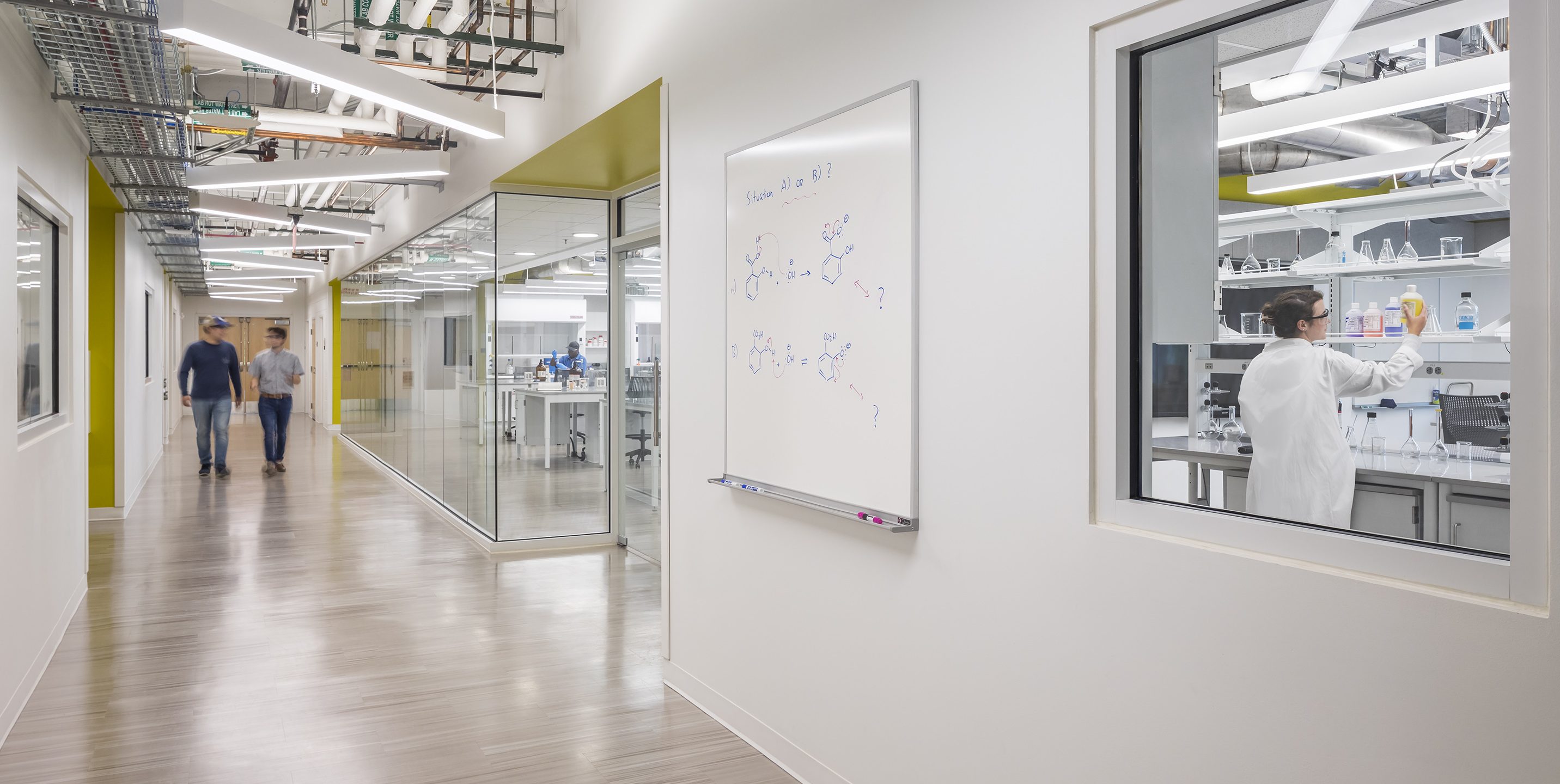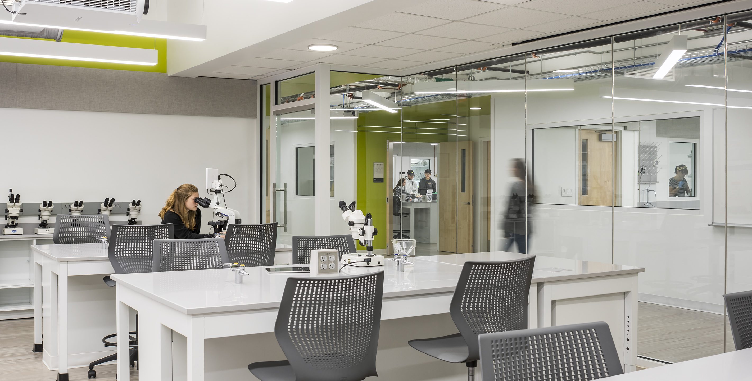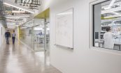 The renovation includes new science laboratories and classrooms as well as faculty offices and spaces for interactive study across disciplines. The laboratories are designed to be flexible and offer both research and academic capabilities to meet the needs of the campus. The center also provides spaces for student study, collaboration areas, and community events. The project incorporated sustainability features such as natural light to reduce energy use, enhanced building systems, and connection to nature.