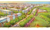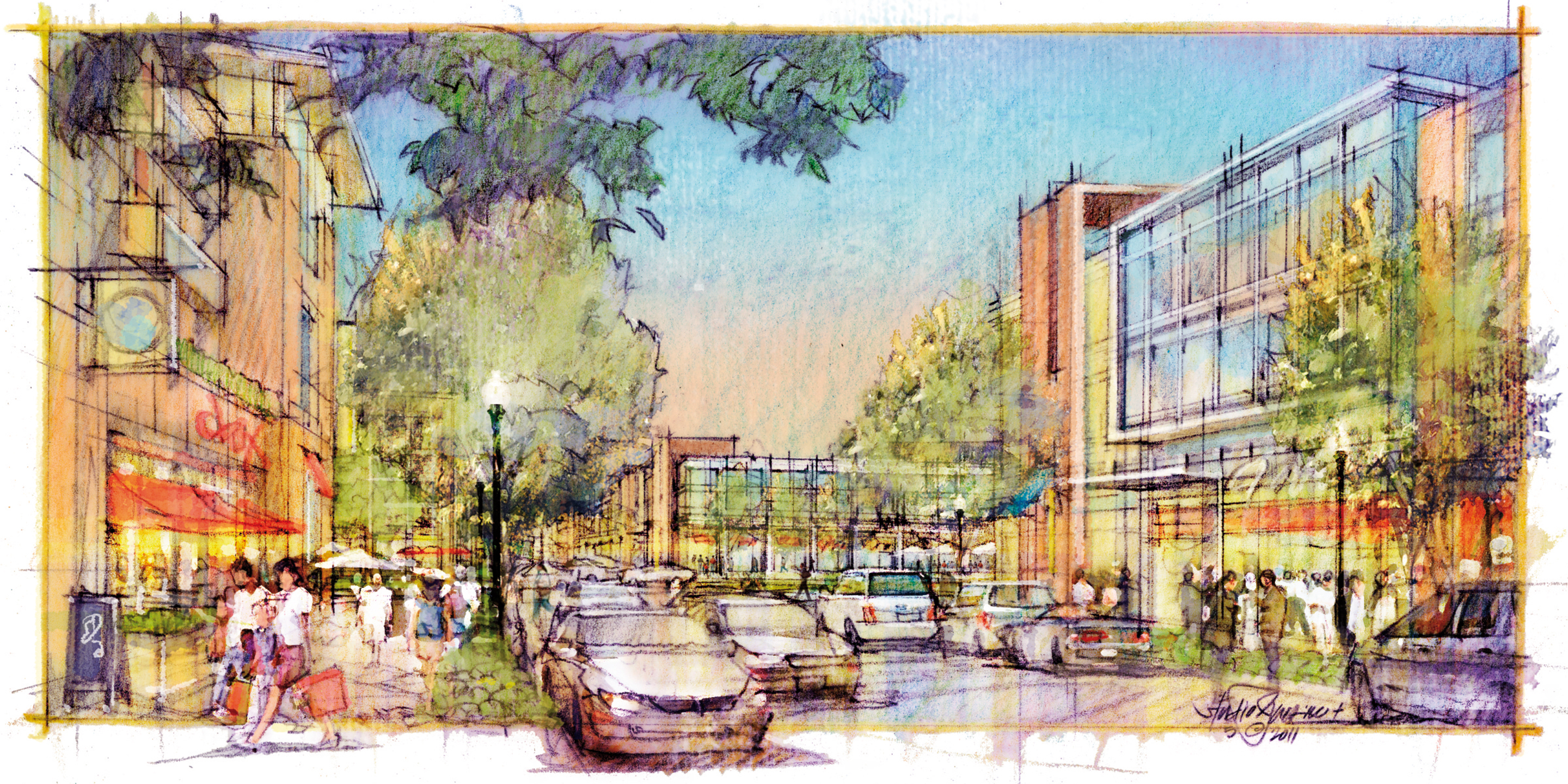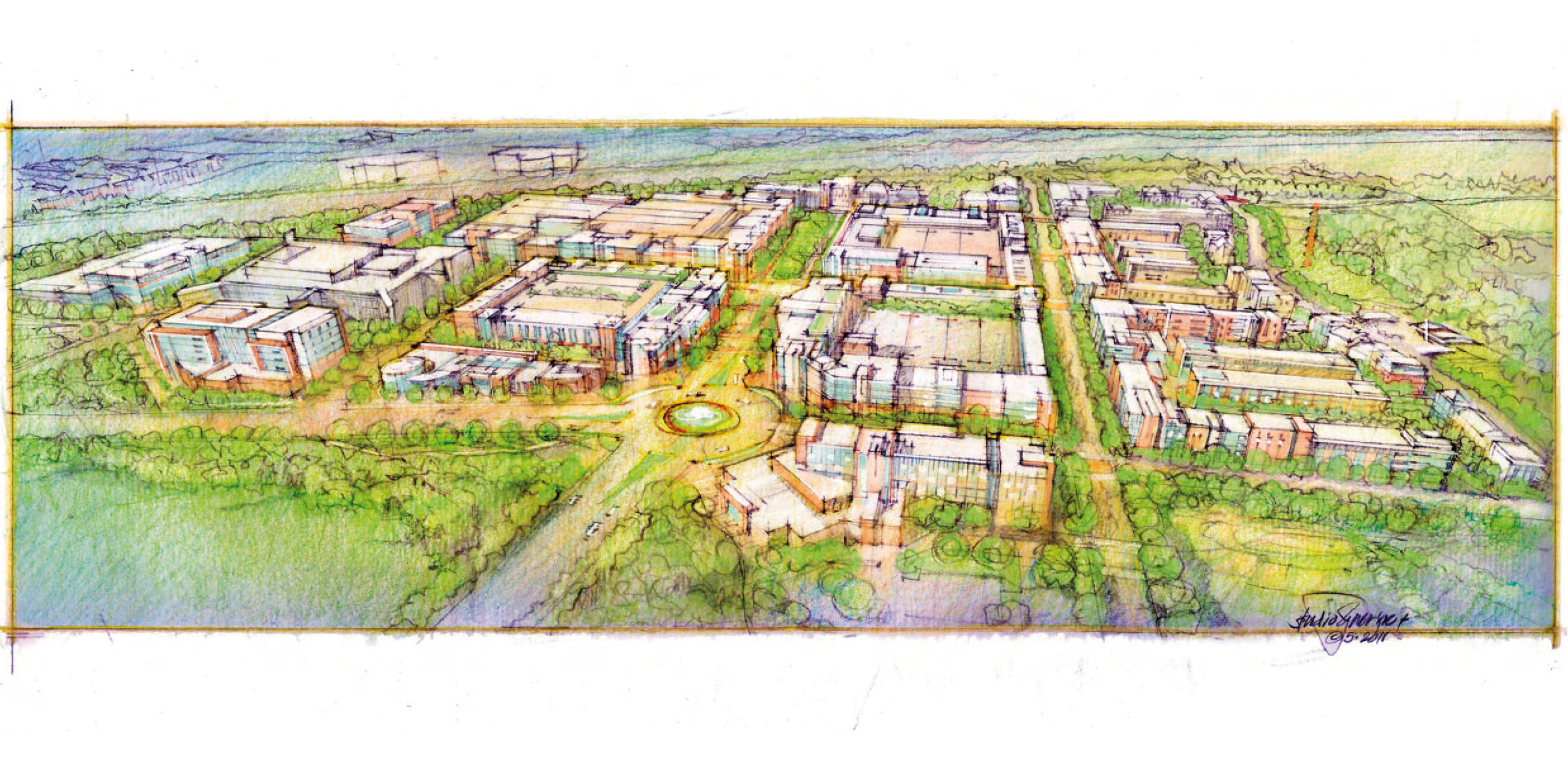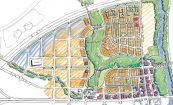 Cooper Carry was asked by Hunter Reality Partners, LLC to develop an integrated mixed-use master plan for the OCLC campus property as a critical component of the Community Vision Plan for Dublin, Ohio. The resulting plan celebrated the site’s connectivity to the historic town, the river valley and surrounding park systems, while emphasizing viability and implementation with reality based building form. As an important gateway to Historic Dublin, the existing highway interchange and Bridge Street Corridor were severely failing. Restructuring the interchange and integrating a traffic circle and grid pattern provided an excellent solution to both traffic problems and development implementation and phaseability. The new street grid also defined blocks for both pedestrian and vehicular access through and around the site and existing natural elements. This also allows more future connections as the surrounding suburban pattern re-densifies and planned bridge crossings are realized.