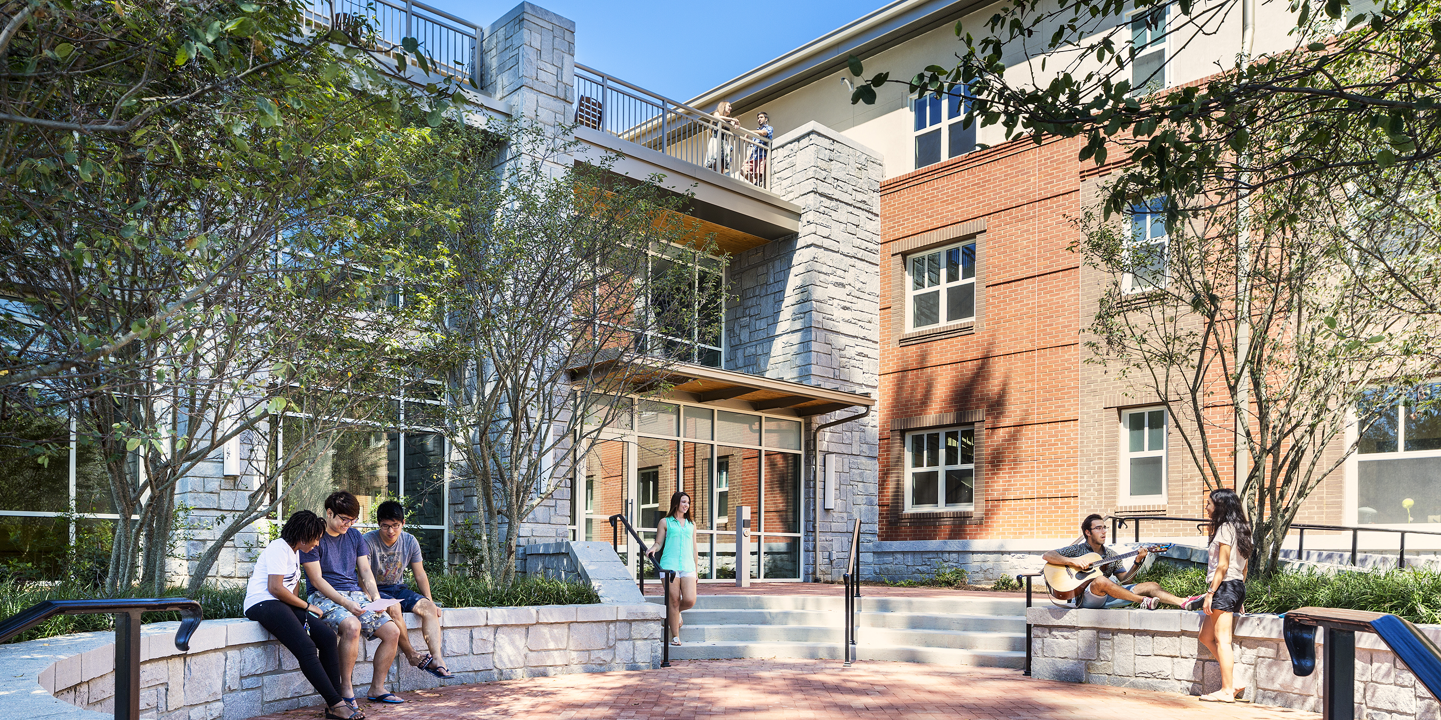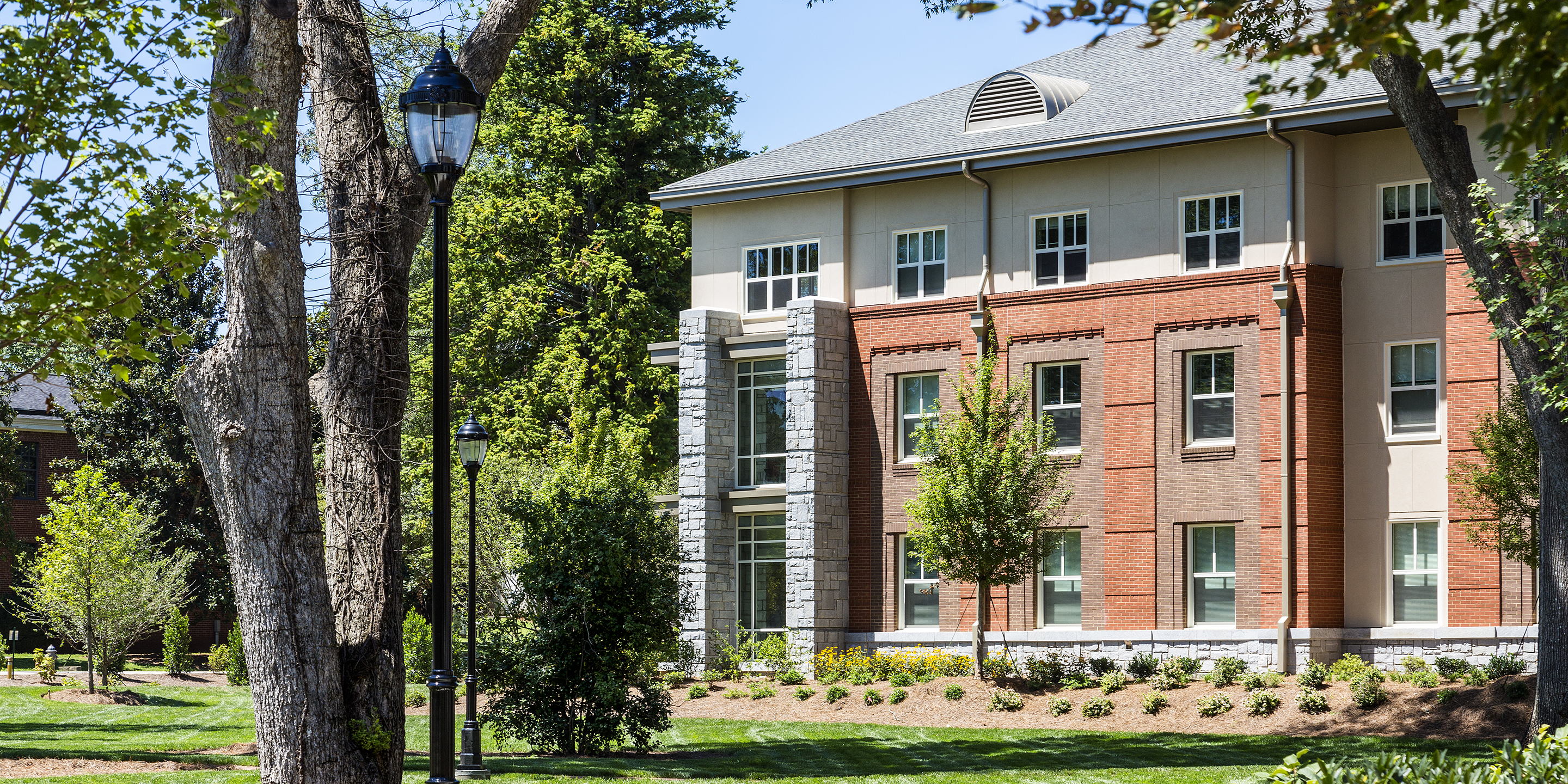 Oxford College sought to relocate student residence halls toward the east side of the campus consistent with the campus master plan. The three-story “L” shape residence hall with 106 traditional style rooms in one, two, and three-bedroom configurations offers a total of 206 total beds, plus a ground-floor staff apartment. It also provides residential units with shared restroom facilities on each wing.