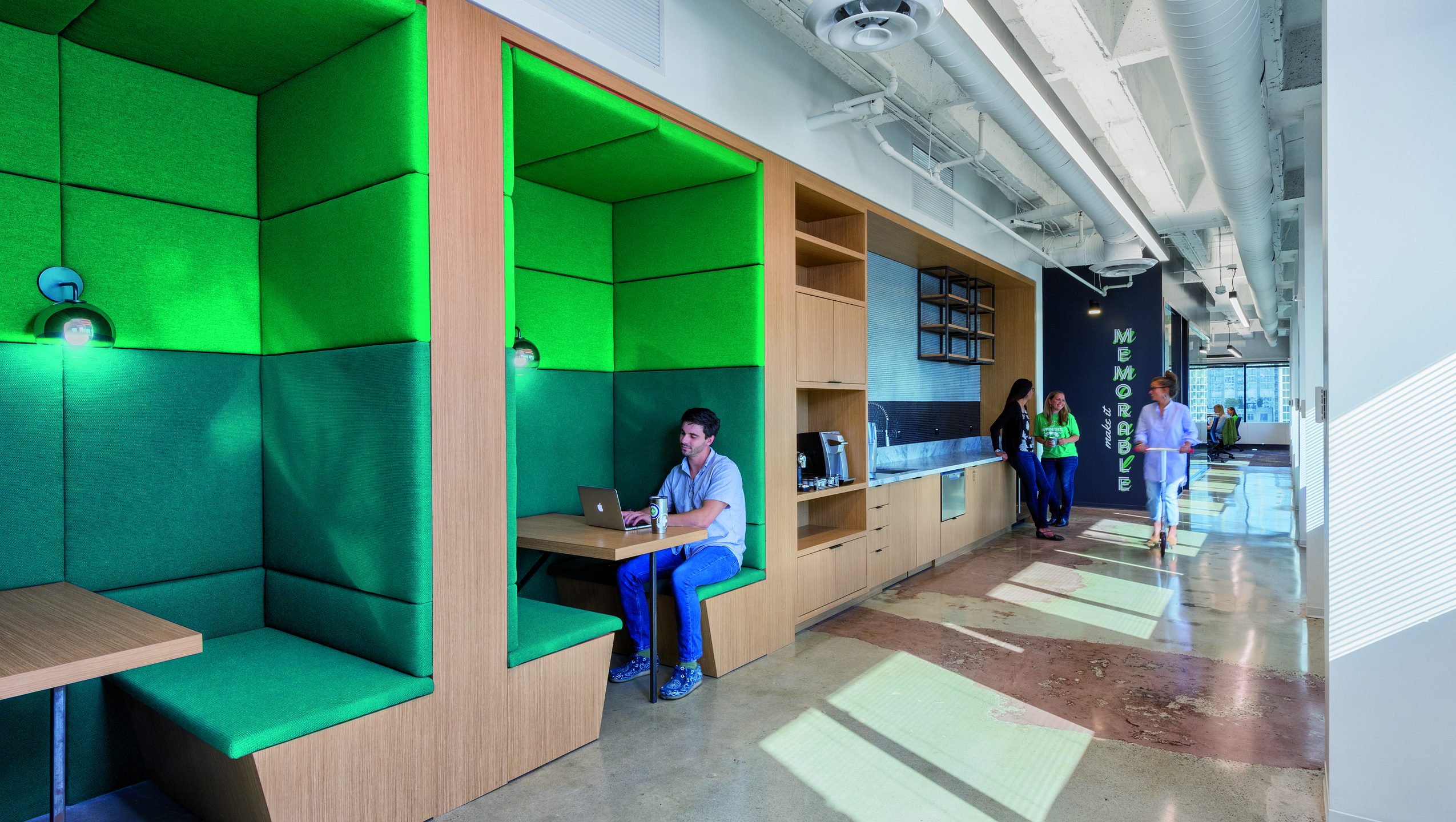 The team’s biggest challenge was incorporating design elements on a limited budget while creating a unique and dynamic space. While this project did not have LEED requirements, we incorporated environmentally conscious practices throughout the project. A few examples include:
