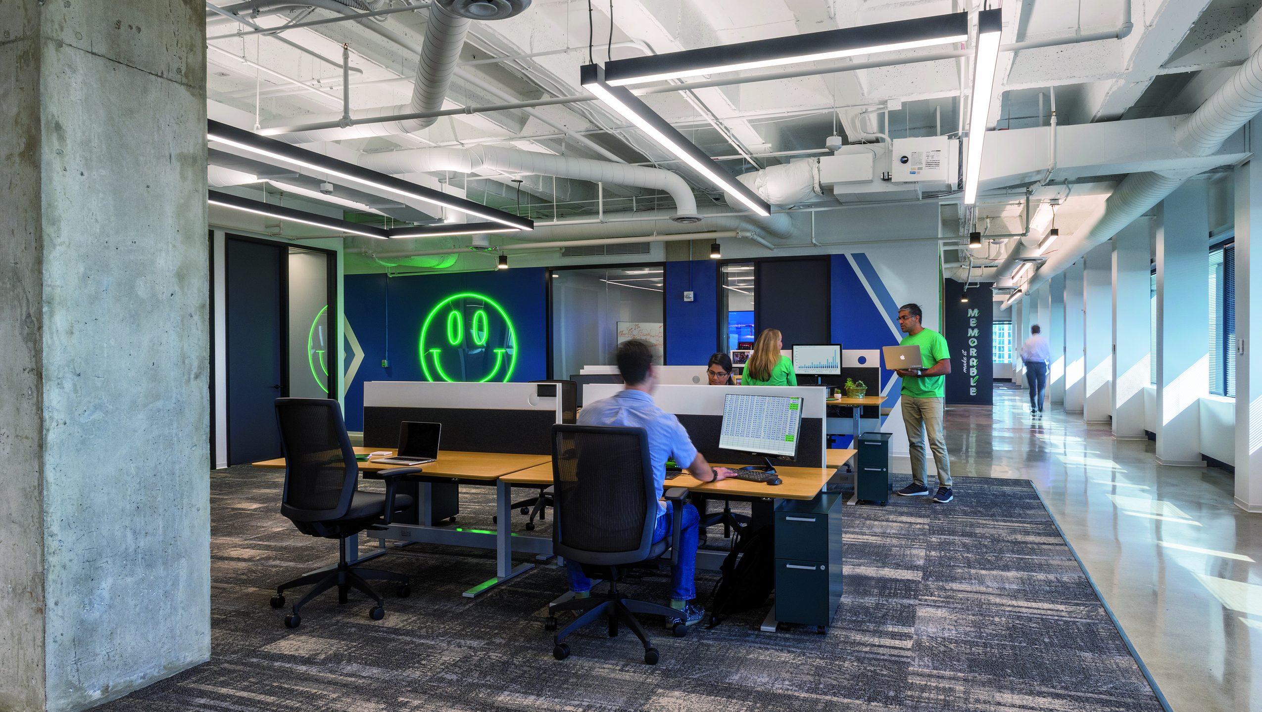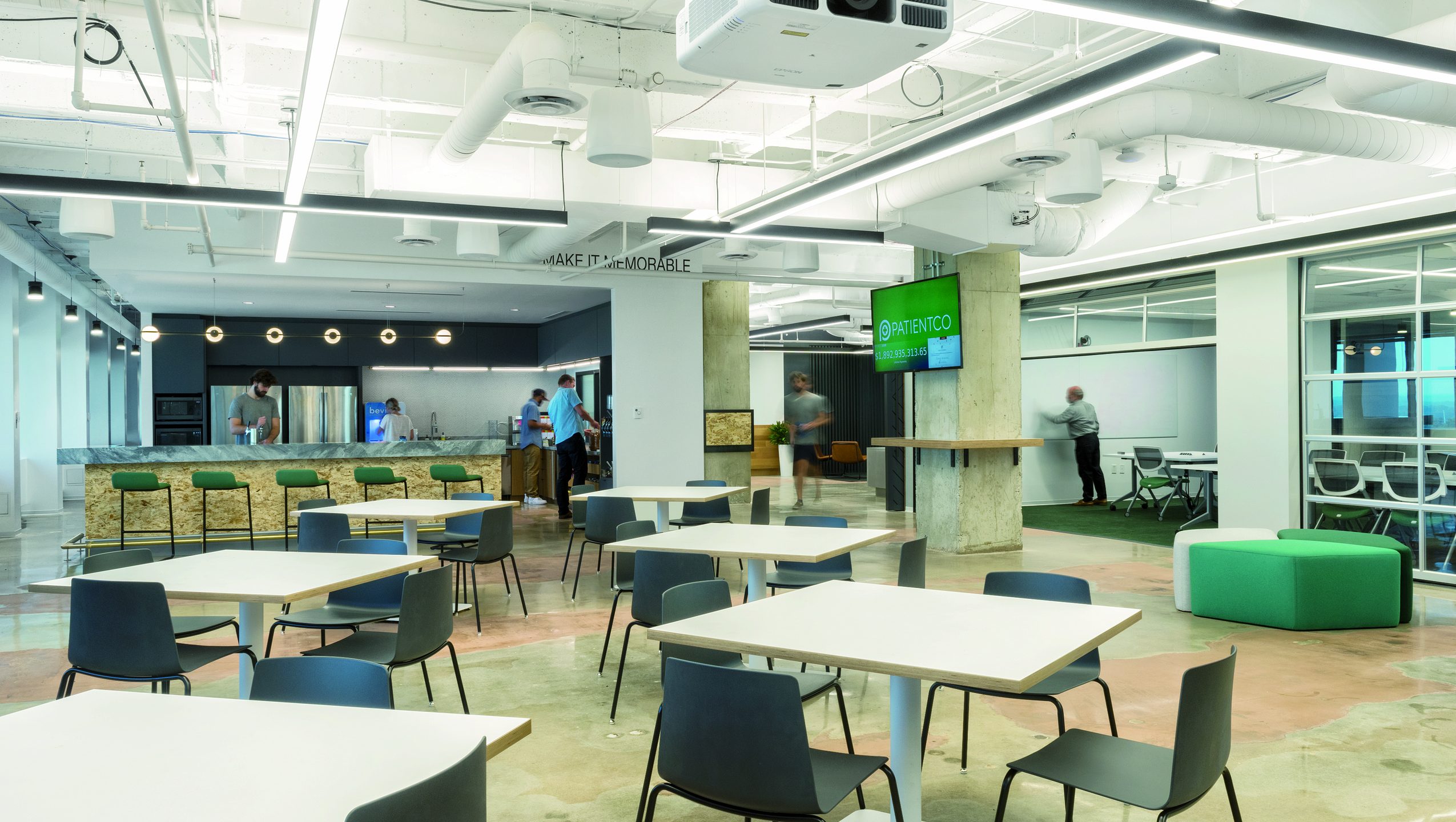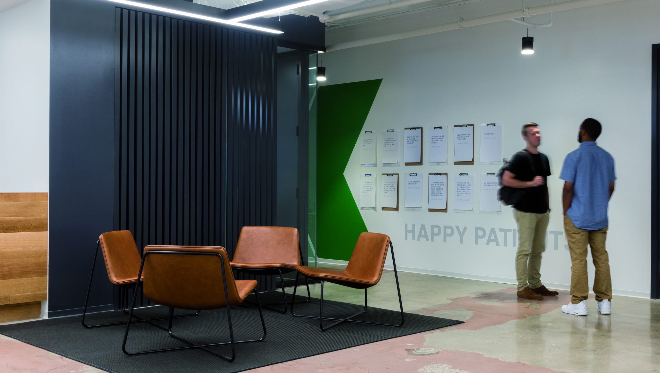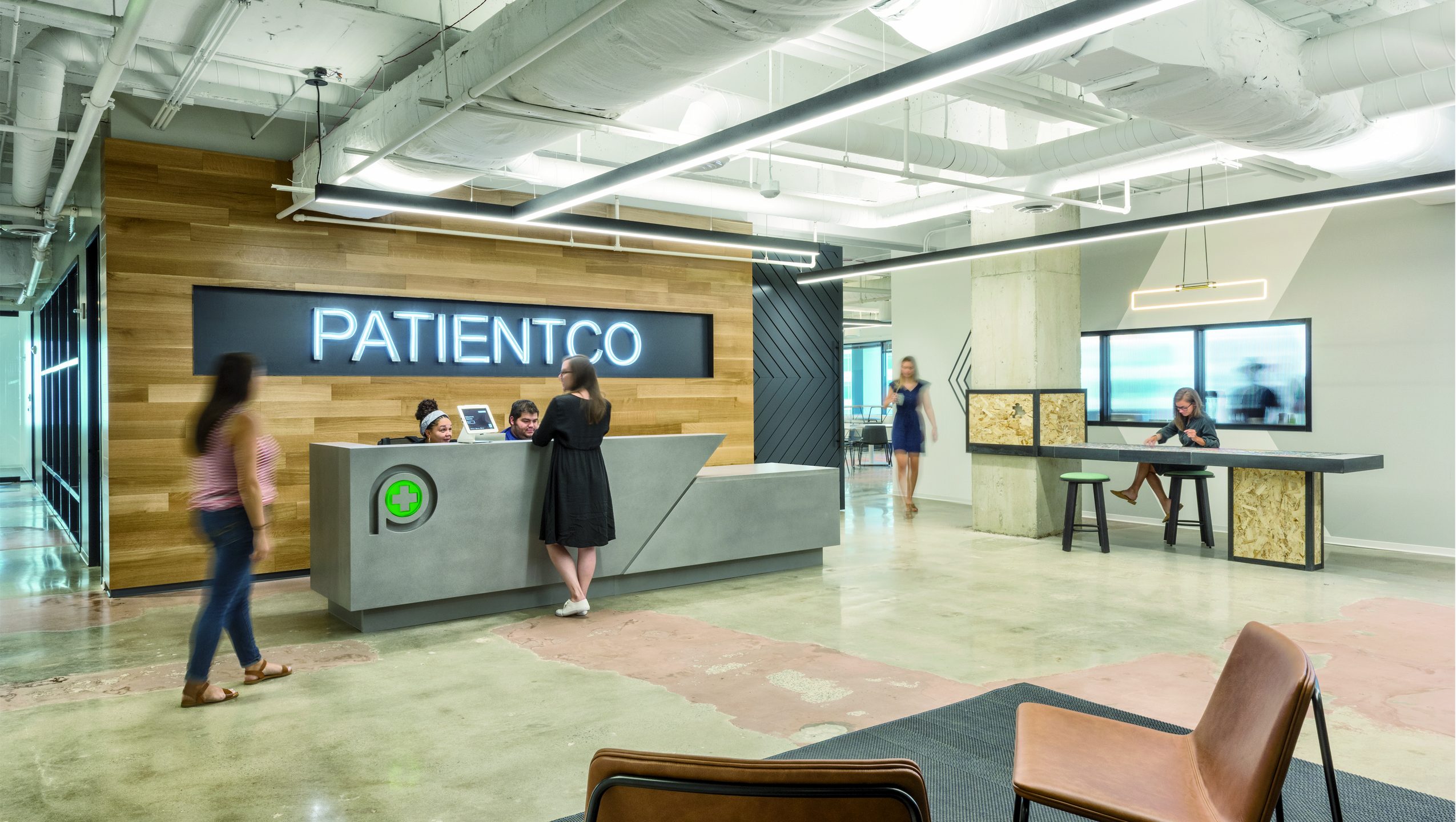 Patientco was brought to Cooper Carry through Transcend CRE for 26,000 square feet of full floor build out for their headquarters office at 725 Peachtree St. Patientco, a fintech firm specializing in healthcare payment technology, has a strong culture that they wanted to reflect in the space. The Cooper Carry team was challenged to create a budget-friendly design that incorporated graphics of their core values and mission.