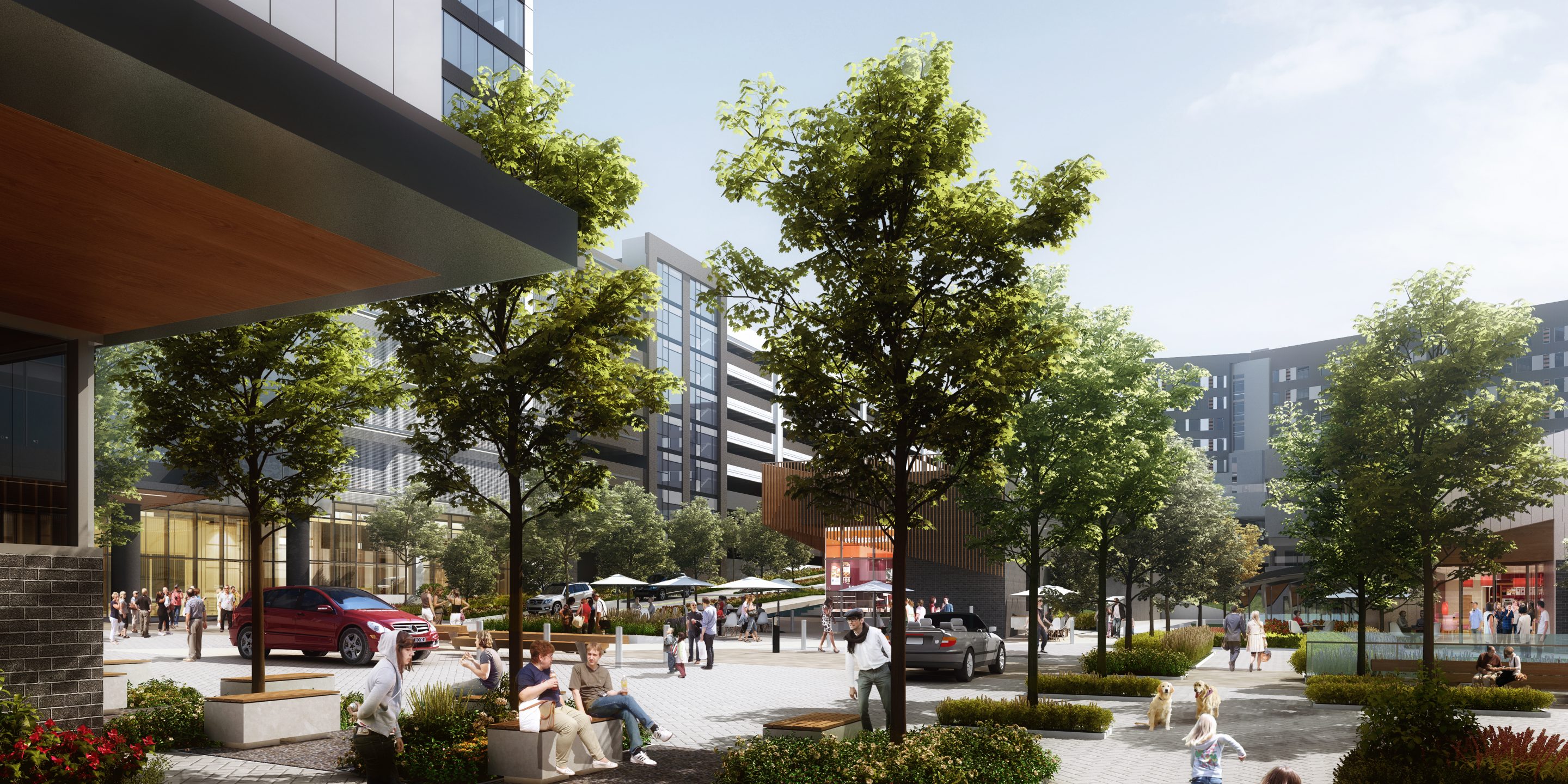 The newly renamed Altmore is a mixed-use development that focuses on densifying an existing 20-acre suburban office park, originally designed by Cooper Carry in the late 1970s. Situated just inside the Atlanta perimeter, there is direct adjacency and planned pedestrian access to the MARTA Medical Center station. Our goal was to free up developable land by introducing structured parking, instead of surface parking, in order to facilitate additional uses and establish a defined sense of place.