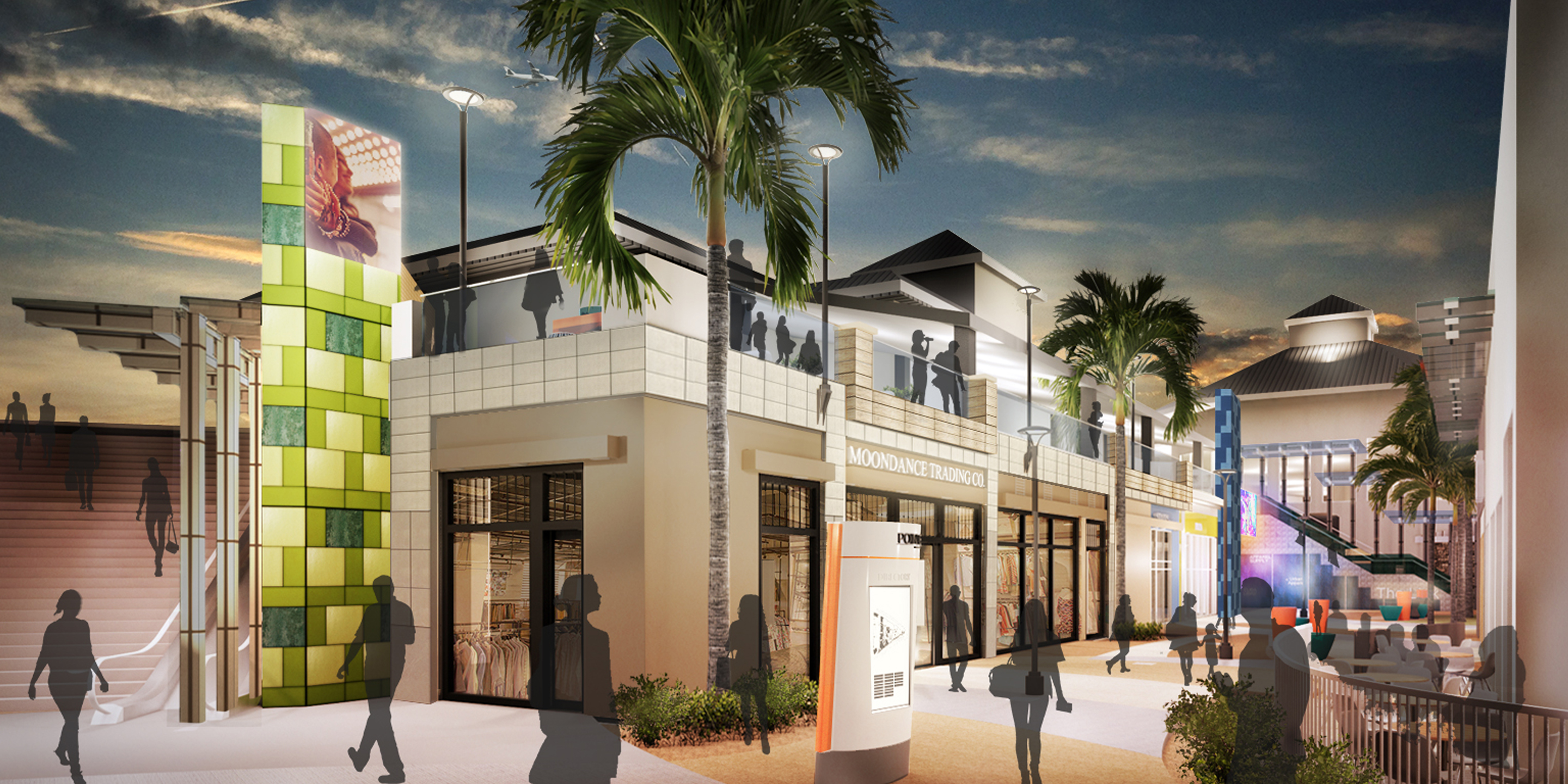 The property has great visibility fronted by International Drive to the west and Universal Drive to the east. A passageway or "Link" will be carved through a portion of the existing center, featuring lit ceilings, artistic floor patterns and retail tenant storefront on the sides to draw people through the center. Additionally, a Phase II gathering space will be created at the knuckle of this concourse near the parking deck to draw even more activity to the area.
